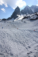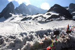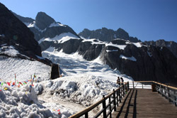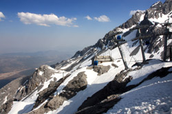 Jade Dragon Snow Mountain stretches 35km long and it is possible to ascend to the top via cable car. It is an expensive trip, as admissions are charged for entering the park, using the bus to the cable car terminus, and riding the cable car itself. Since the observation point is among the high altitudes, touts sell cannisters of oxygen just in case you get hypoxia upon arrival.