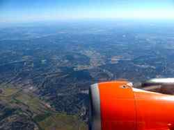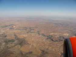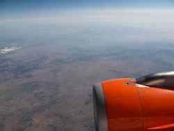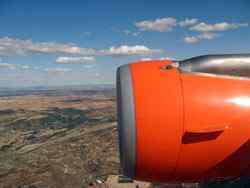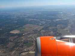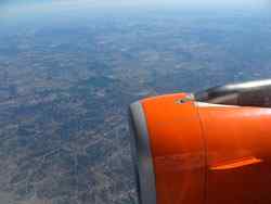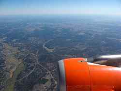After a quick taxi, we took off towards the northeast. Sitting on the right side by the window, I got to see the World Expo site as we climbed towards Spain.