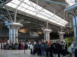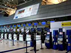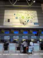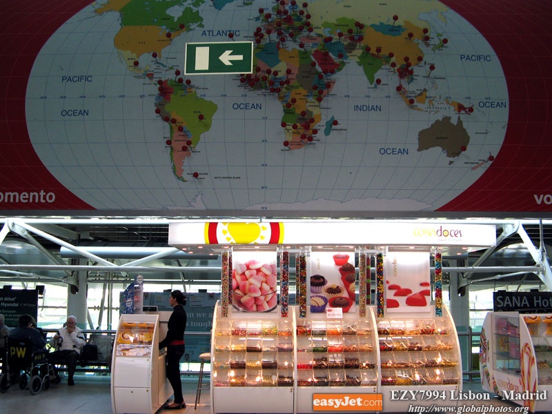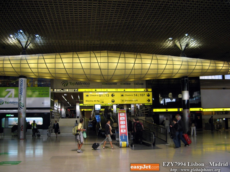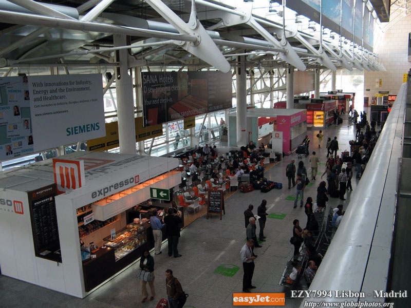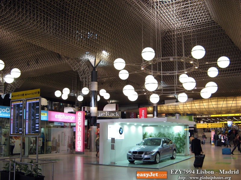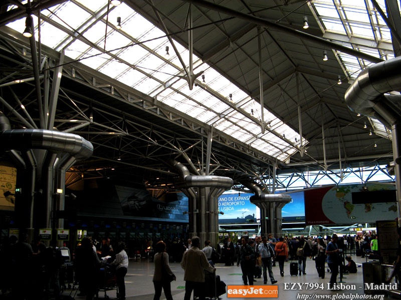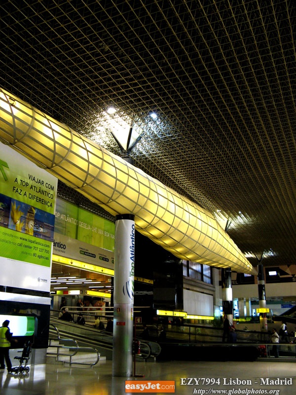 Afternoon FlightMy flight was supposed to leave in mid-afternoon, so I had some time to wander around Lisbon in the morning before leisurely making my way to the airport. There is a special airport bus that charged a fortune by local standards. I remember taking the local bus when I arrived a couple of days ago, but decided not to wait on the street with my luggage any more when the expensive one showed up.The airport wasn't too far from city centre, and soon we arrived at a very dark and dreary terminal. The ceilings were decorated with metallic installations, but they probably would look much better with a few skylights and more natural lighting. After passing a security gate upstairs, I emerged in a much newer and cheerful terminal building for check-in. |
