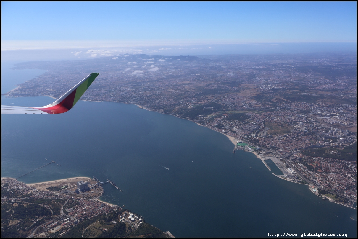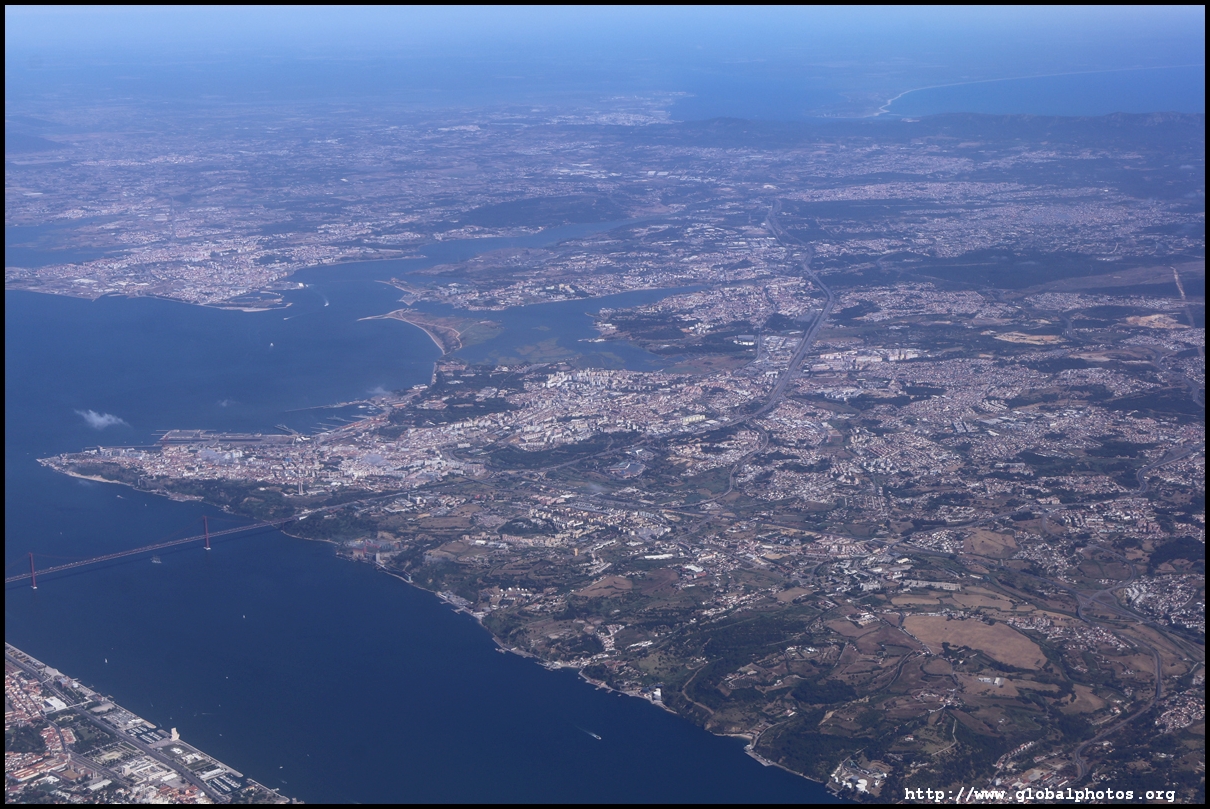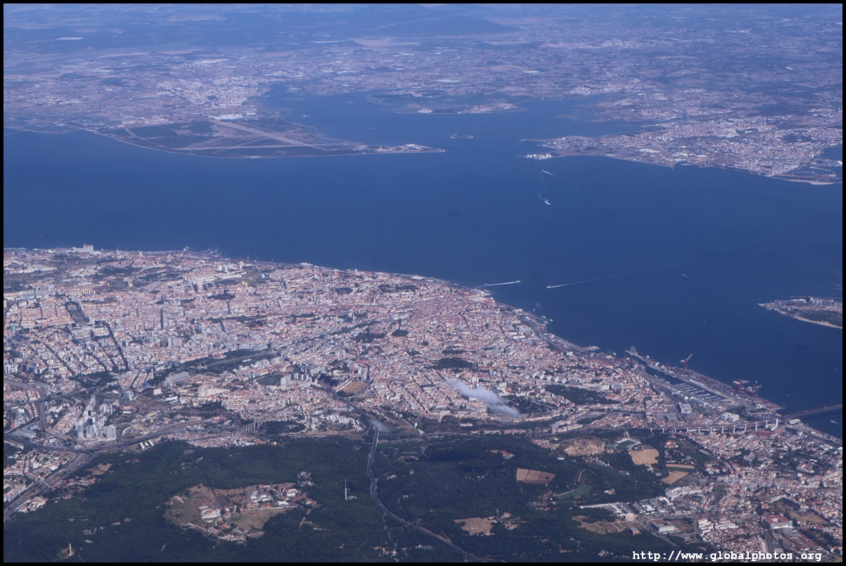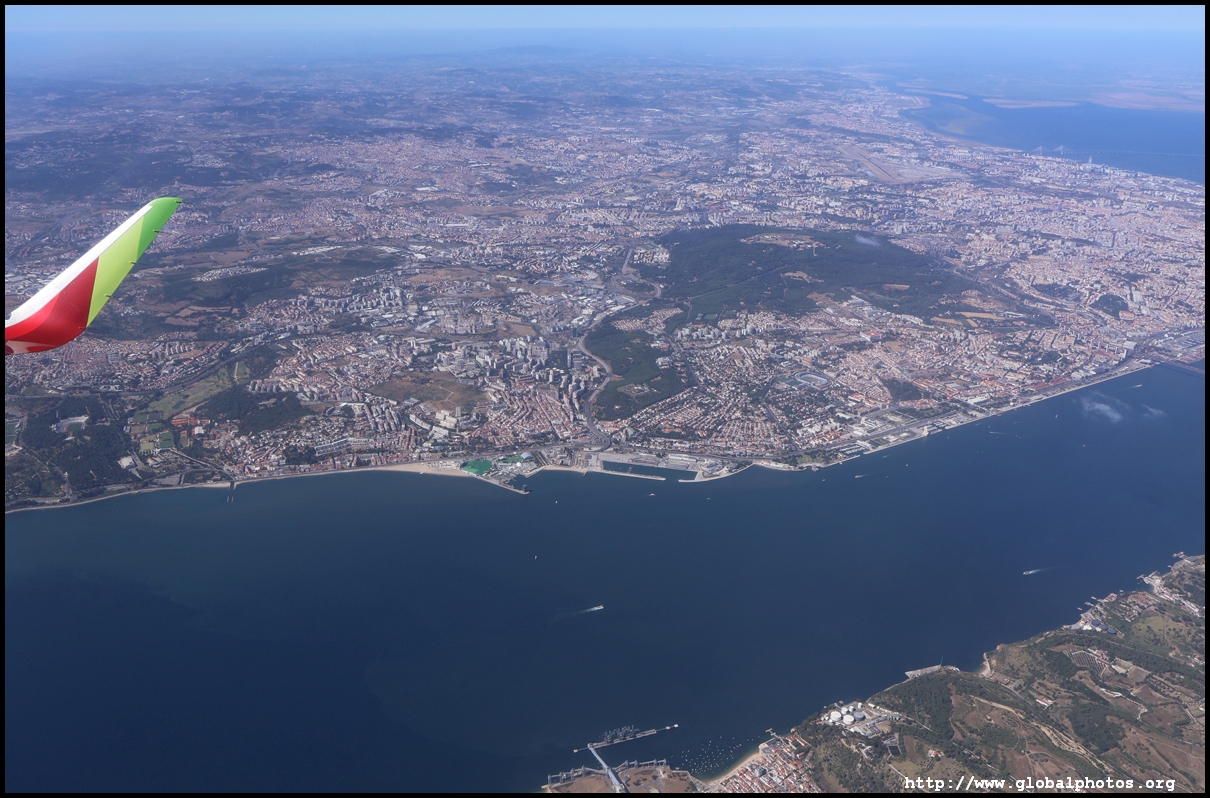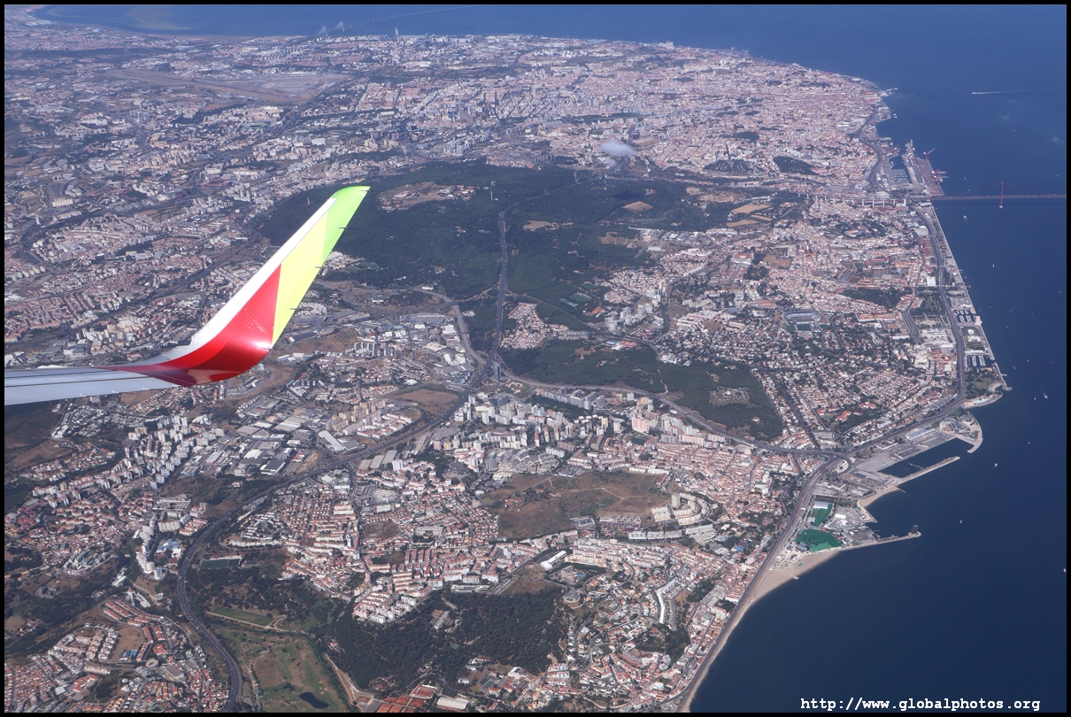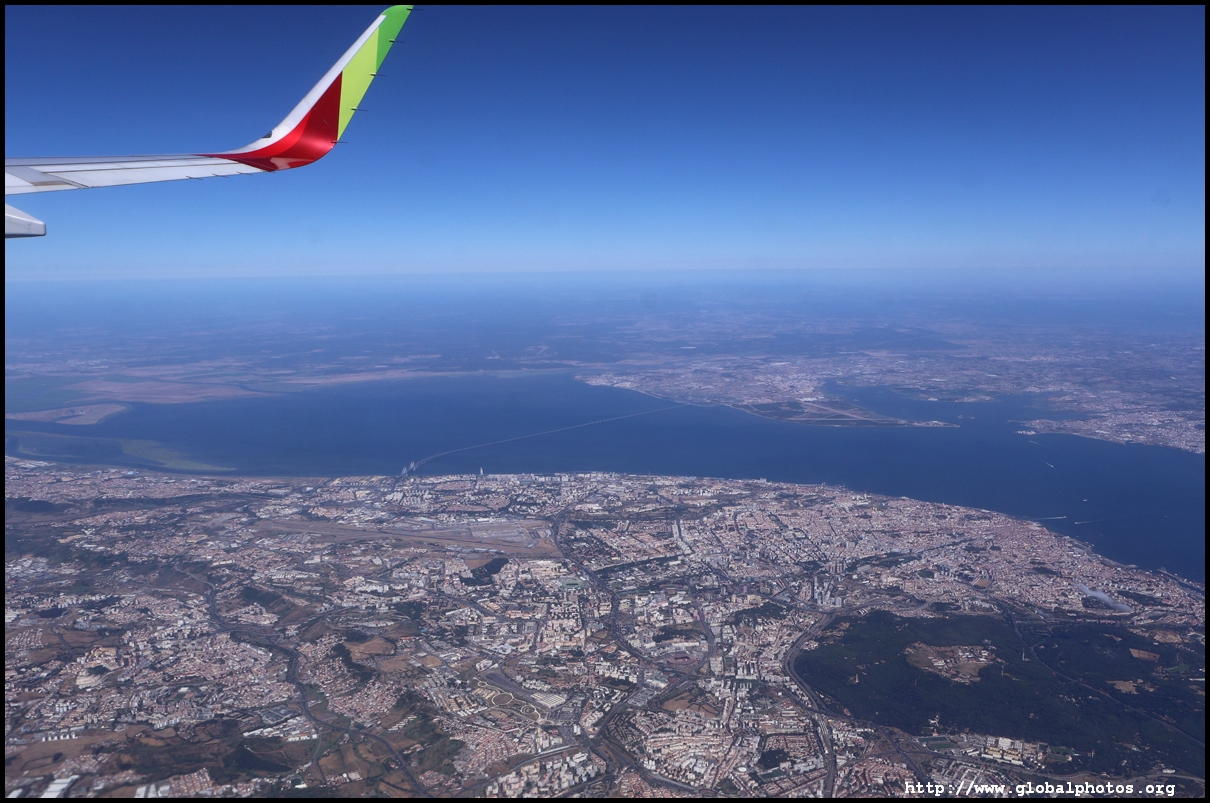 Taking off towards the south, the best views of Lisbon's historic district are actually on the left side of the plane, but since we were heading north to London, we looped around south of the Tagus and the whole city unfolded under my right window.