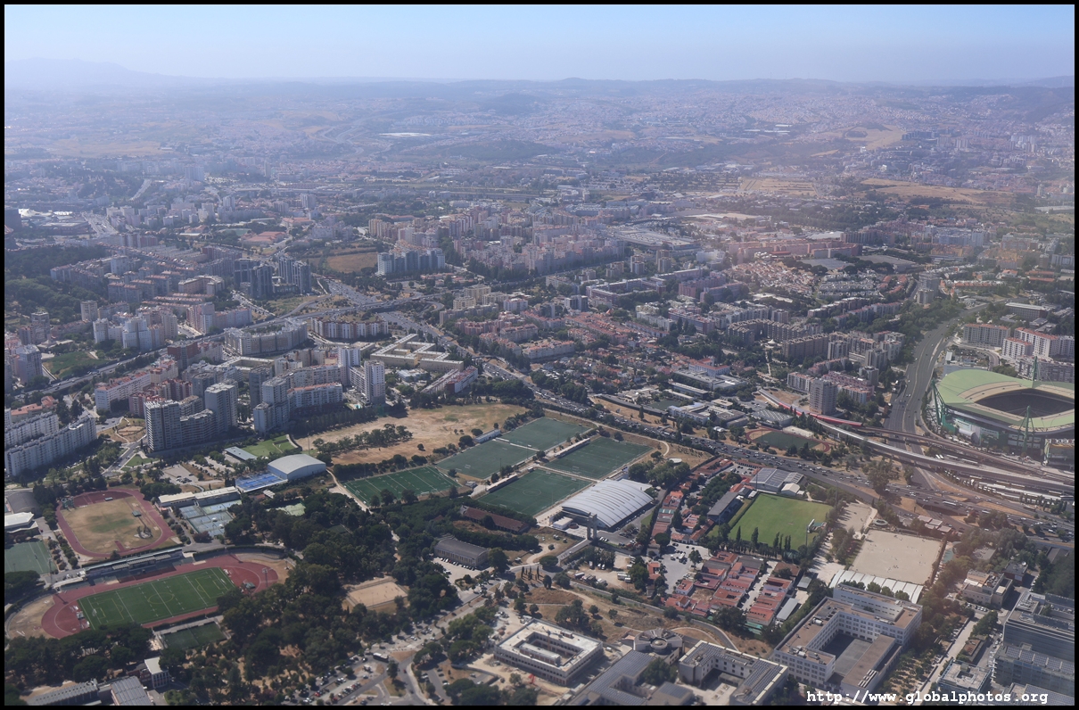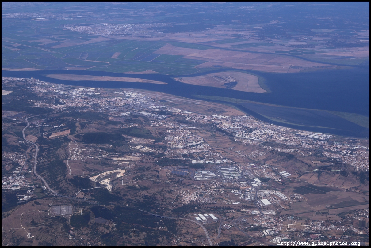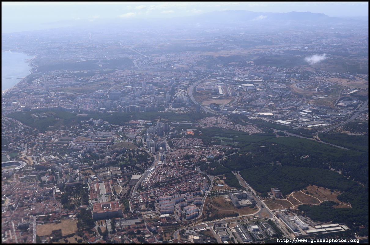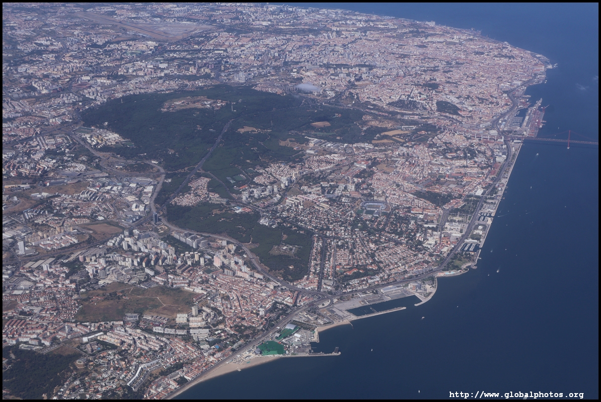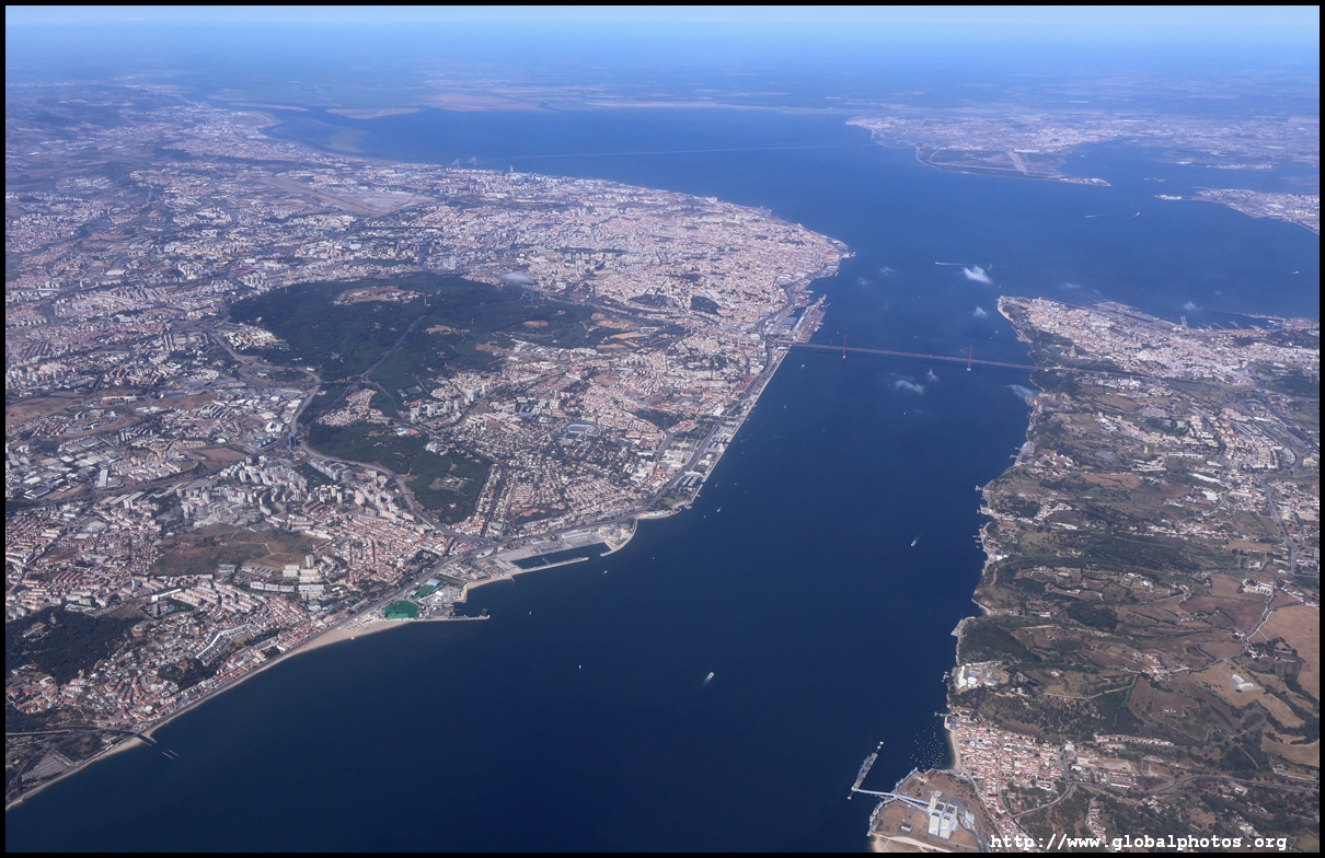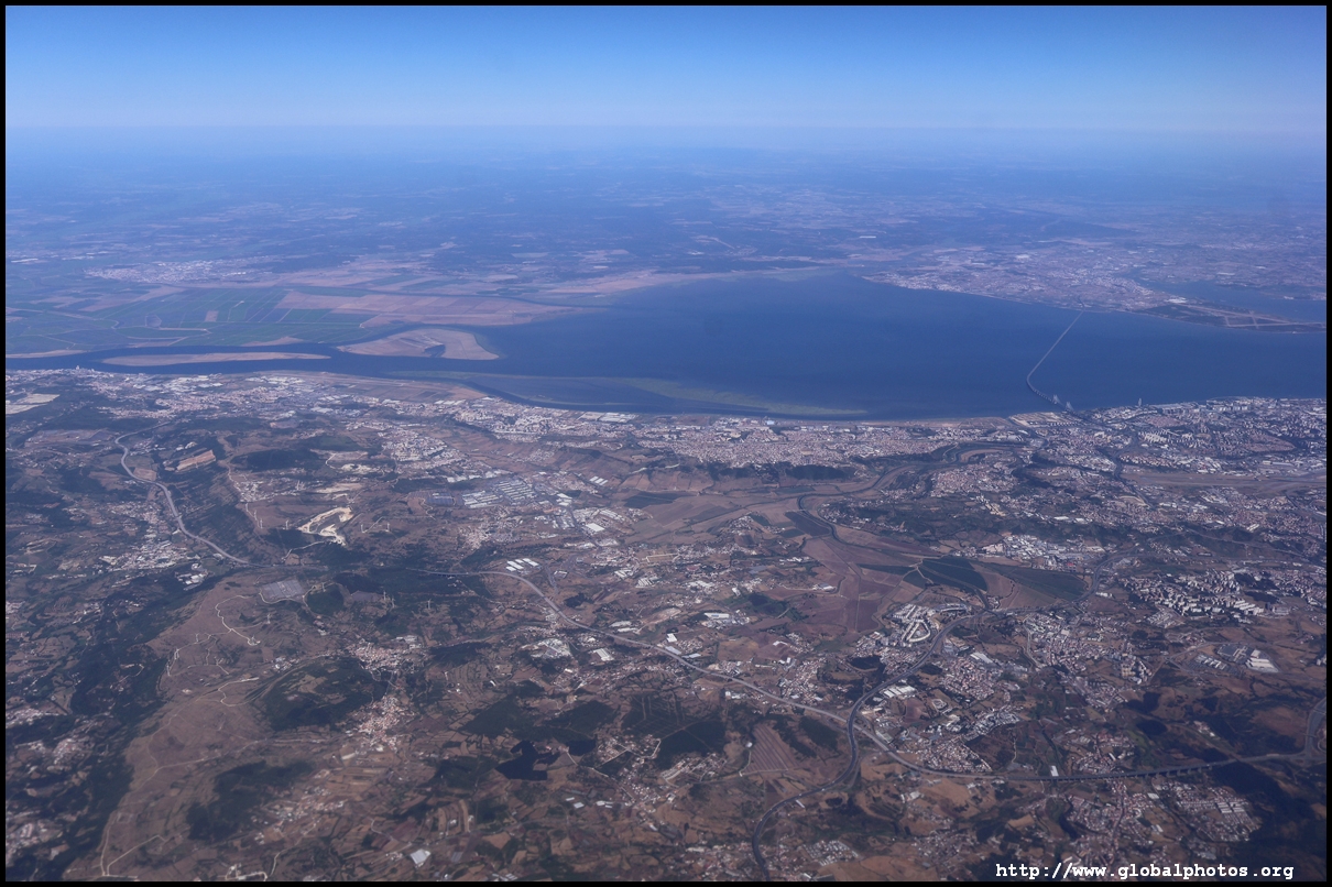 Taking off towards the south, the best views of Lisbon's historic district are actually on the left side of the plane, but since we were heading north to London, we looped around south of the Tagus and the whole city unfolded under my right window.