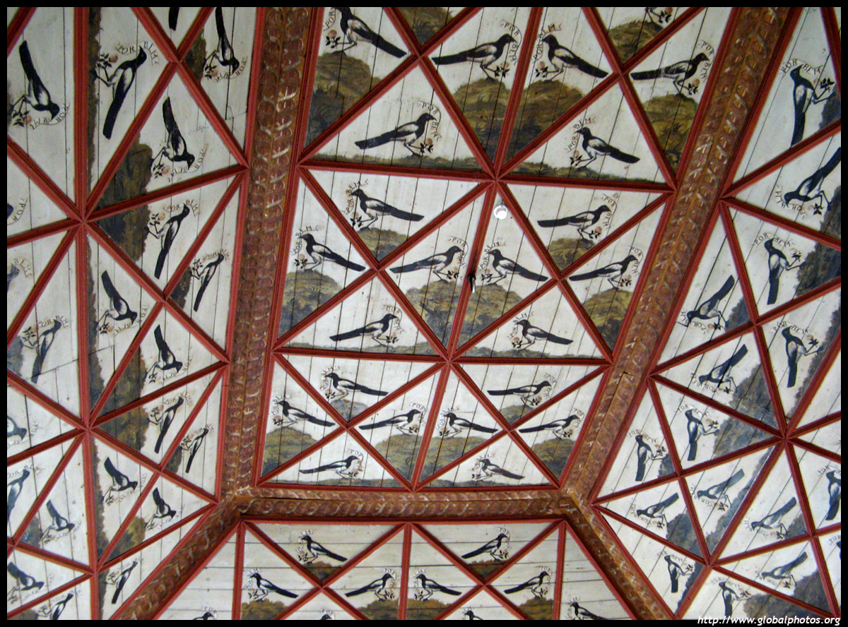 The magpie room was used for royal audiences. The 136 magpies on the ceiling are believed to be on the oldest painting in the palace.
