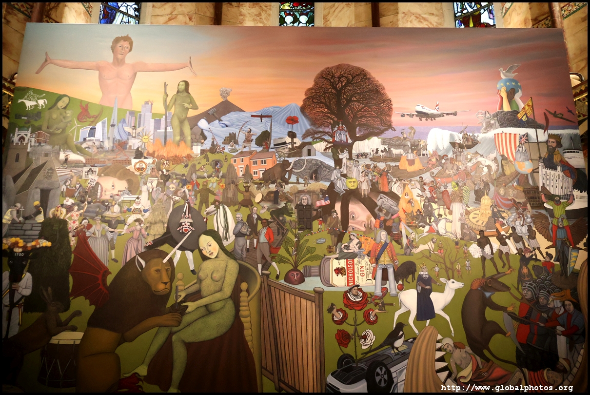 Fitzrovia Chapel hosts exhibitions inside its beautiful church from time to time. During November 2025, British artist Ben Edge showcases his works on British folklore and mythology. Dubbed "Folk Renaissance", it reflects ancestral roots, their connection with nature, and looks ahead with a vision to think about a shared cultural identity from past, present, to future.