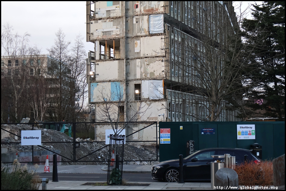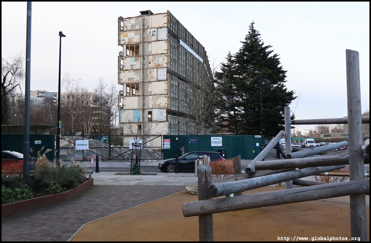 Just a short distance from Canary Wharf's skyscraper offices is Blackwall Reach, a regeneration project with over 1500 new homes planned, about half of which are expected to be deemed affordable. This was once Robin Hood Gardens, a Brutalist council estate designed by Alison and Peter Smithson that was completed in 1972.Being an important relic of that architecture style and the husband-and-wife architect duo's first and only creation of this type, the V&A acquired a 3-storey chunk of it measuring 8.8m high, 5.5m wide, and 8m deep. The 252 flat estate was viewed as a concrete monstrosity with 'streets in the sky'. However, it had plenty of natural lighting and a generous amount of public space that shielded residents from the noisy city. Jan 2025 - the final tower is being demolished although redevelopment continues at other parts of the site
