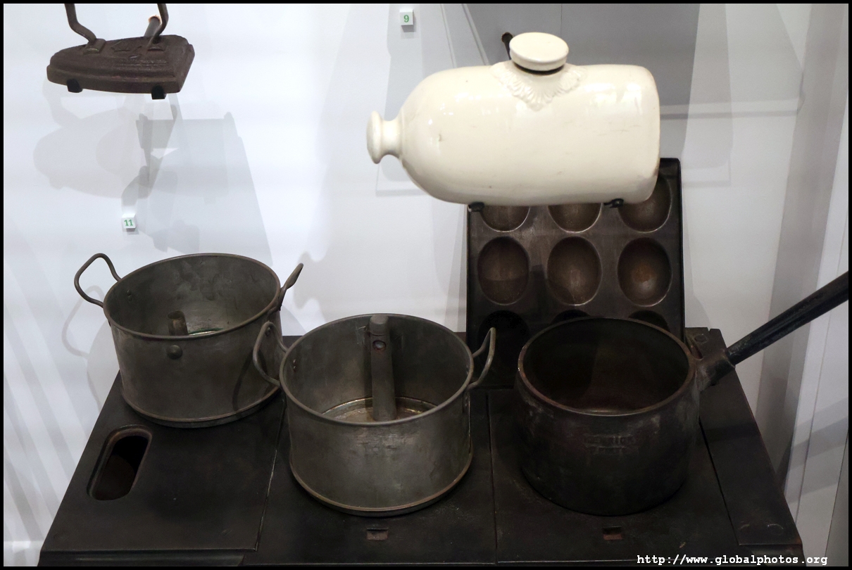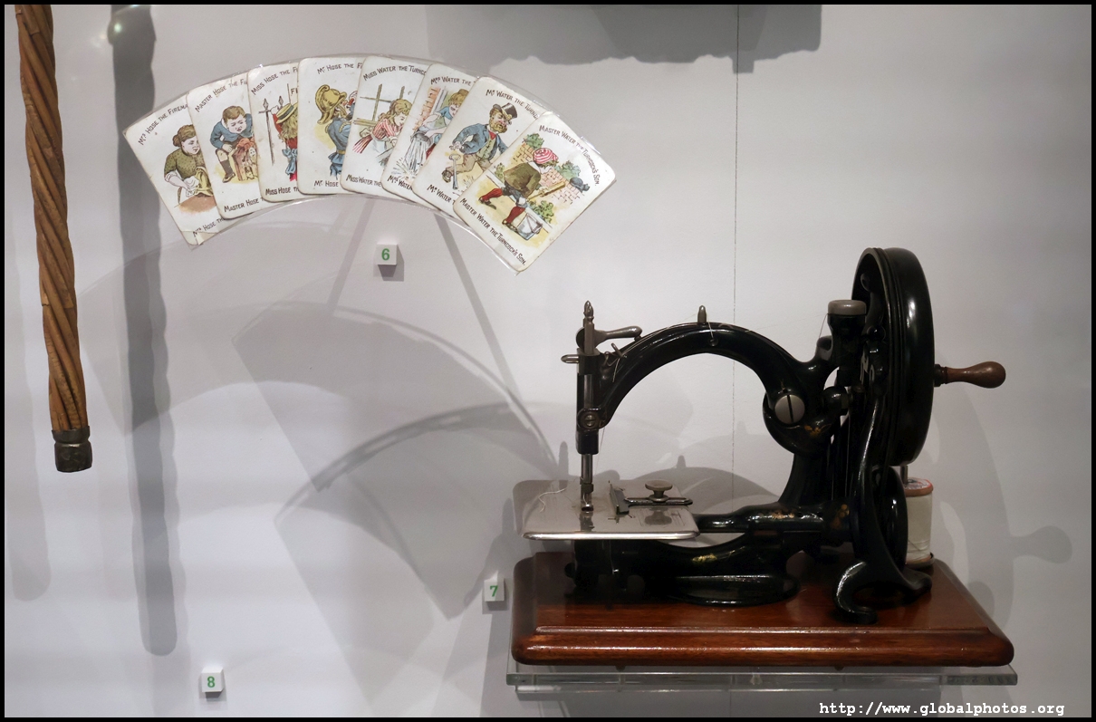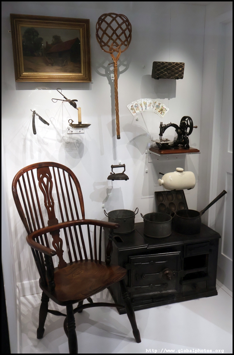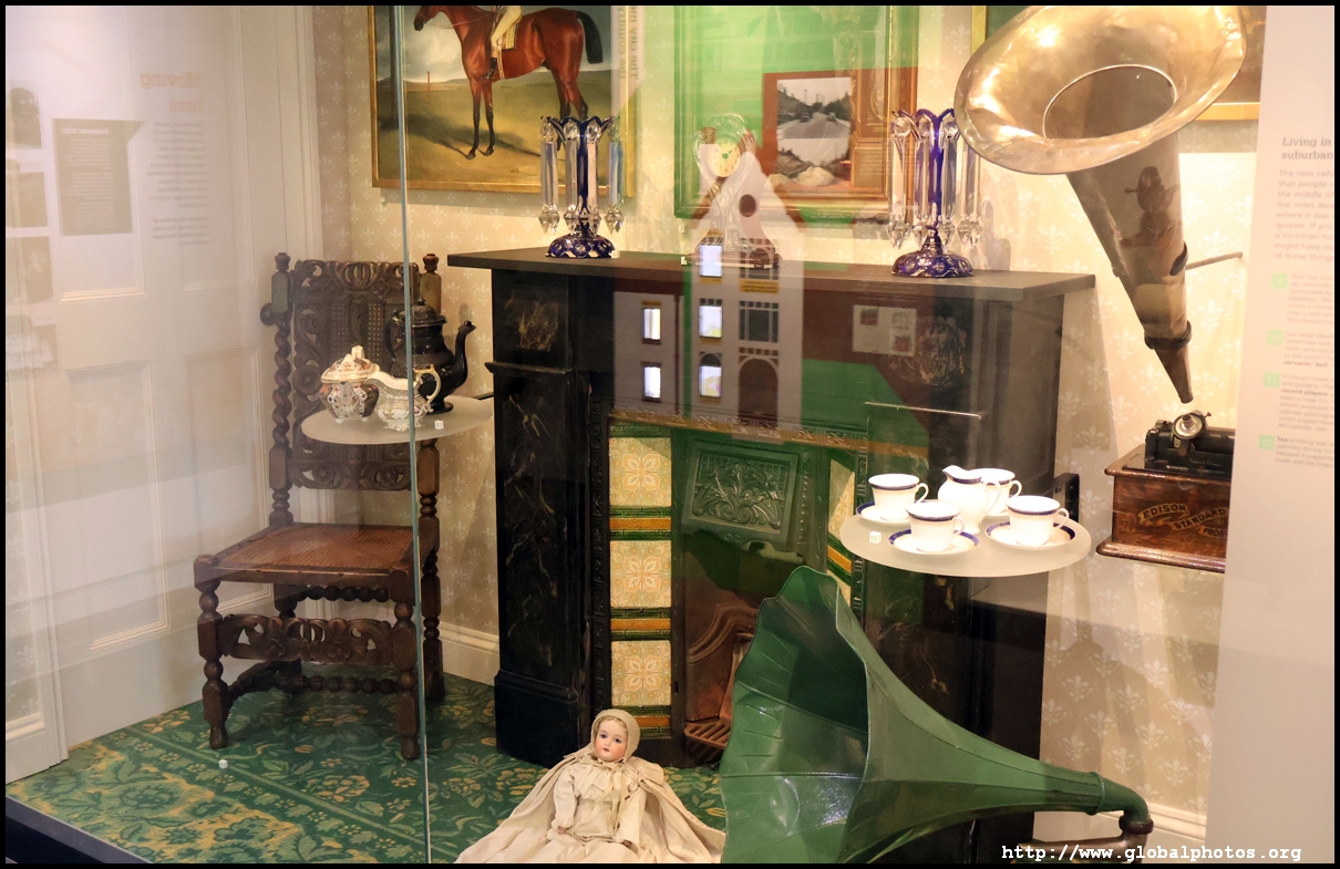 Let's take a home at a Victorian home's interior. At the time, many families had paintings and souvenirs of the monarch. Before vacuum cleaners were invented, people used carpet beaters instead, candles and gas lamps lit up the railway cottages, and clothes were fixed using sewing machines. With no central heating, people kept warm with hot water bottles.