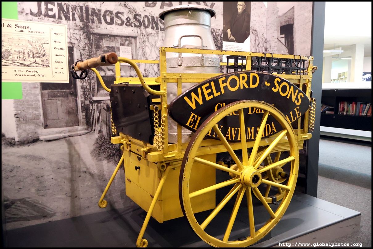 George Barham's Express Dairies was a quality milk provider, transporting product from Brent to London. In the 1860s, most of London's cows died from disease and there were concerns the milk was dirty or watered down. His company used milk prams from the late 1800s to supply product locally, and on express trains to the city.