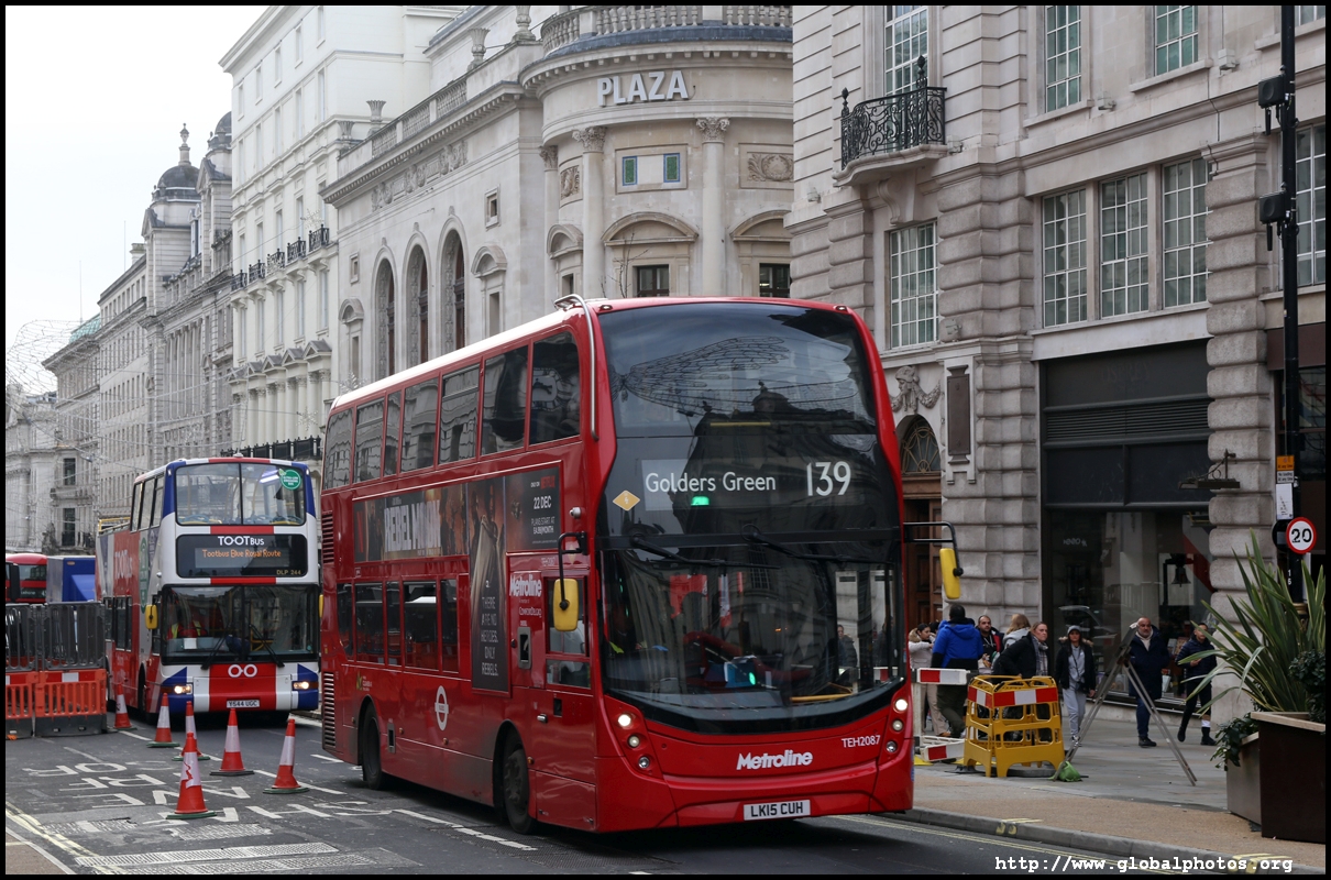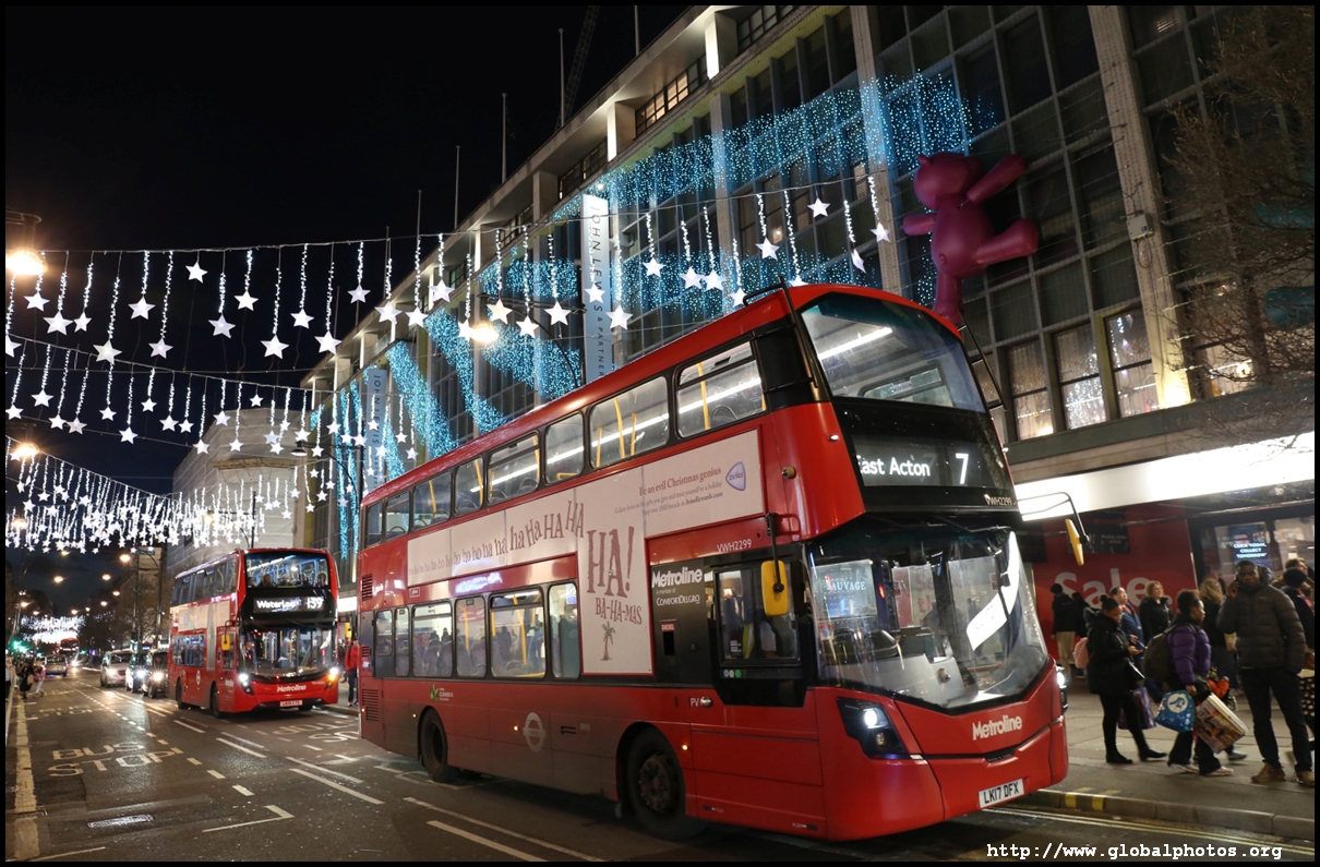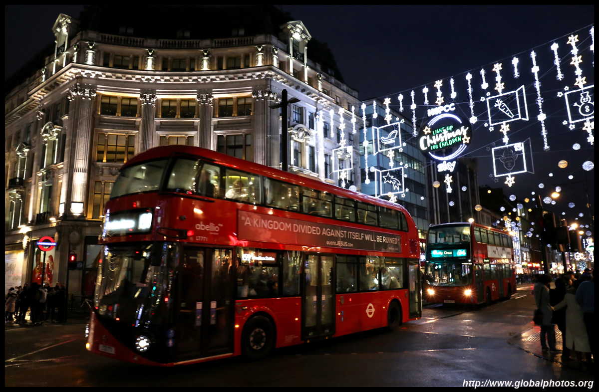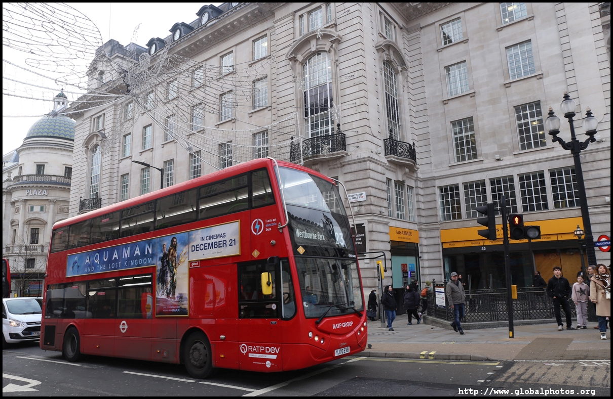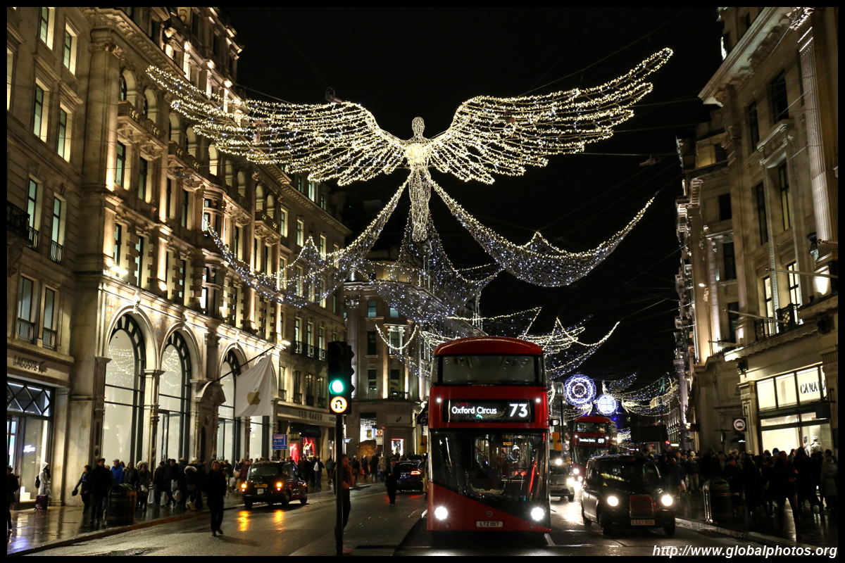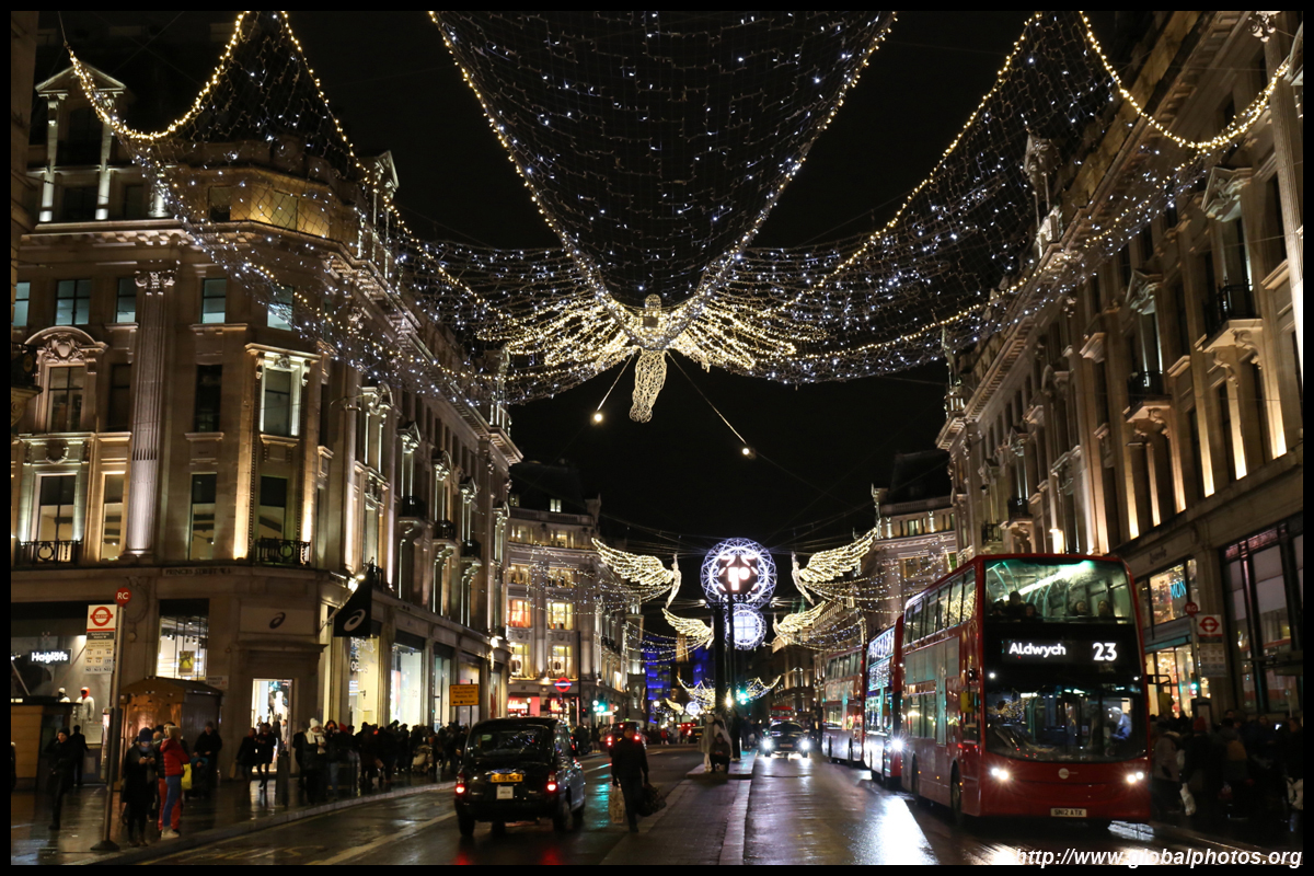 Regent Street is a great place to spot buses. Many parts have a small median to stand and photograph the many buses coming into their stops amidst a setting of historic buildings and Christmas lights.