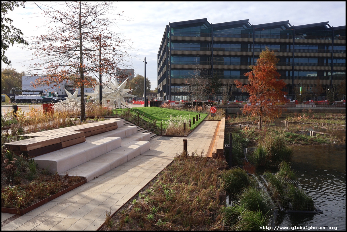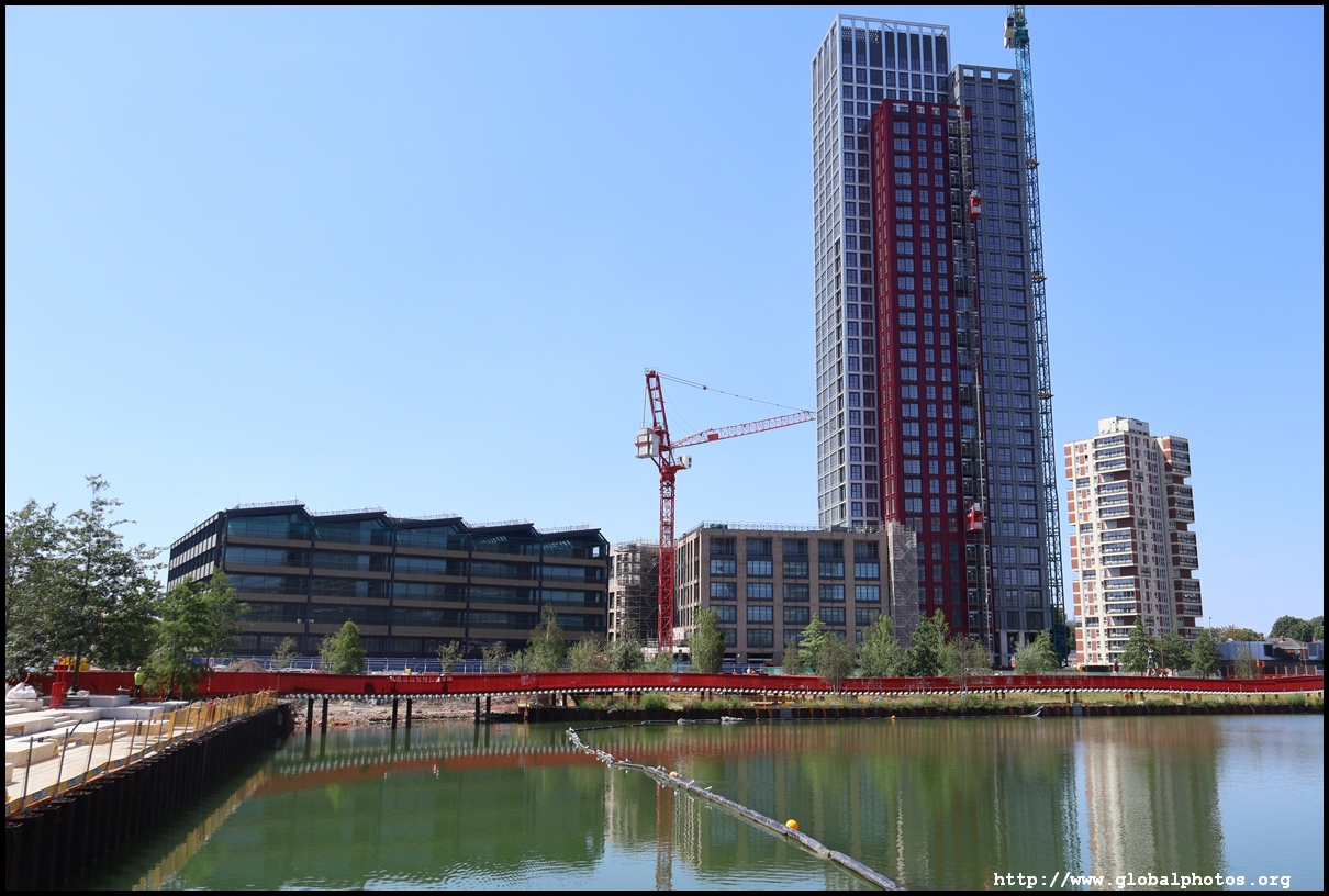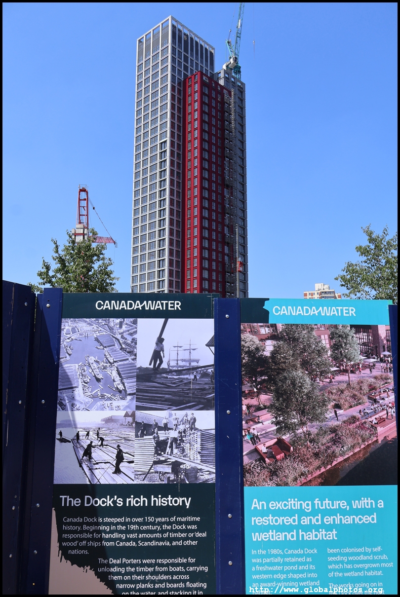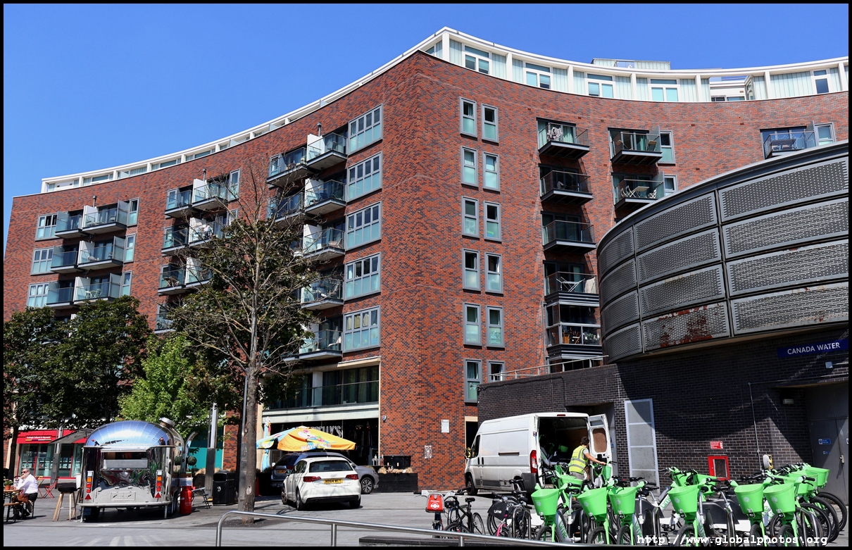 The area around Canada Water Tube station is undergoing a massive redevelopment program covering 53 acres. British Land received planning permission in 2019 and partnered with AustralianSuper in 2022 to accelerate the redevelopment. The first phase is expected to finish in late 2024.Canada Water is at the junction of the Overground and Jubilee Line just a short ride from Canary Wharf. The project will create a new town centre, the first in London in over 50 years. It will include 3000 new homes and about 2 million square feet of office space, along with 16 new streets as the road grid will change. The first major tower is named "The Founding", with 186 residential units and an expected move-in by early 2025. Rising 35 storeys, prices are targeted for the wealthy middle class with 2 bedrooms costing over 900,000 pounds. On one side, you have a full view of the City's skyline, while on the other, you've got Canary Wharf's skyline at your footsteps. The rest of the redevelopment plan lies south and southeast of this skyscraper, partially on a shopping mall between Canada Water and Surrey Quays stations that will close. The area to the immediate east of Canada Water has already been redeveloped into a new residential community. During the 19th century, increased imports with timber from the Baltics and food from Canada resulted in the docks being expanded. They were named after where their cargoes came from.