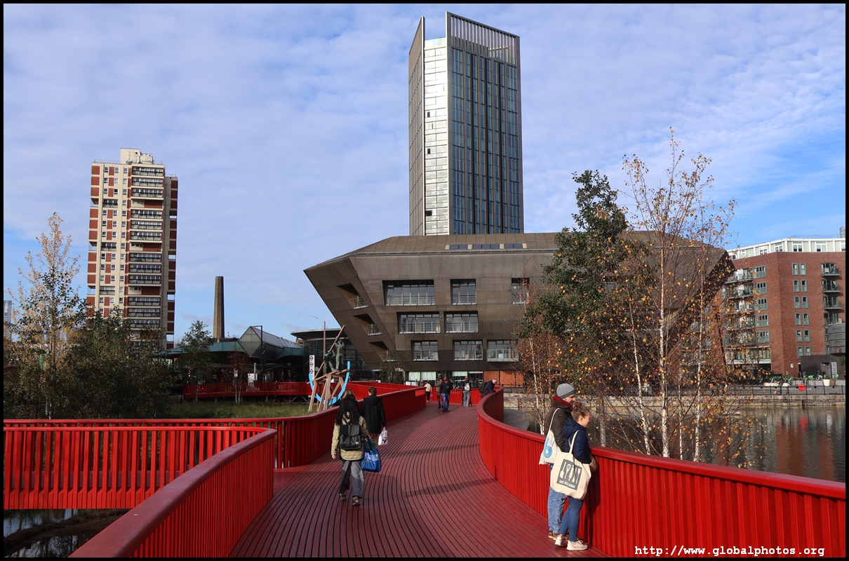 A new 170m-long red boardwalk opened in November 2024 that spans the former dock where cargo ships once arrived from the other side of the Atlantic.