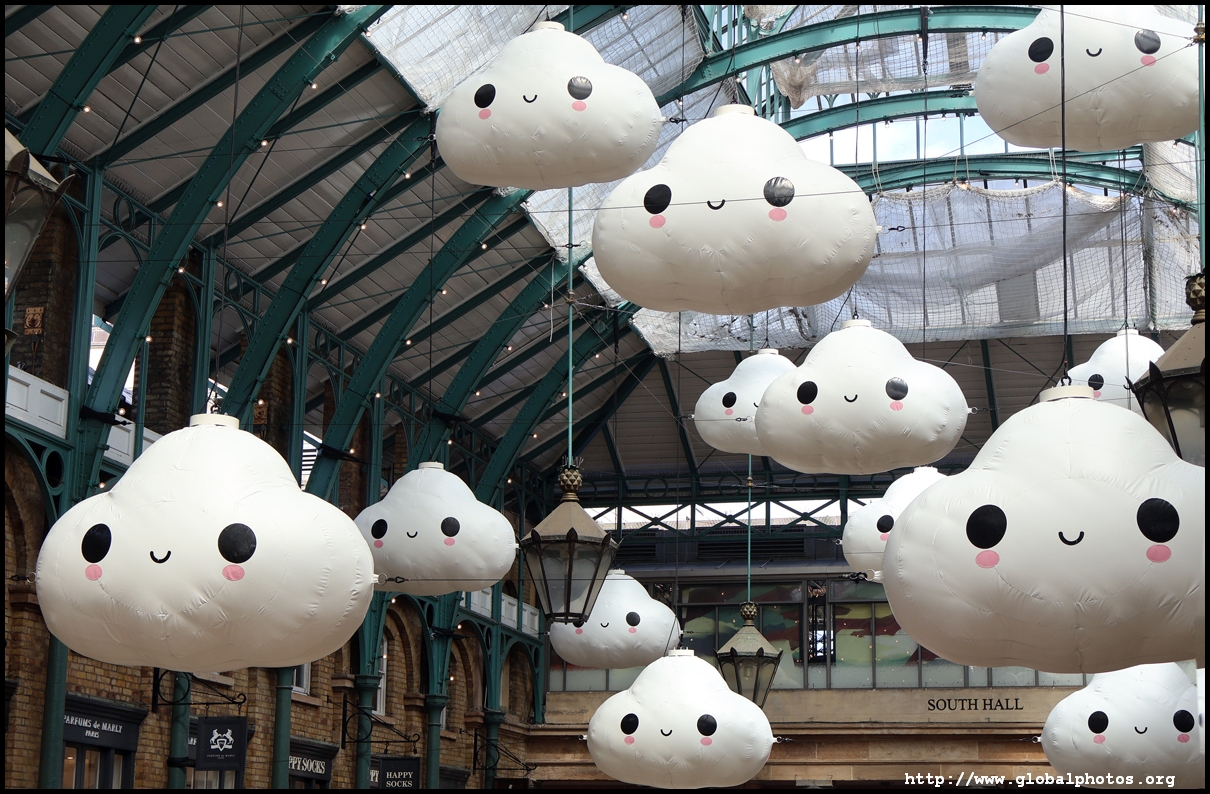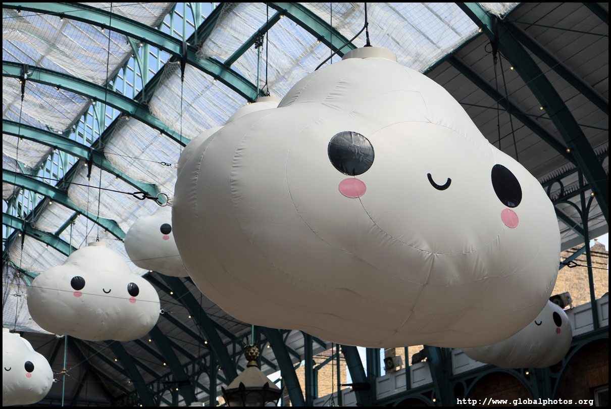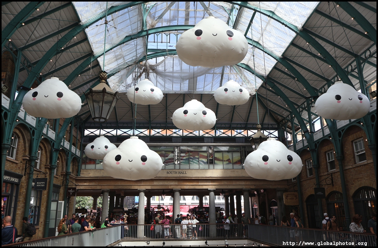 Hanging above the market building over summer 2024 is 'Little Cloud World', an art installation by Los Angeles-based FriendsWithYou with 40 floating clouds to inspire people to spread kindness and compassion.