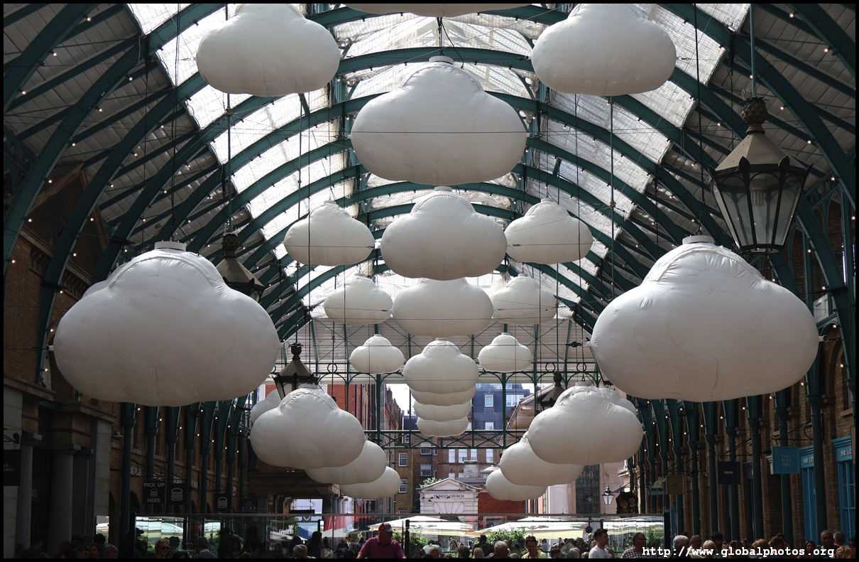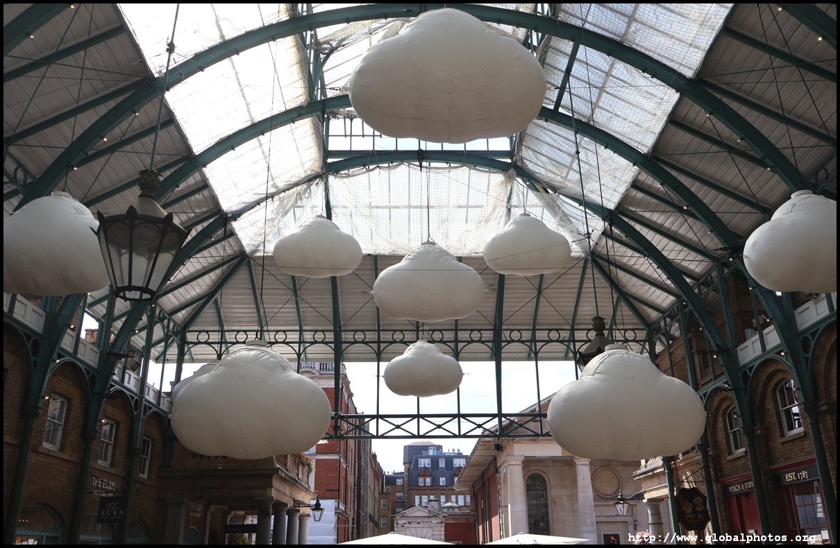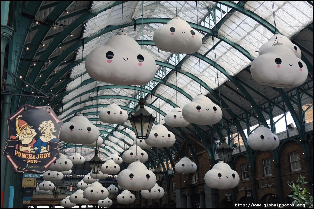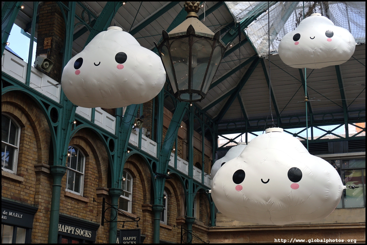 Hanging above the market building over summer 2024 is 'Little Cloud World', an art installation by Los Angeles-based FriendsWithYou with 40 floating clouds to inspire people to spread kindness and compassion.