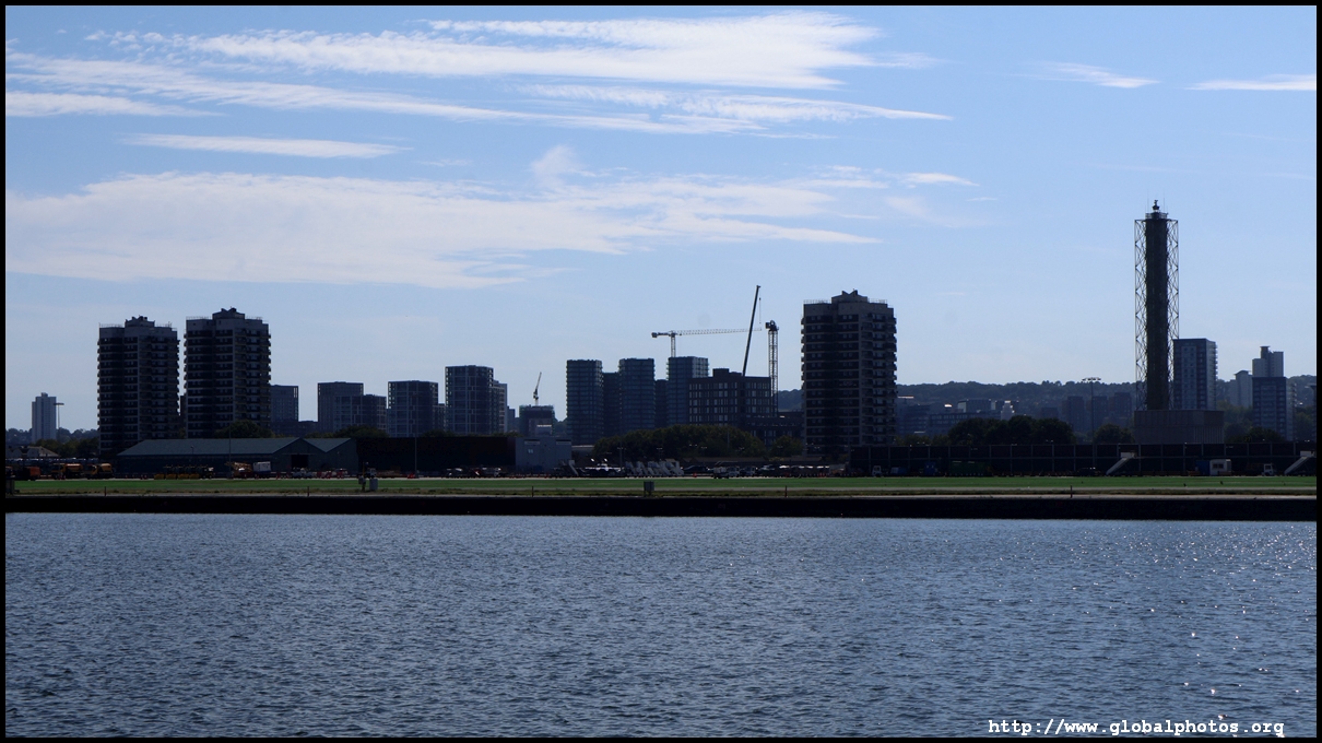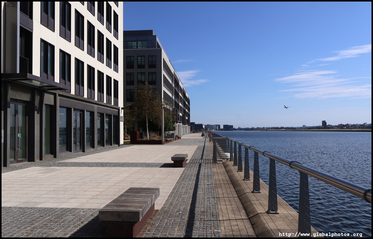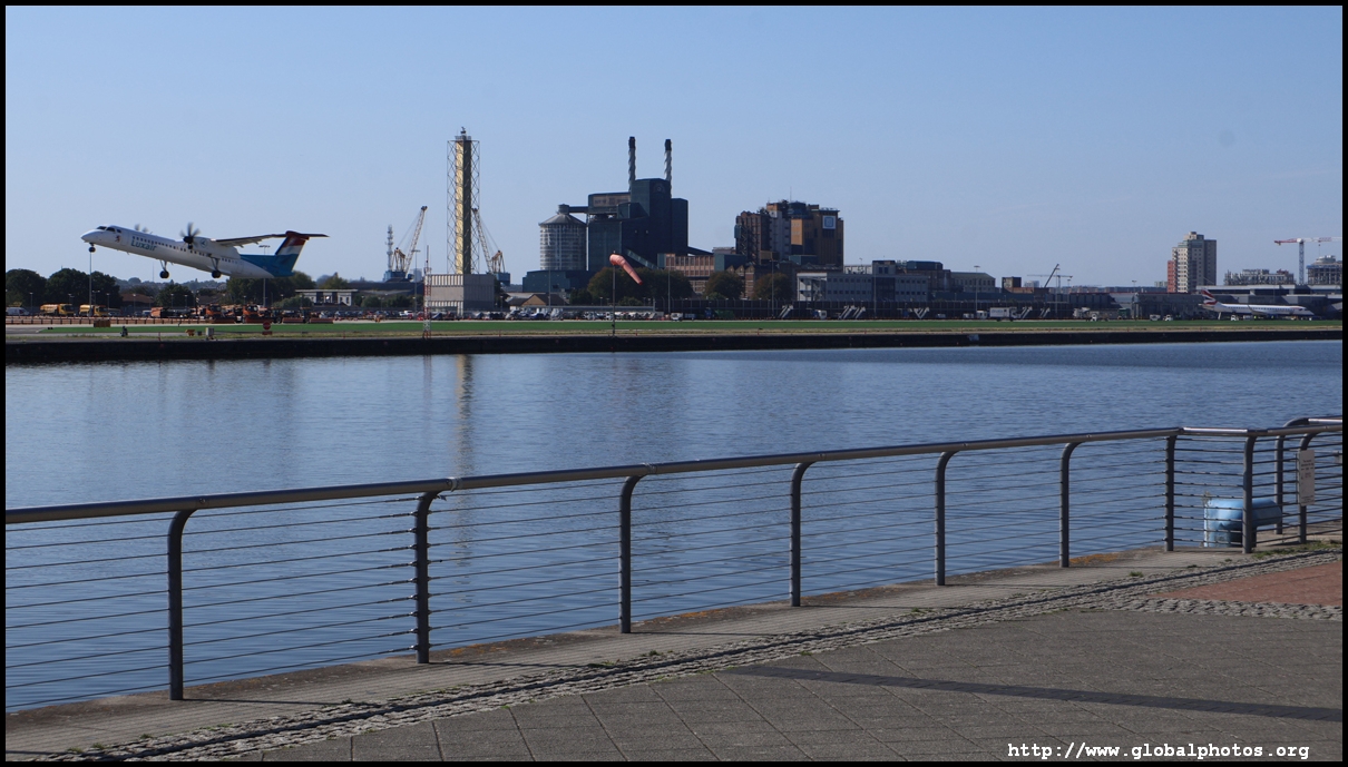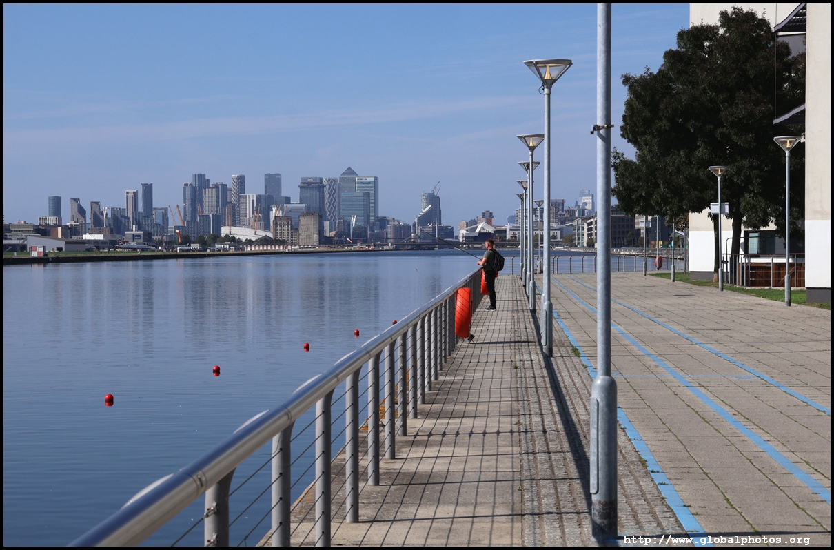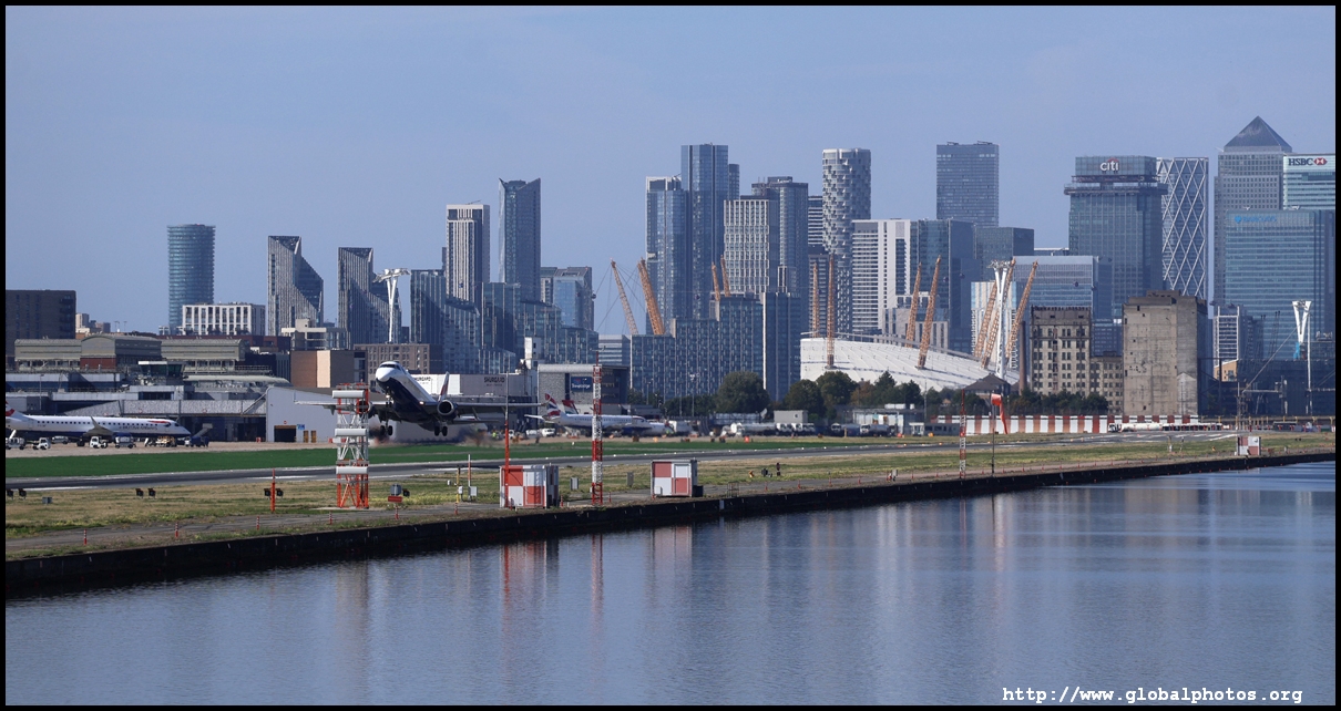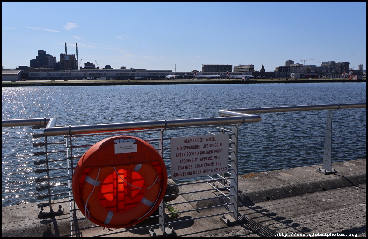 There is a long stretch of waterfront promenade with views of airplanes and Canary Wharf's skyline without the crowds.