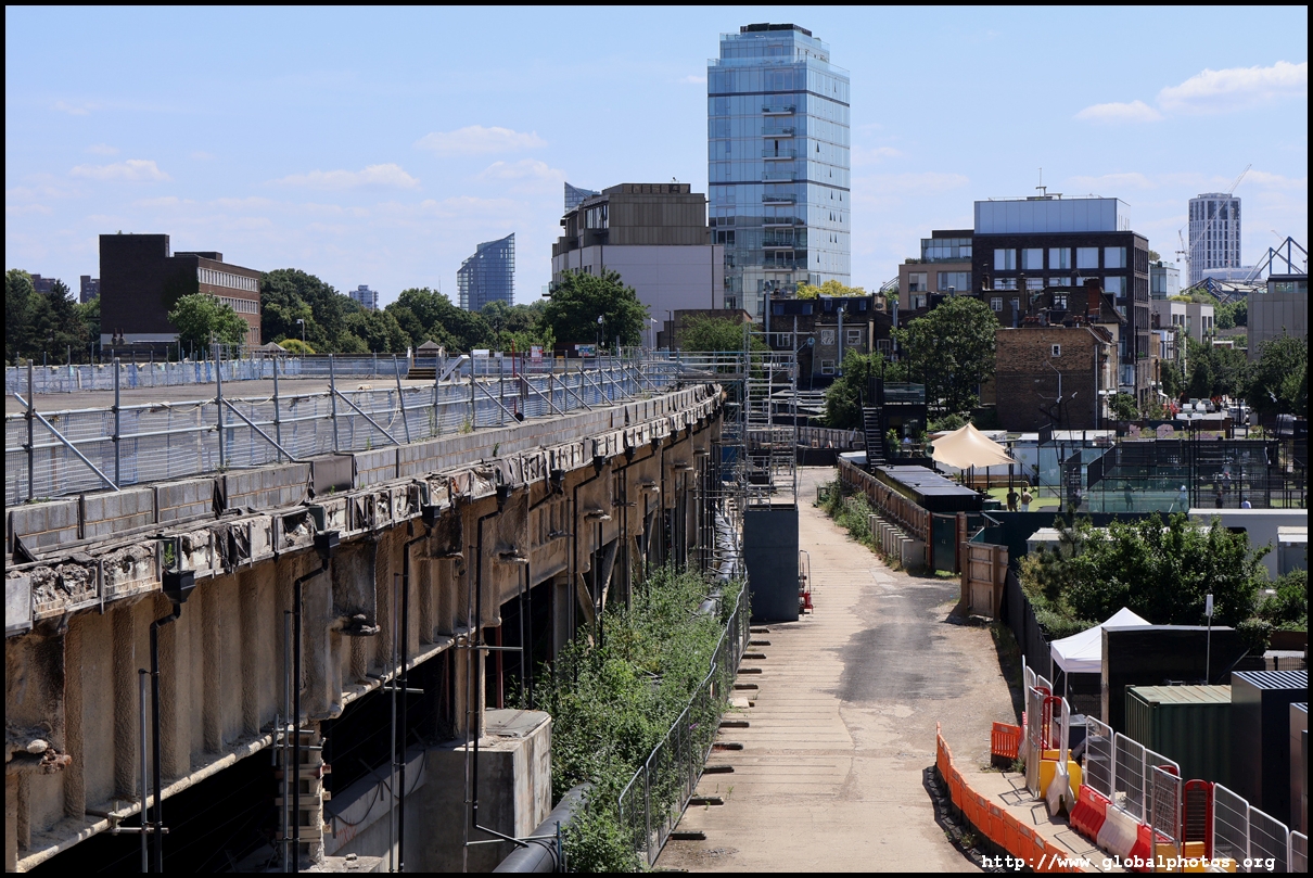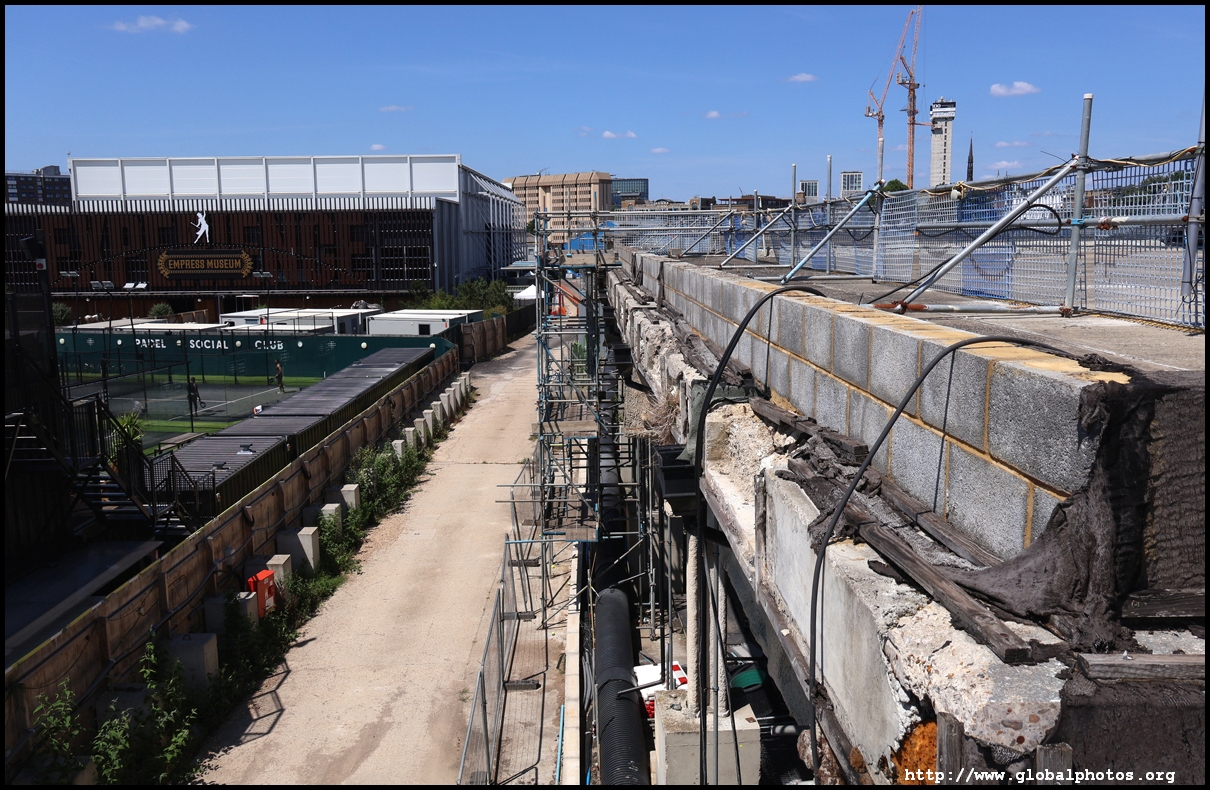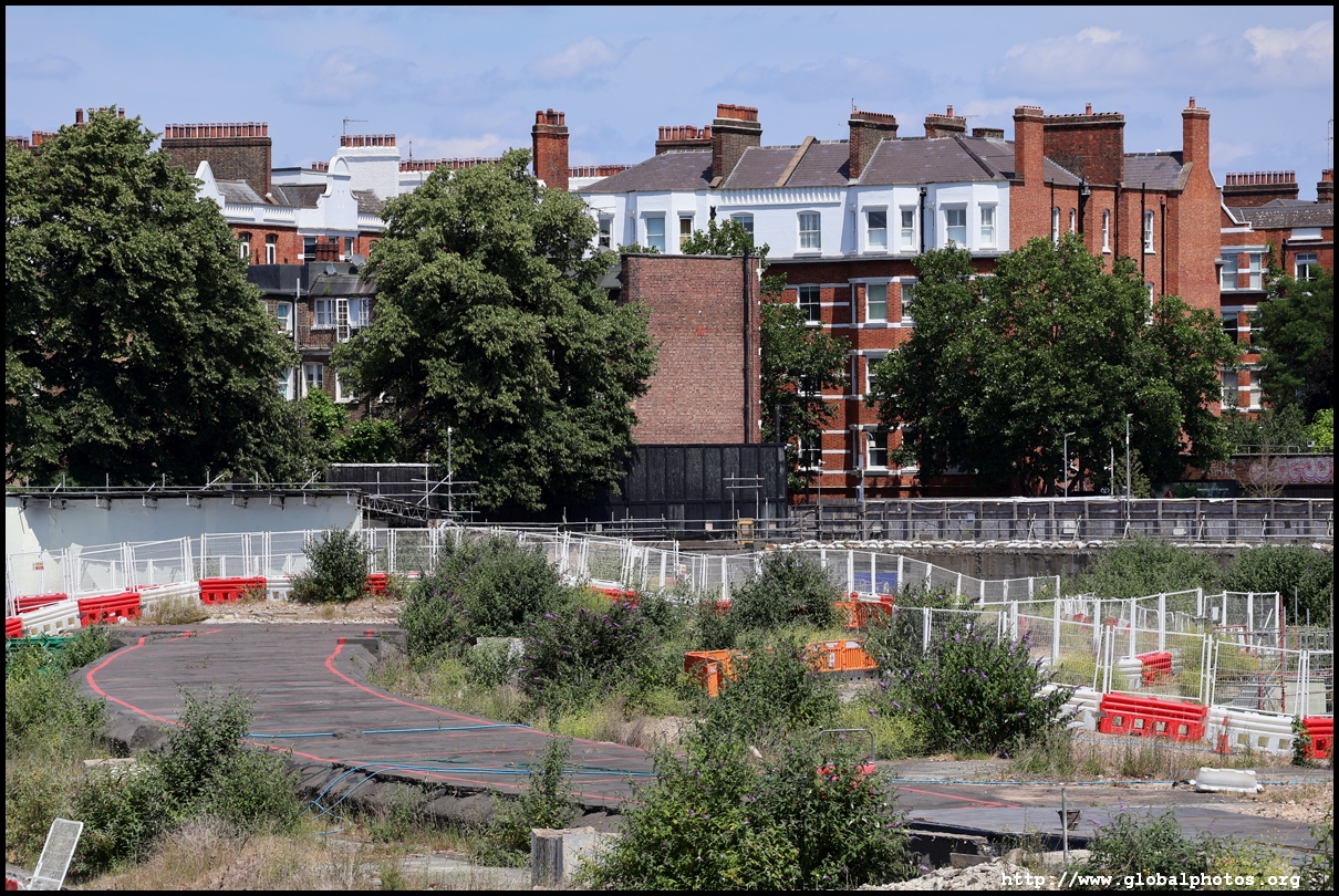 The Earls Court area was a place of entertainment during Victorian times, hosting fairs and exhibitions. This piece of land was carved out by the railways that arrived in the 1860s, isolating the area. The answer was to turn it into an entertainment venue, and it was immensely successful - even Queen Victoria visited. An exhibition centre opened in 1937 but has since been demolished over a decade ago. The triangular site has sat empty awaiting redevelopment, although a 2015 plan fell apart due to opposition that existing social housing would be demolished.The site changed hands in 2019 and the current plan is to build about 4000 new homes on the 44 acre site under a joint venture between Transport for London and a Dutch pension company, with about 35% of them deemed affordable. Its footprint will eventually link up with 3 Tube stations - West Kensington, Earl's Court, and West Brompton with cultural facilities and offices that will complement the residences. The tallest tower is expected to reach 42 stories. As part of its community engagement while the masterplan is being reviewed by council, the development company hosts occasional tours to outline their plan as well as to visit the site. Empress Place is expected to be transformed into a grand boulevard. It was previously derelict and part of the initial transformation is to turn the rowhouses on both sides of the street into studios and offices, while a small section of the development site houses sports facilities and a community space. The tour starts at the project office where staff go through the site's history and outline their development vision. About half of my tour's participants were locals, who seem to be concerned about the affordable aspects of this masterplan, as well as some sour taste from prior redevelopments nearby that shunned the social housing aspects in favour of building and selling expensive market-rate units. The tour's highlight is to access 'the table', a raised platform above the train tracks that is fenced off and cannot be accessed unless on tour. It will eventually form a large park. From this vantage point, you can appreciate the vastness of the site as well its current emptiness. Most of the plan's objections so far have come from the Kensington and Chelsea side, while supporters outnumber objections on the Hammersmith and Fulham side, showcasing the income divide between the two sides. A community centre just off the site has a large scale model of the plan and a lot more information on the design and various phases. While the plan was submitted to council in 2024 and will be subject to a long period of scrutiny, they expect the first residents can move in around 2030.