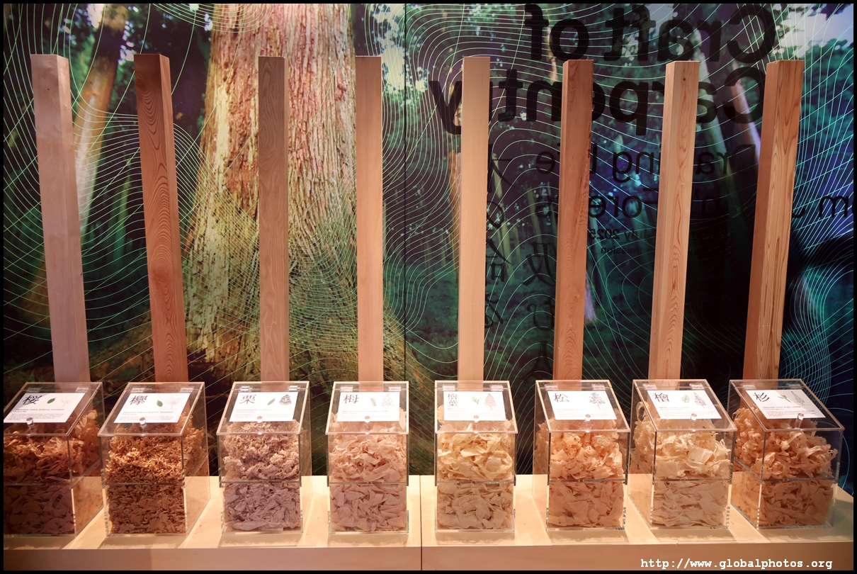 Heading back upstairs, do check out the small display near the entrance where you can smell the different types of wood and the hitatare ceremonial attire used by carpenters for rituals to designate a sacred space or pay respect to forest deities.