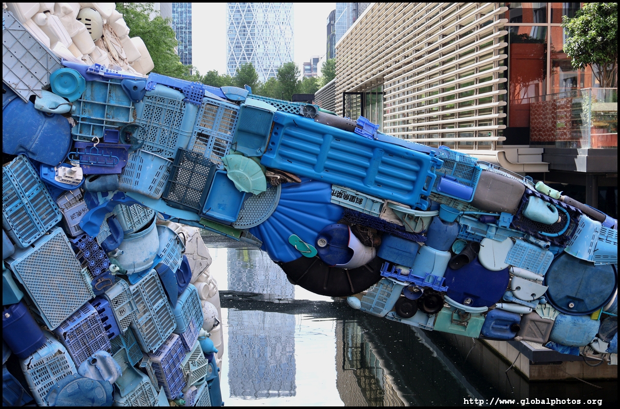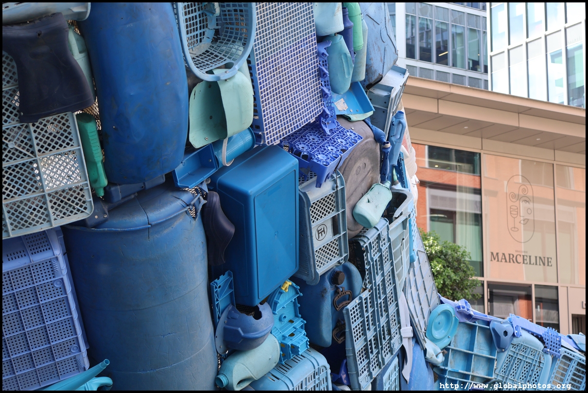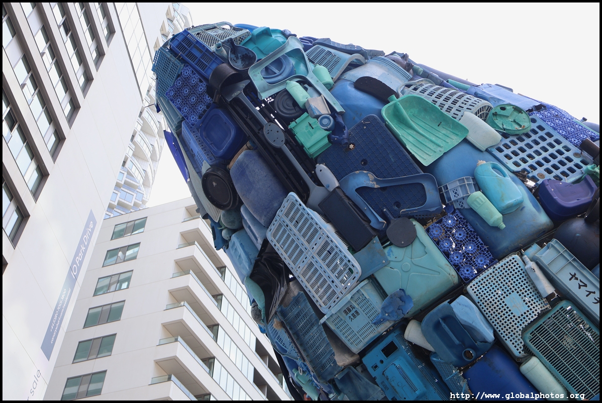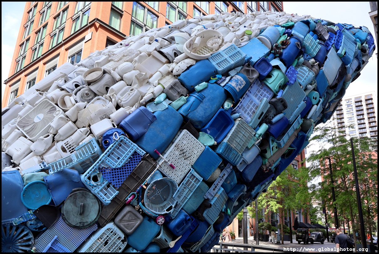 Whale on the Wharf (May 2025)Scientists estimate there are over 150 million tons of plastic waste in our oceans. To highlight the massive pollution problem in our oceans, Whale on the Wharf was made using 5 tonnes of plastic litter found on Hawaii's beaches. It sits on a concrete base made of spent coffee grounds from area restaurants. Designed by StudioKCA in collaboration with the Hawaii Wildlife Fund, the 11m sculpture will be a permanent addition to Canary Wharf as part of the district's public art collection.