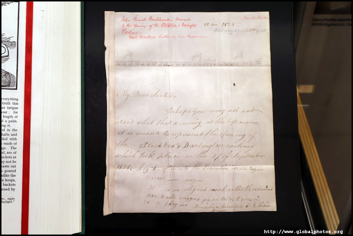 14-year old John Backhouse described the opening of the Stockton and Darlington Railway in 1825 by sketching the first service (replica).