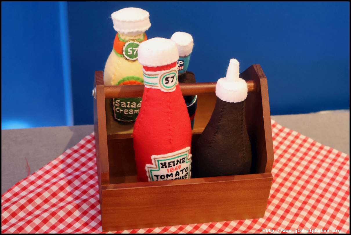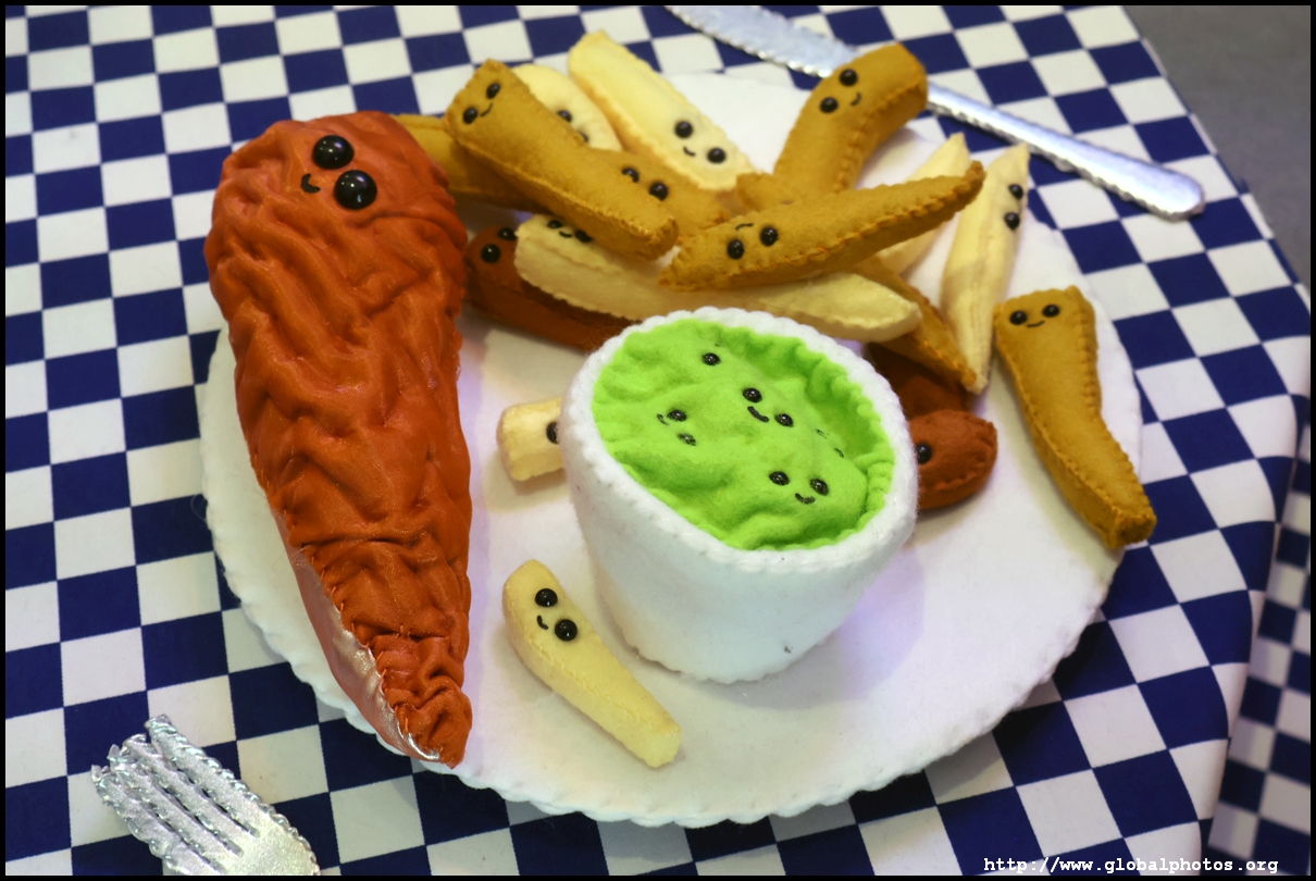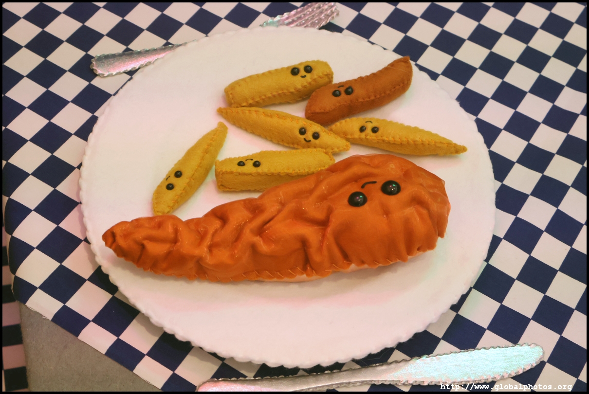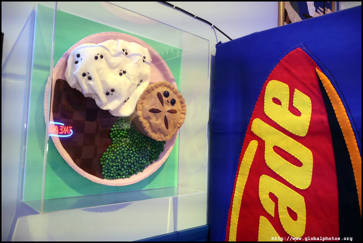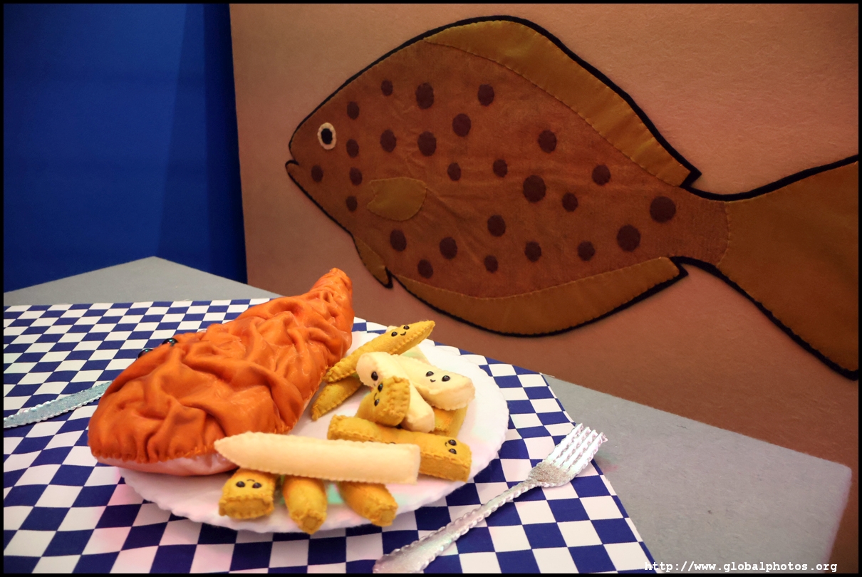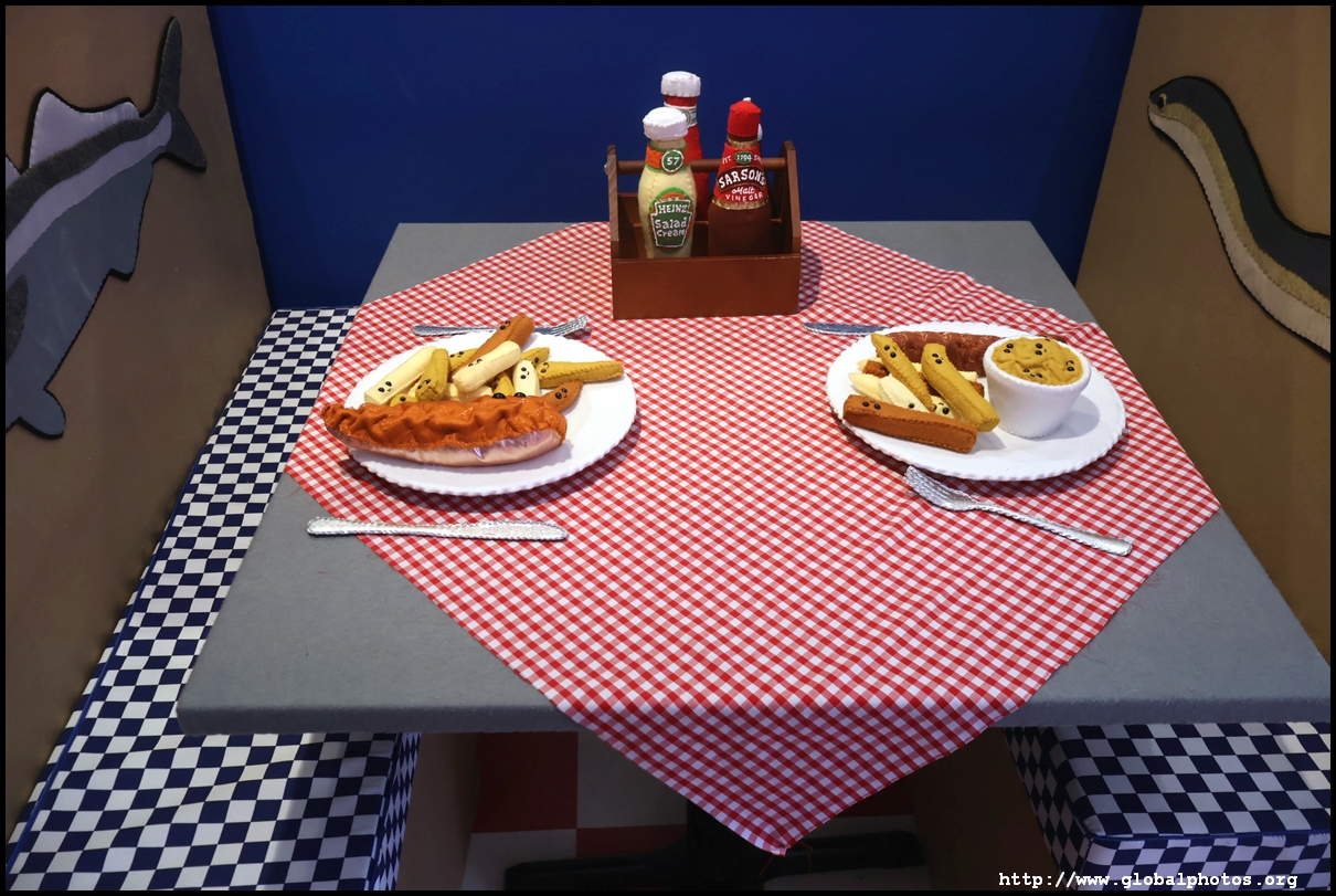 Bourdon Street Chippy (September 2025)Tucked on a side street in upscale Mayfair behind from the luxury brands is a fish and chips shop. Open for only 6 weeks, all of its decor are artworks made from fabric, which you can purchase to bring home. British artist Lucy Sparrow unveiled this exhibition in August with over 65,000 hand-crafted felt pieces on display, ranging from art on the walls, food on the table, to the soft drinks in the vending machine. There are 15 chip shapes and each item is made in great detail. Lucy has struggled with anorexia since her teenage years. Art became her outlet and motivation to recover. You enter into the shop's seating area, with plates of fish and chips and their friends on the tables. Too bad we couldn't sit in the booths to try them all!