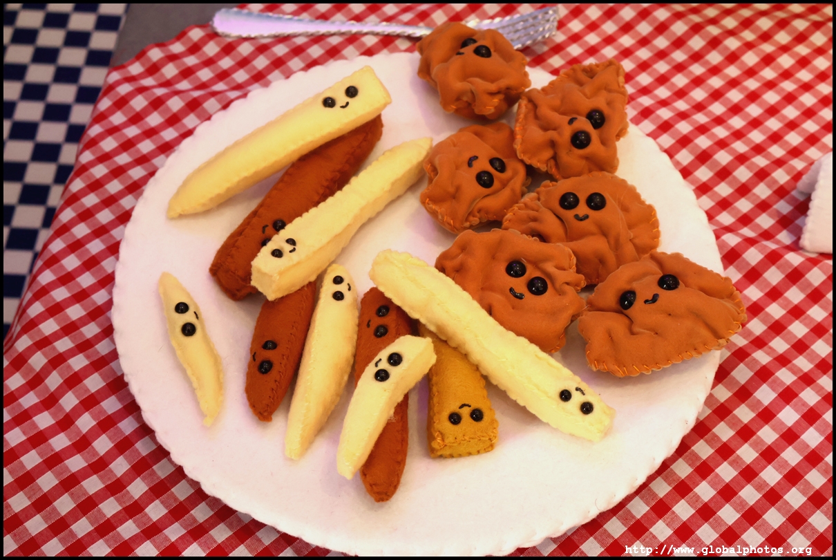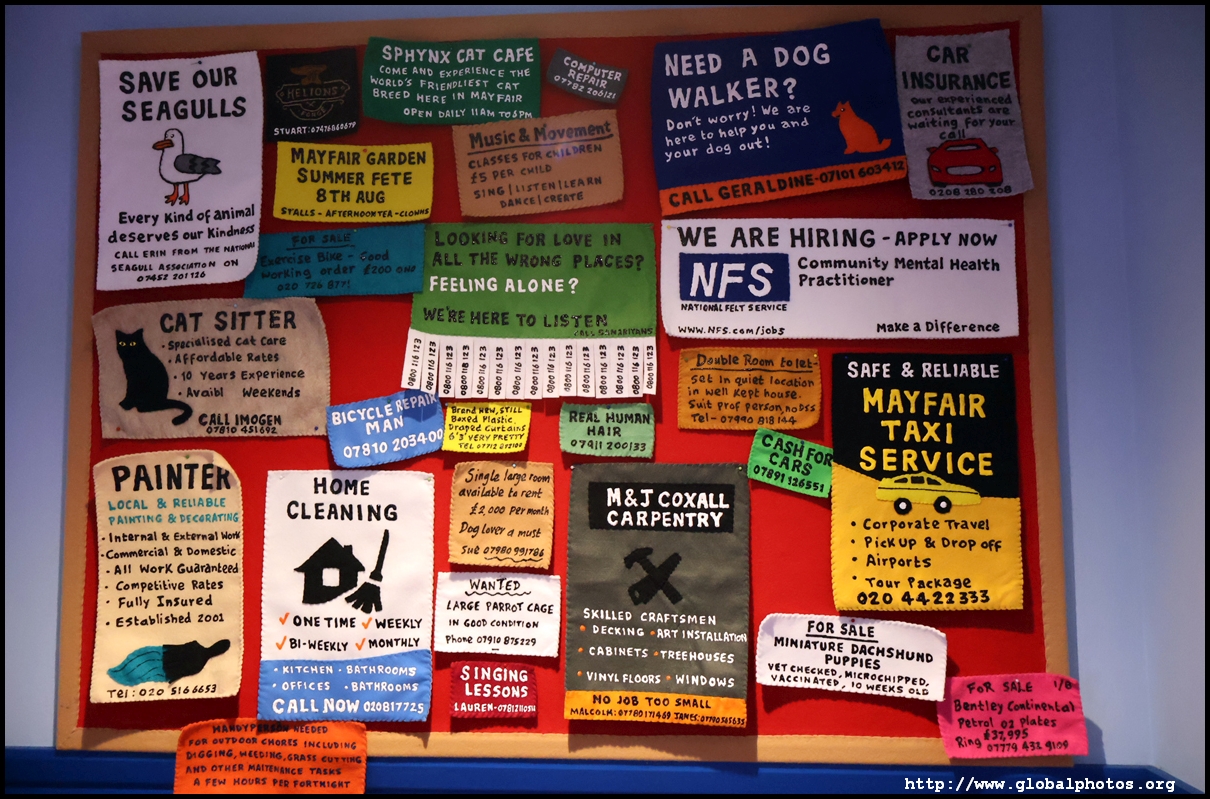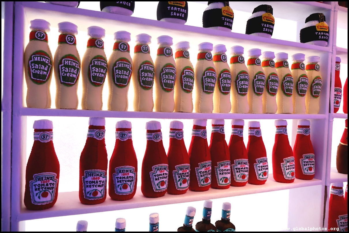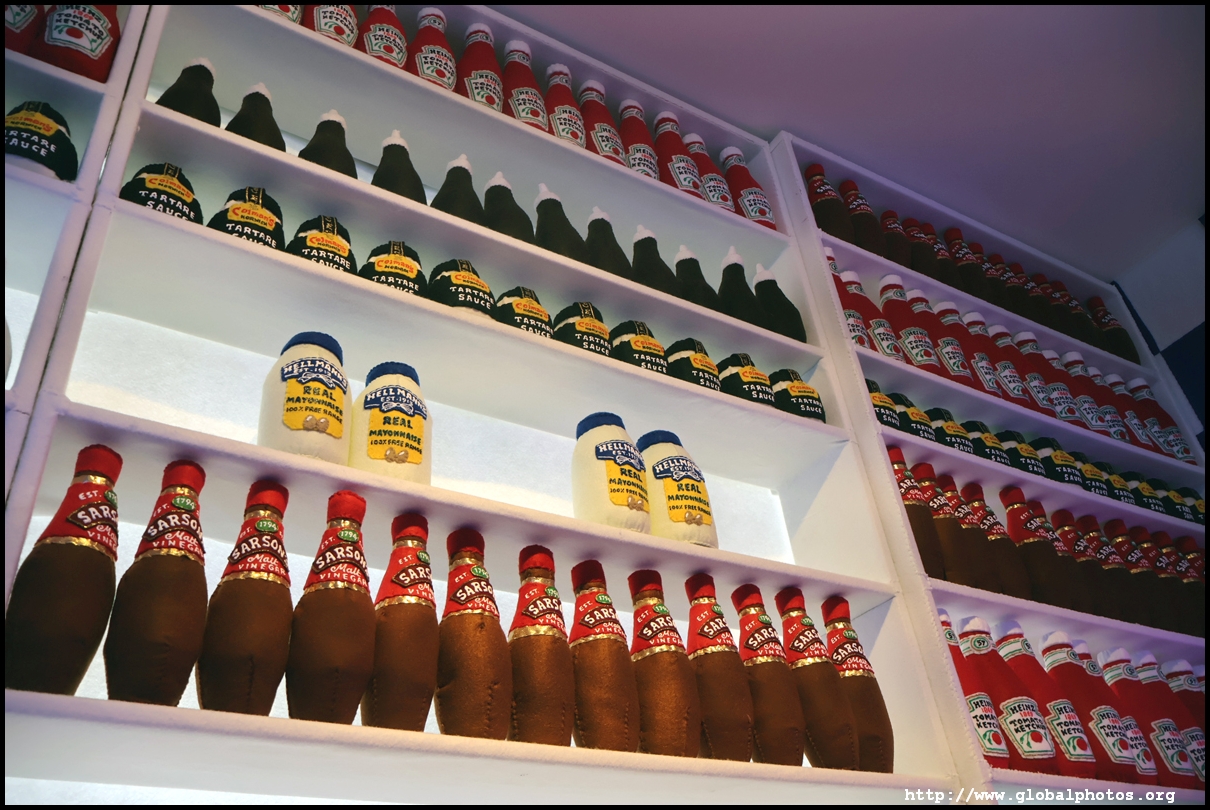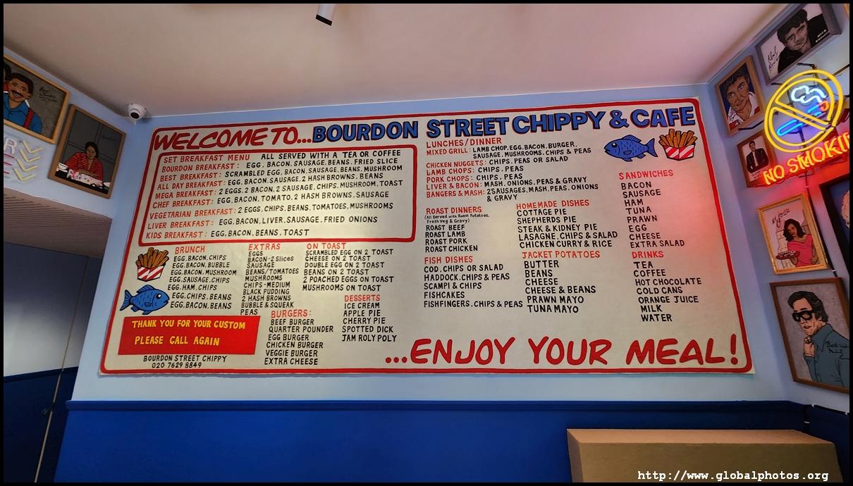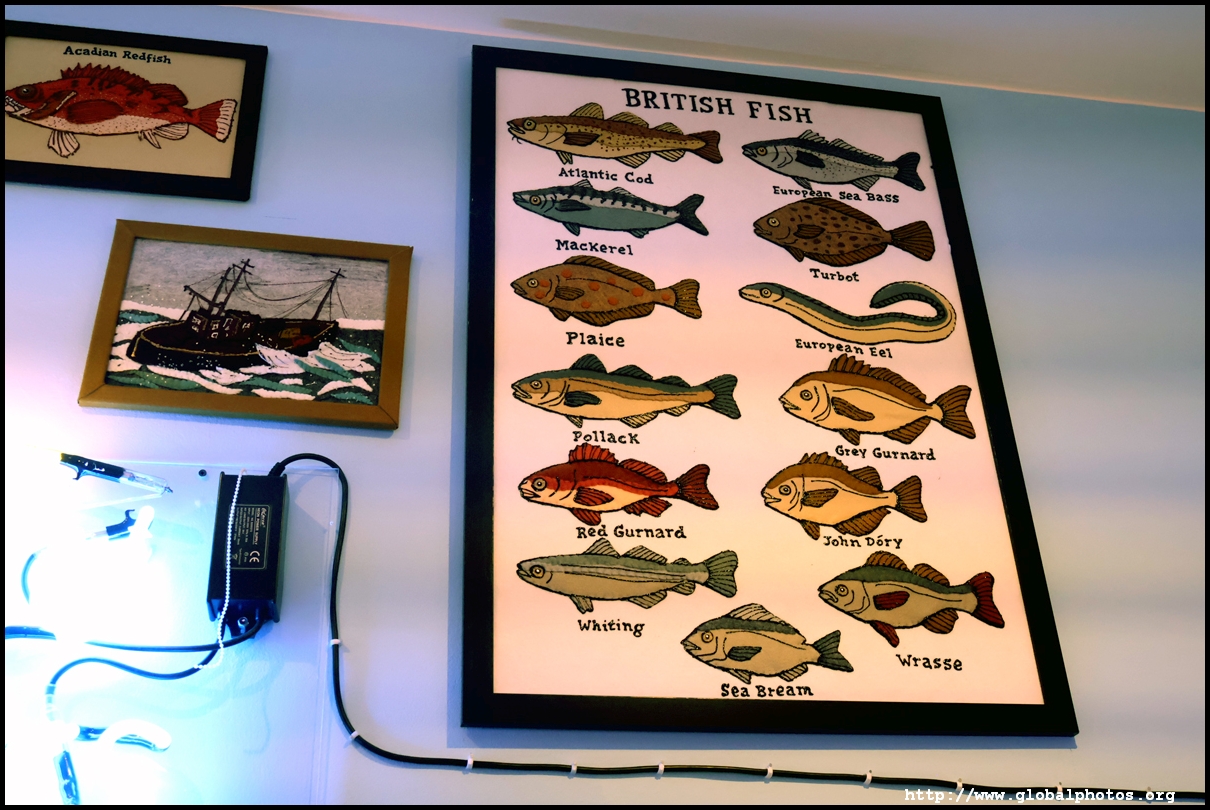 Bourdon Street Chippy (September 2025)Tucked on a side street in upscale Mayfair behind from the luxury brands is a fish and chips shop. Open for only 6 weeks, all of its decor are artworks made from fabric, which you can purchase to bring home. British artist Lucy Sparrow unveiled this exhibition in August with over 65,000 hand-crafted felt pieces on display, ranging from art on the walls, food on the table, to the soft drinks in the vending machine. There are 15 chip shapes and each item is made in great detail. Lucy has struggled with anorexia since her teenage years. Art became her outlet and motivation to recover. You enter into the shop's seating area, with plates of fish and chips and their friends on the tables. Too bad we couldn't sit in the booths to try them all!