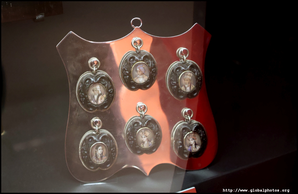 Tucked away behind a small curtain that automatically opens and lights up after pressing a button, these miniature military portraits from the Victorian era symbolize loyalty, friendship, or love. They were often commissioned by loved ones.