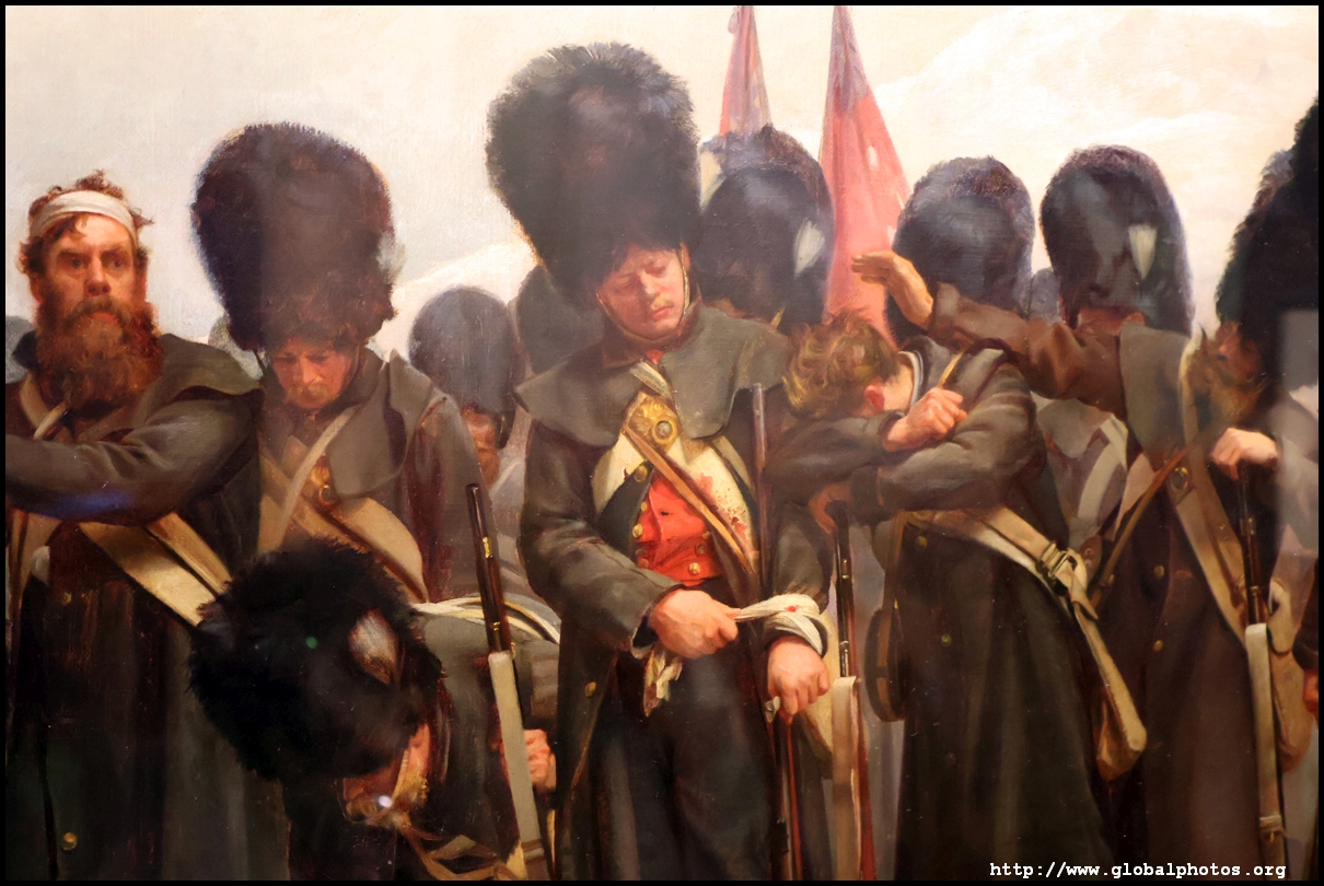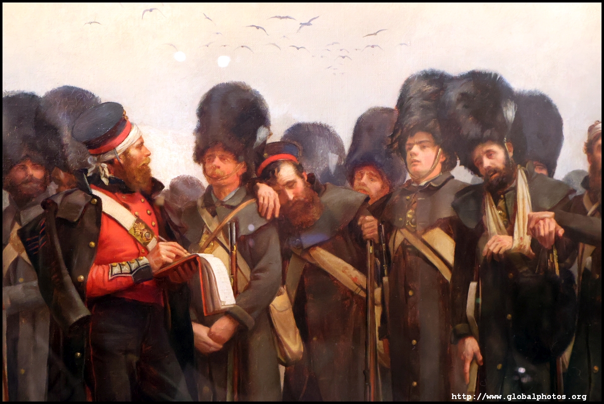 "The Roll Call" shows the battalion after battle during the Crimean winter. Elizabeth Thompson was only 27 when she painted this, which became a huge success.