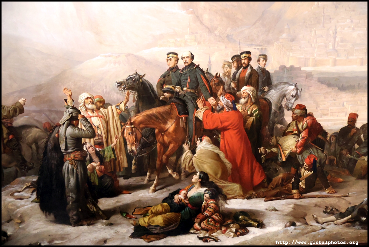 Thomas Jones Barker painted this work on the Turkish army's defeat from the Russians in 1855 due to disease, famine, and an ammunition shortage.