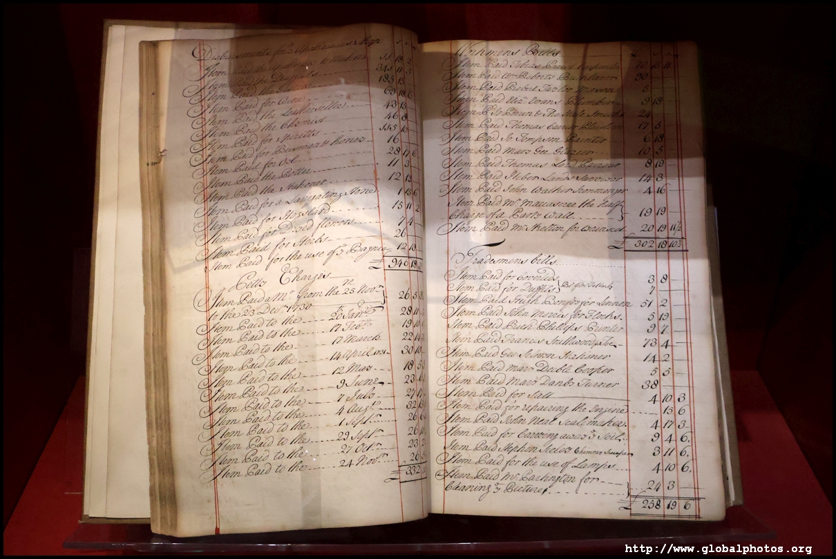 This ledger shows the hospital's expenditures in 1730-1, including payments to craftspeople to build the North Wing, purchases of wine, oil, dried flowers, and herbs.