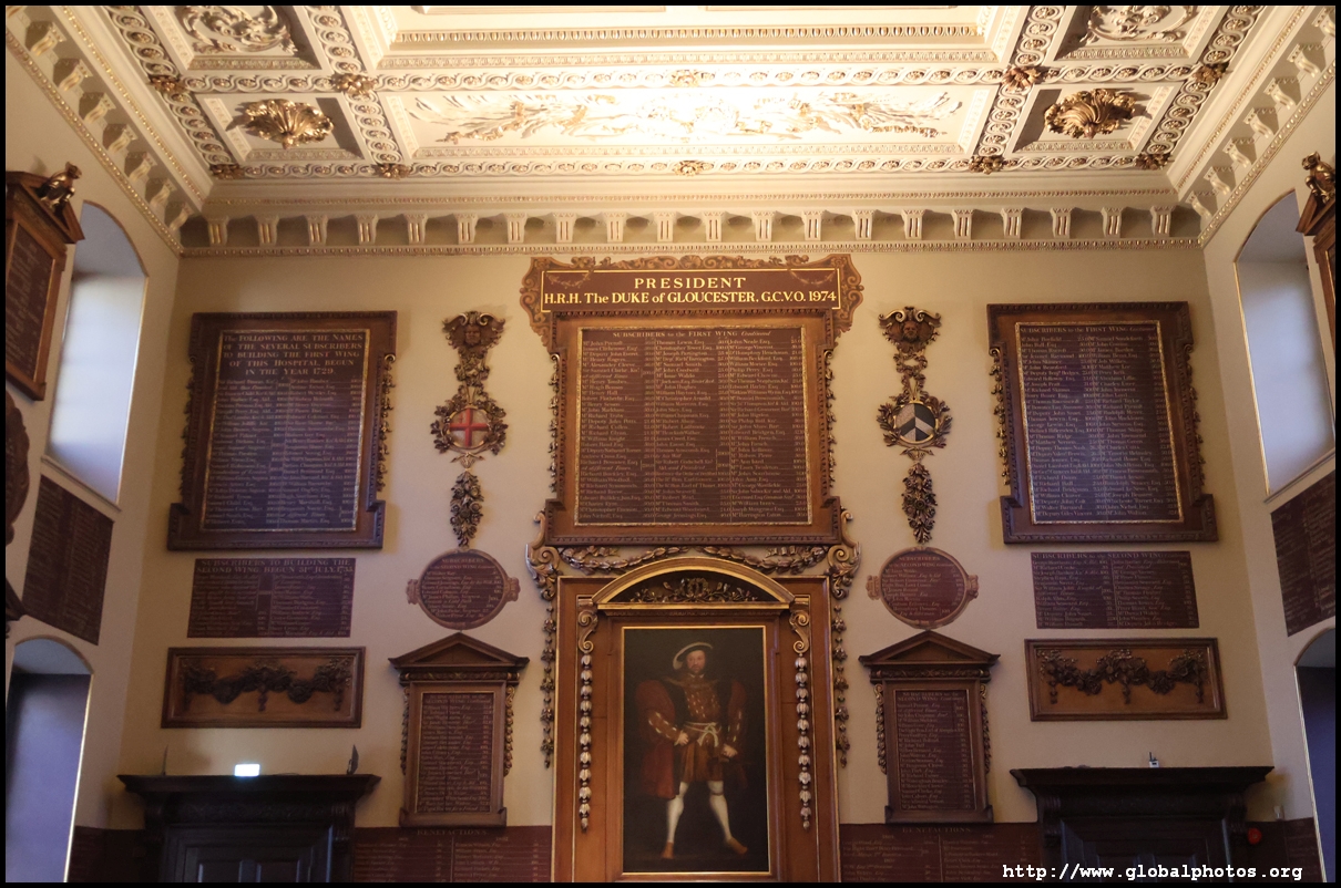The hospital has a history of some 900 years, with the North Wing built in 1732. William Hogarth offered to paint the hall and staircase for free to prevent another Italian artist from doing so and demonstrate an English artist could do as good a job.