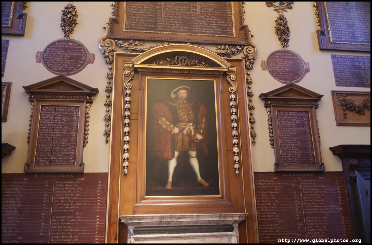 The Great Hall has portraits of 3 significant figures to the hospital - Henry VIII, the first royal president, Edward VII, and Saint Bartholomew.