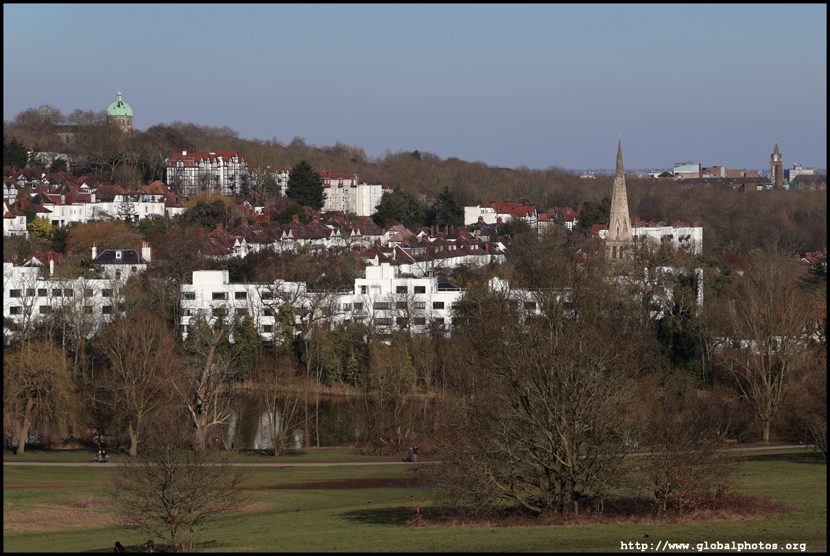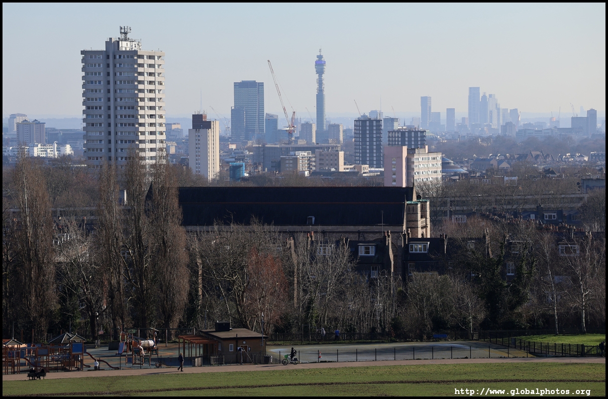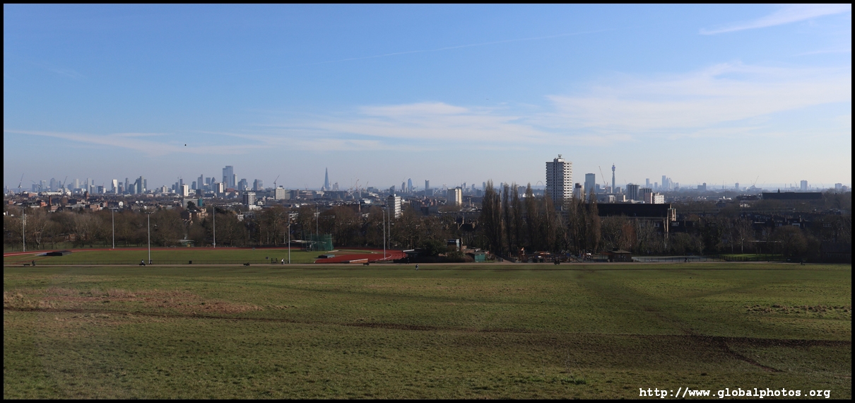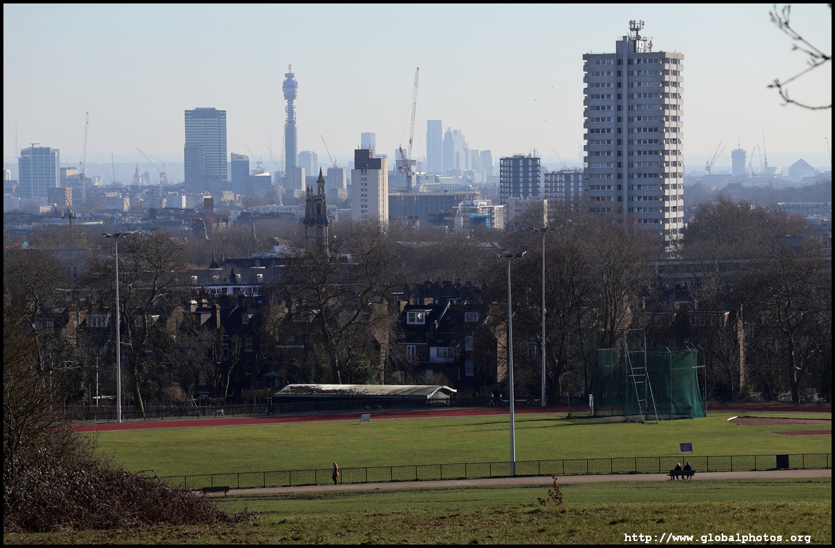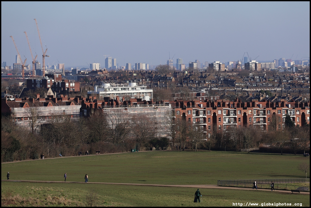 Located at the southern end of the massive Hampstead Heath park is Parliament Hill, a viewpoint overlooking London's growing skyline. London is a fairly flat place and this spot is 98m high. While there is a plaque at the top indicating the spot, the trees get in the way so descend slightly down towards the field for an unobstructed vantage point.