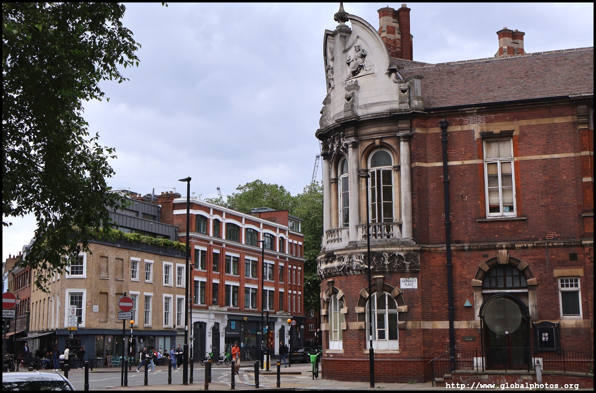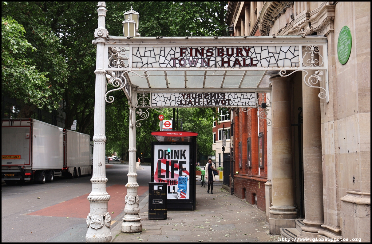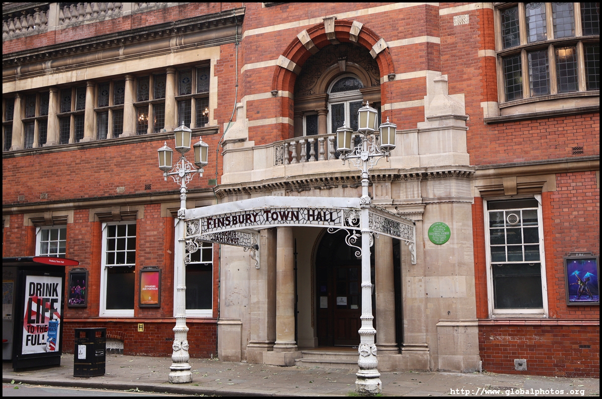 The Old Finsbury Town Hall opened at the intersection of 6 streets in 1895. The first floor once housed the Council Chamber and public halls, which moved to Islington Town Hall in 2003. Architect Evans Vaughan designed this building in the free Flemish Renaissance style with heavy Art Nouveau influences such as the wrought iron canopy above the entrance. It has been home to Urdang, a performing arts college, since 2007.
