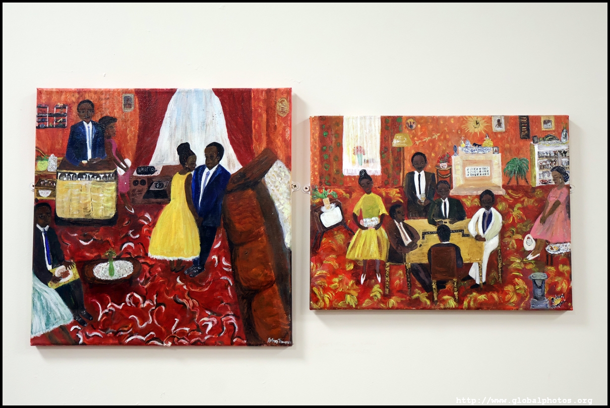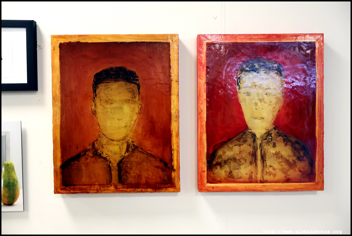 This artist who grew up in Canada took inspiration from photos used for previous visa applications with the paintings done from acrylic on latex to reflect Vietnam's colonial legacy and his sexual identity.