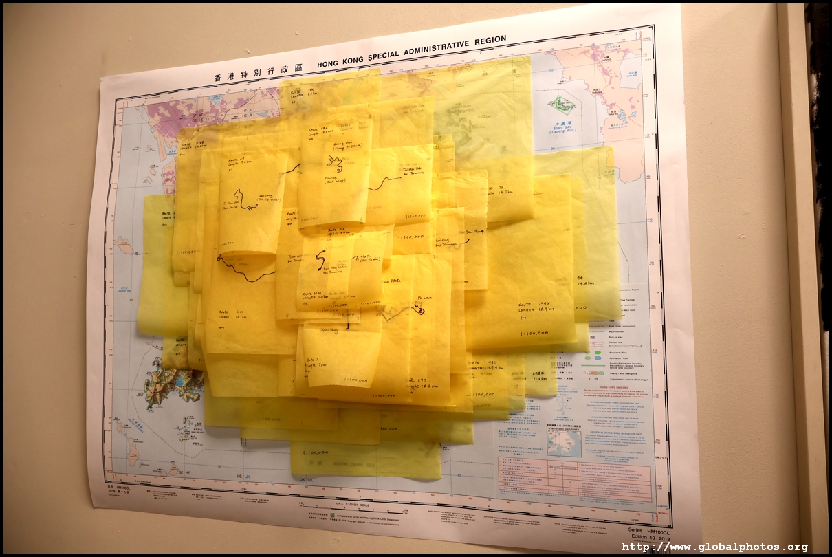 This exhibit features bus routes from Hong Kong's KMB plotted over the city's map, reflecting the tangled network of memories and connections that migrants take with them. The distance between Hong Kong and the UK is about the same as the KMB's bus network.