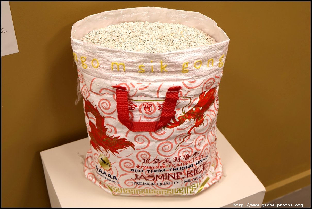 Maggie Williams is a 2nd generation migrant and designed this rice bag filled with spaghetti to reflect her complexities of not being able to speak the language of the culture she feels most associated with.