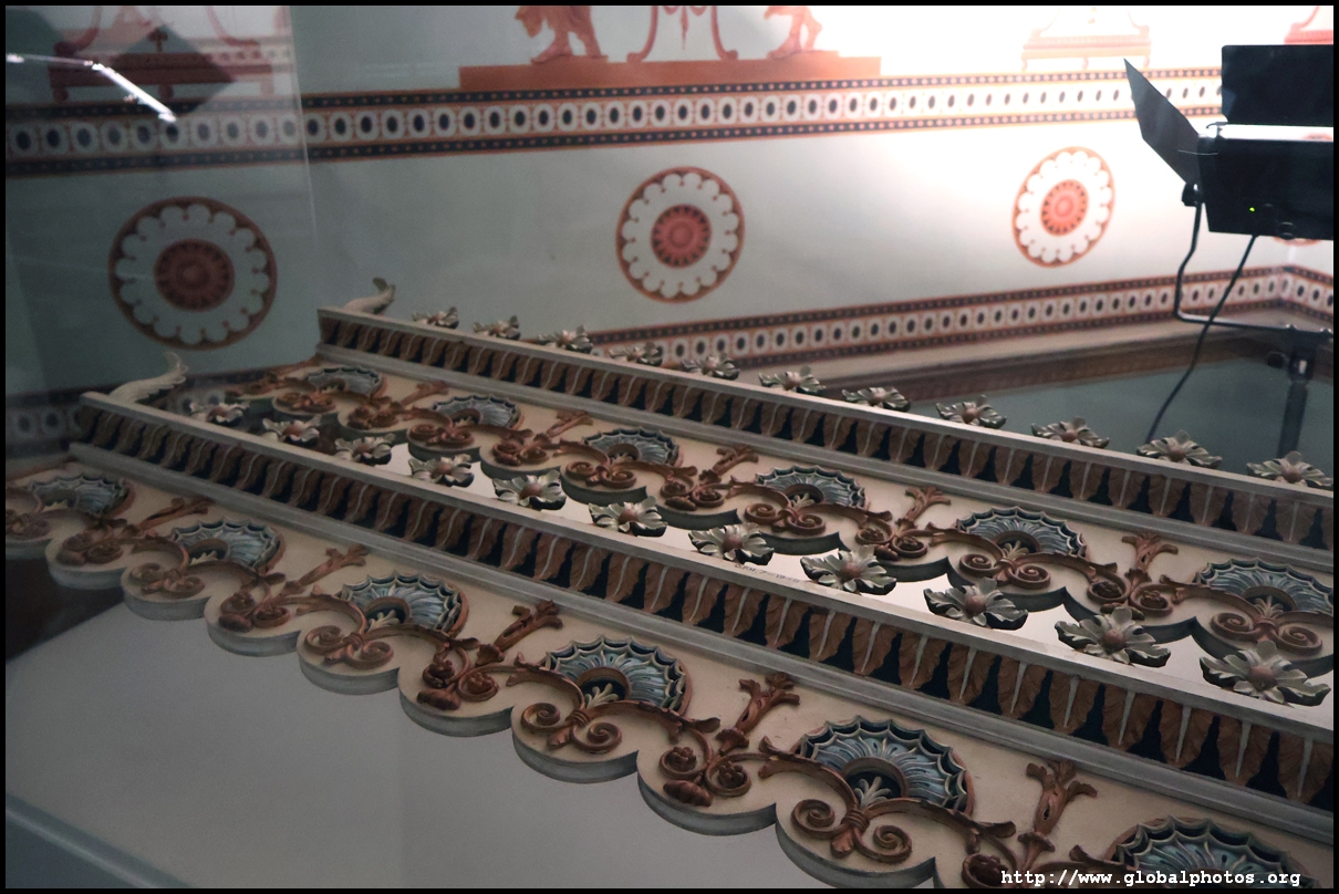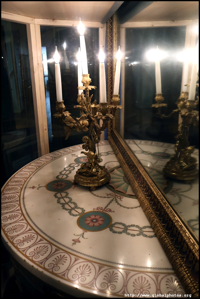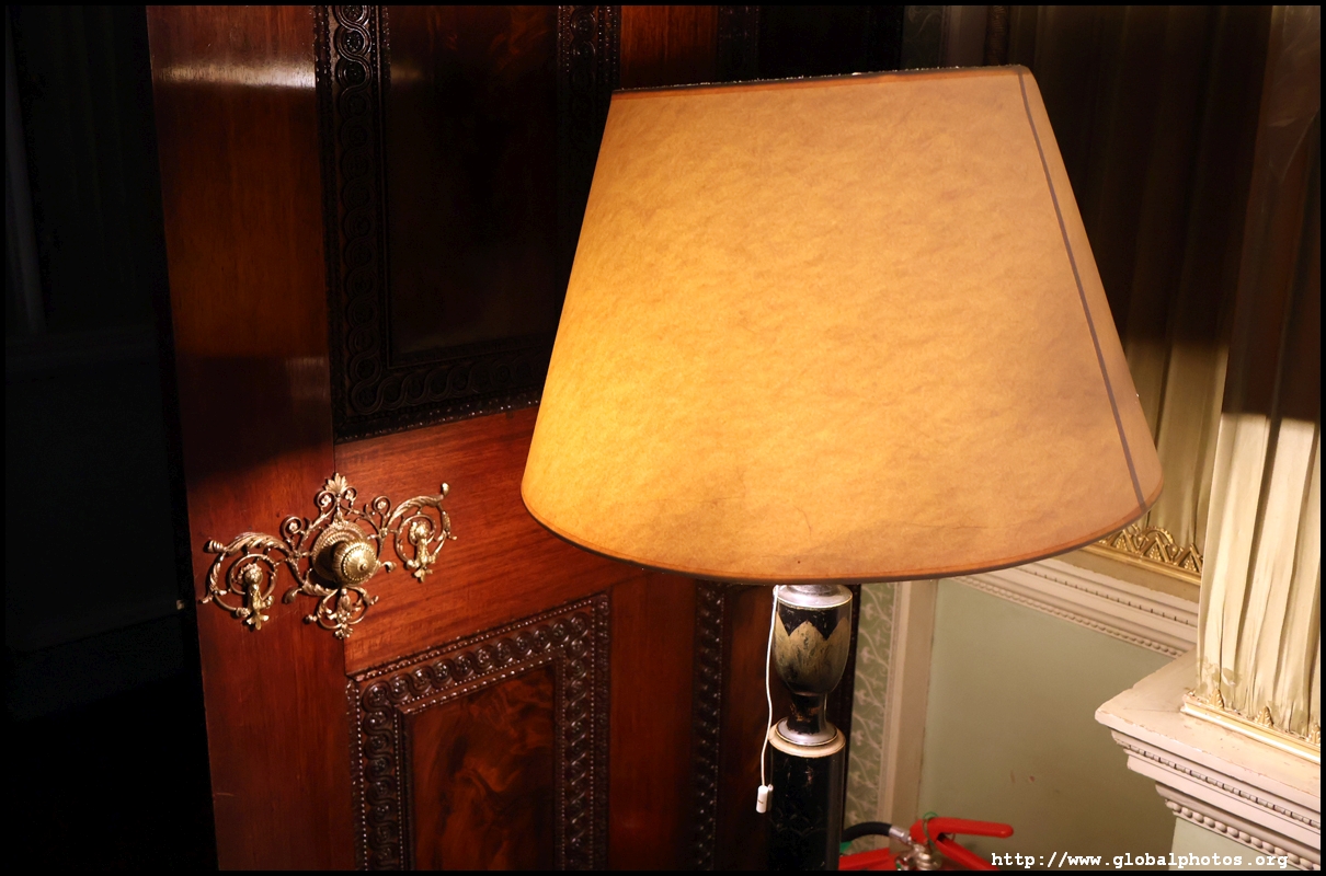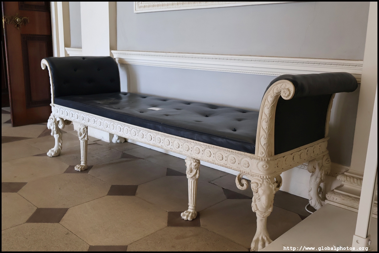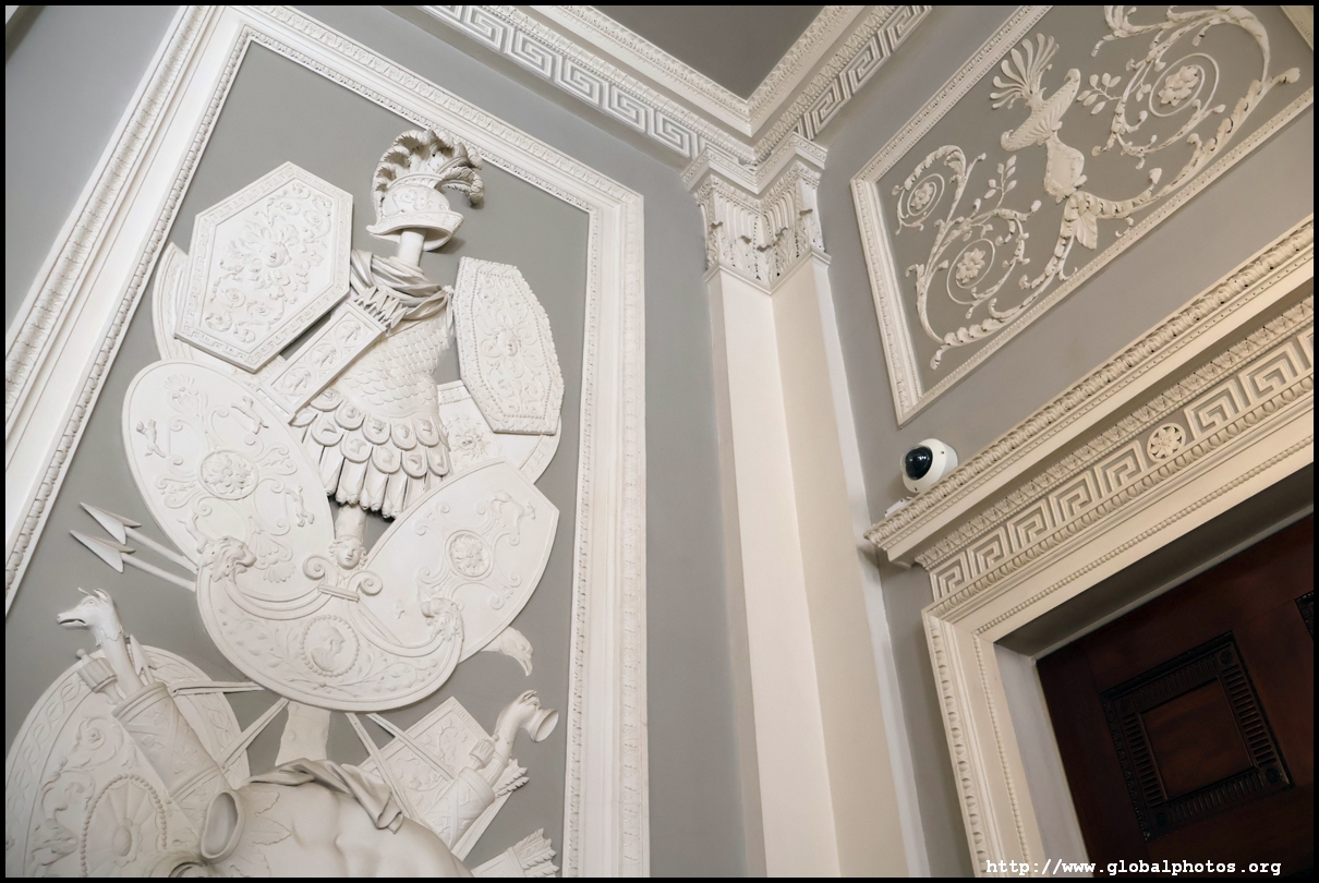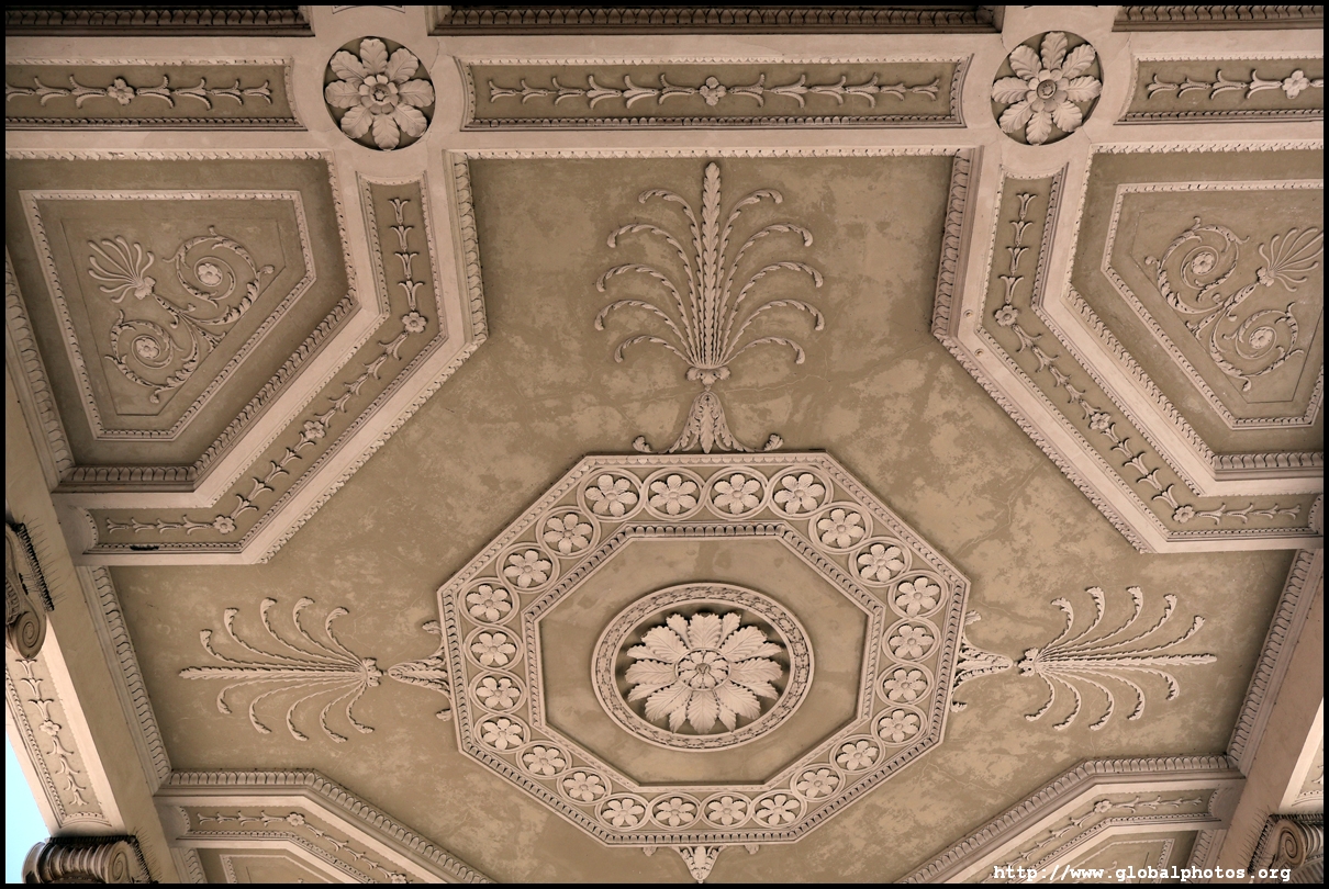 Continuing, the next few rooms are under renovation with many furniture packed up to protect them from construction. The Drawing Room was used to relax after dinner, such as playing cards or playing music. Up above, the ceiling is based on the Temple of the Sun from ancient Syria, a mid-1760s design. The old curtains have also been taken down and put into display cases.