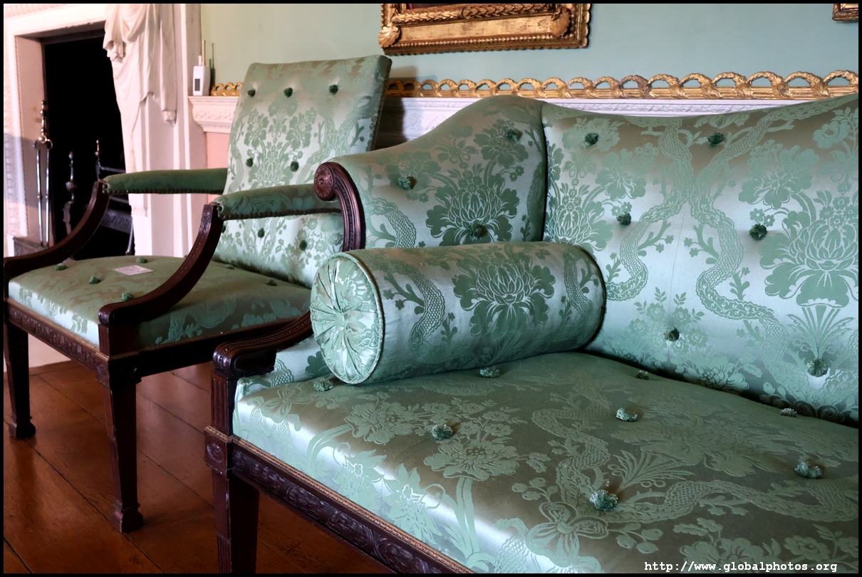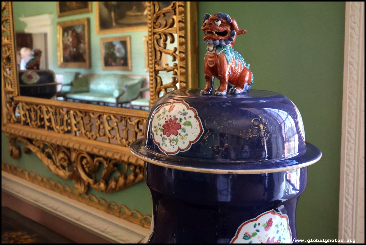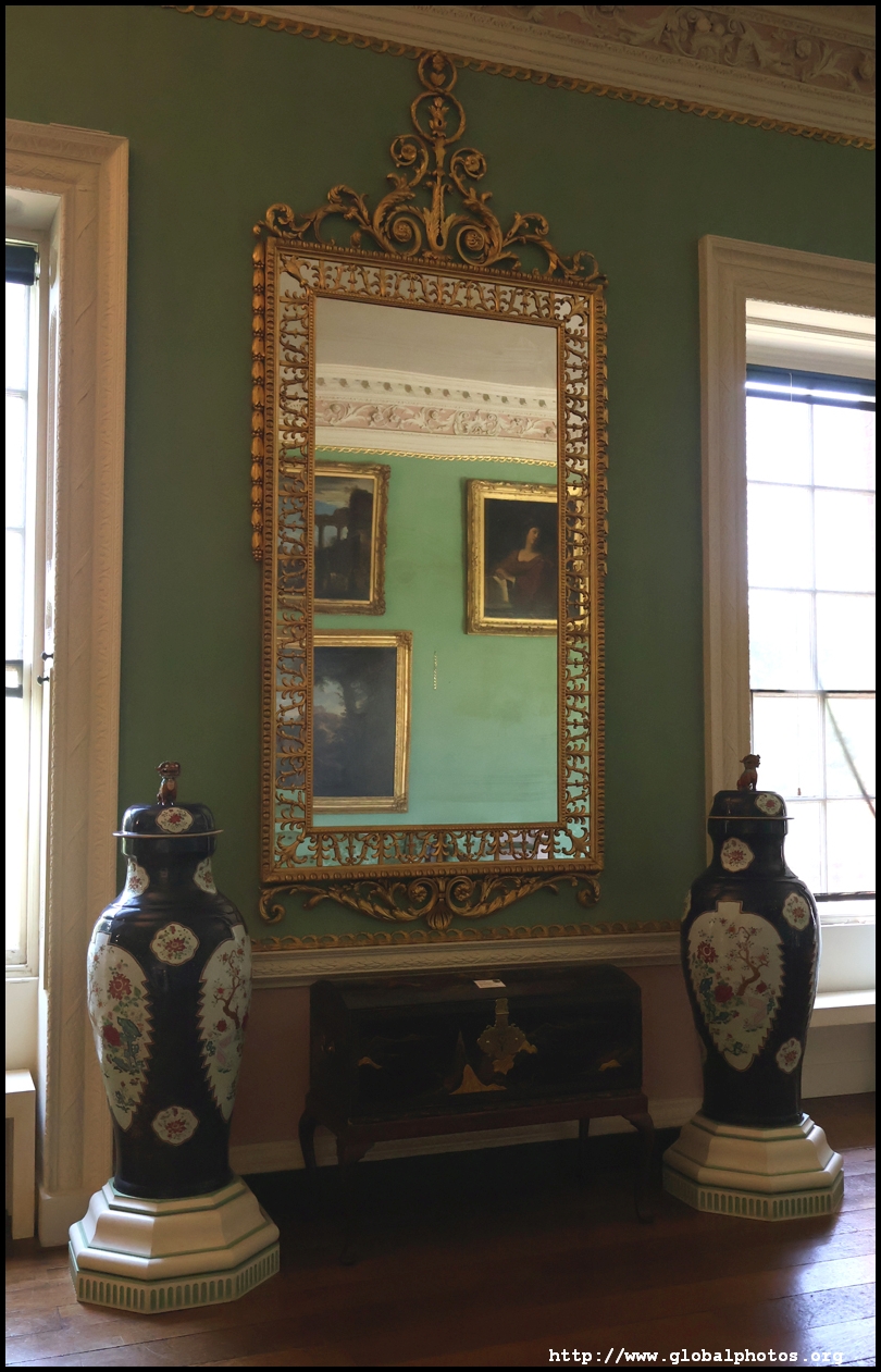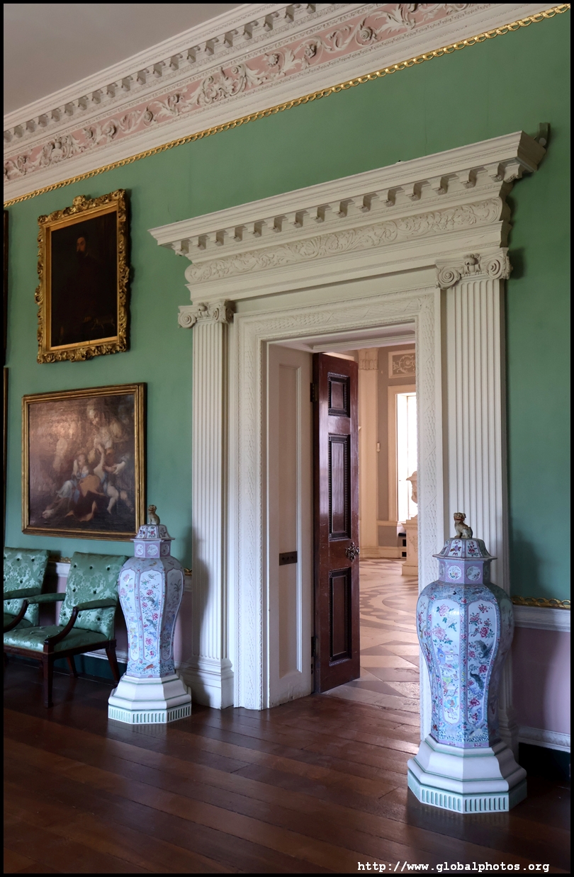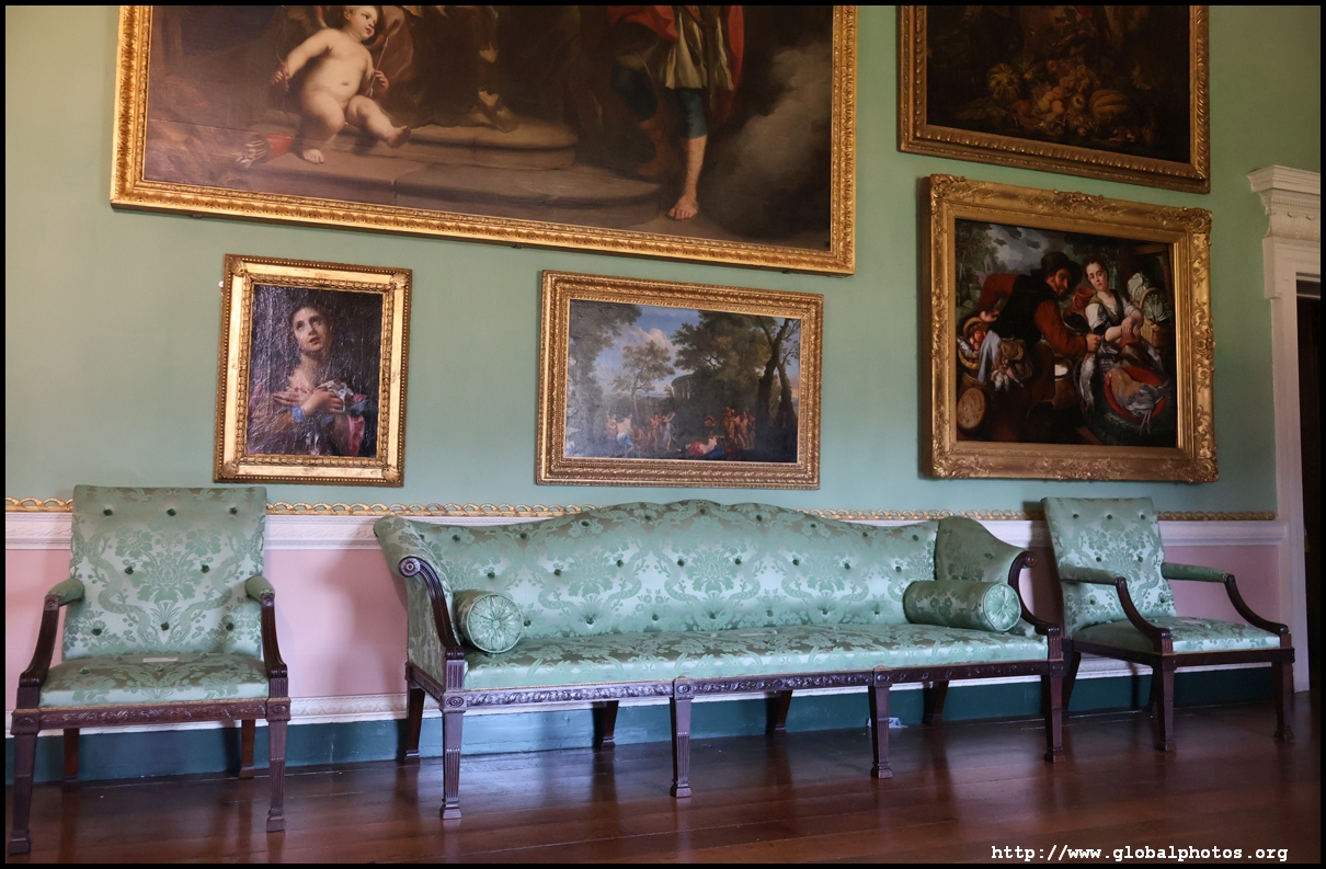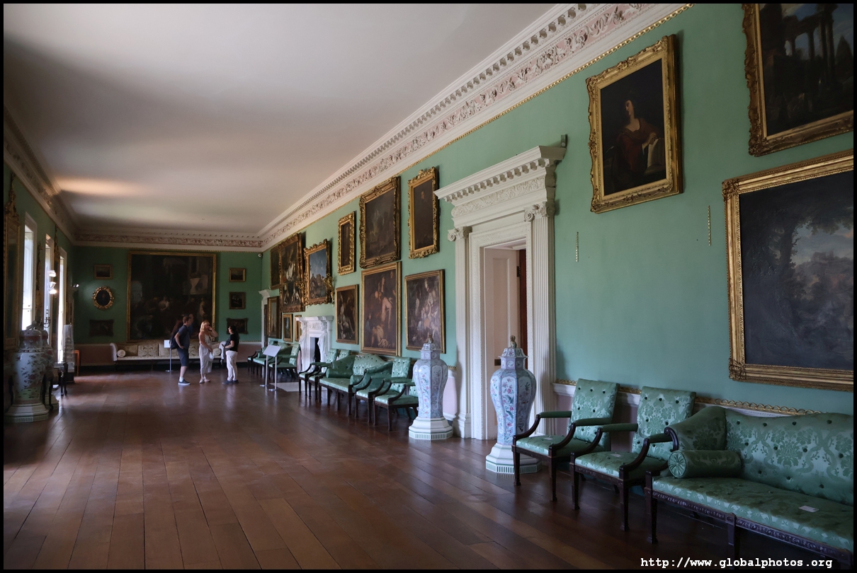 The Long Gallery showcases green pea coloured walls and plenty of paintings and chinoiserie artifacts, which were popular during the 18th century. The room is so long that it took up to 3 days to wax and polish the floor.