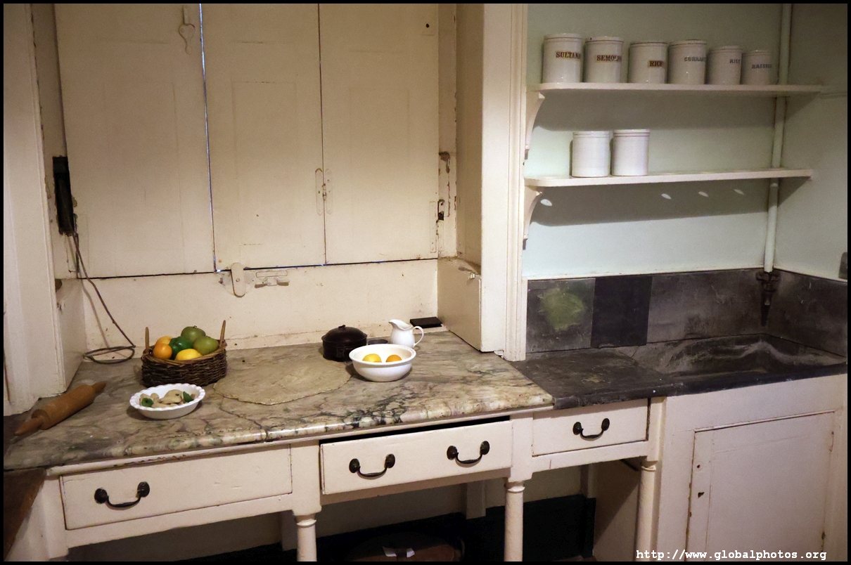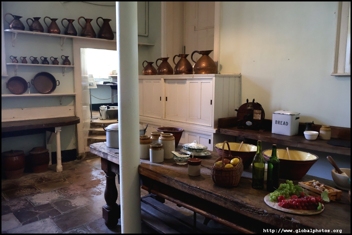 This house was built on a raised platform above the original Tudor house, so the basement areas where the servants and the steward worked is actually on the ground level.