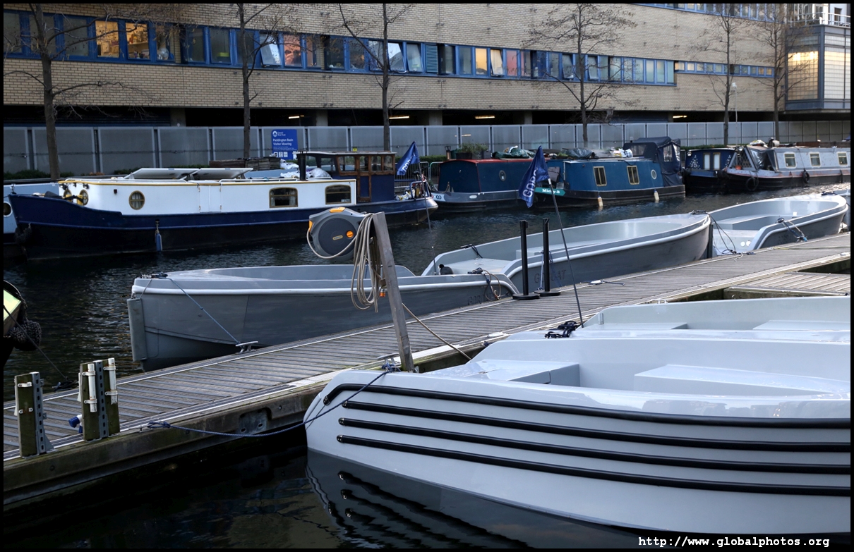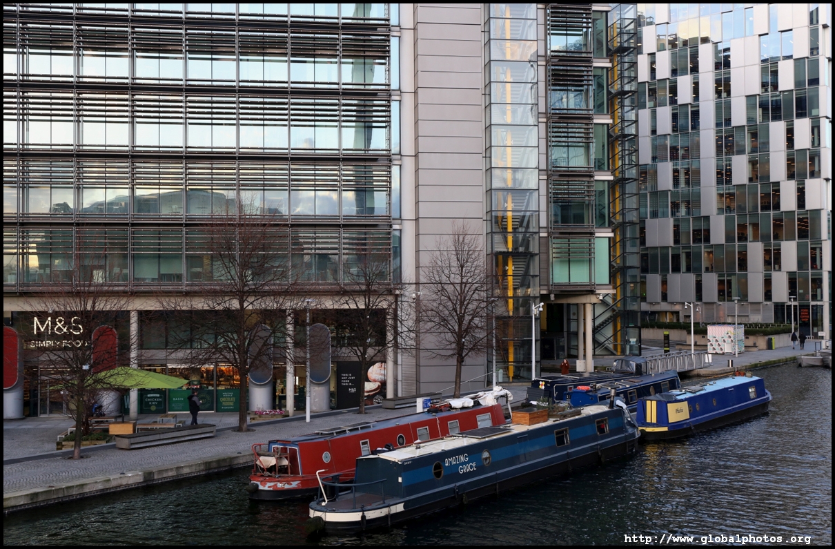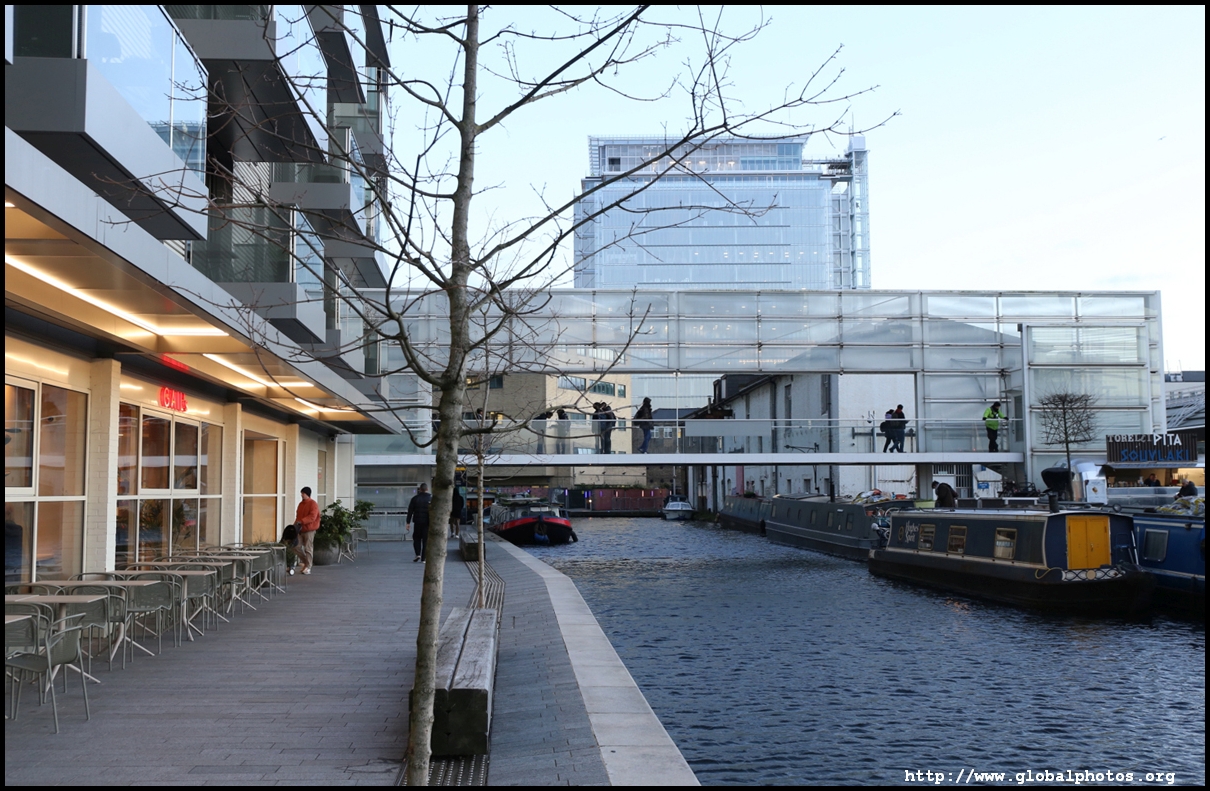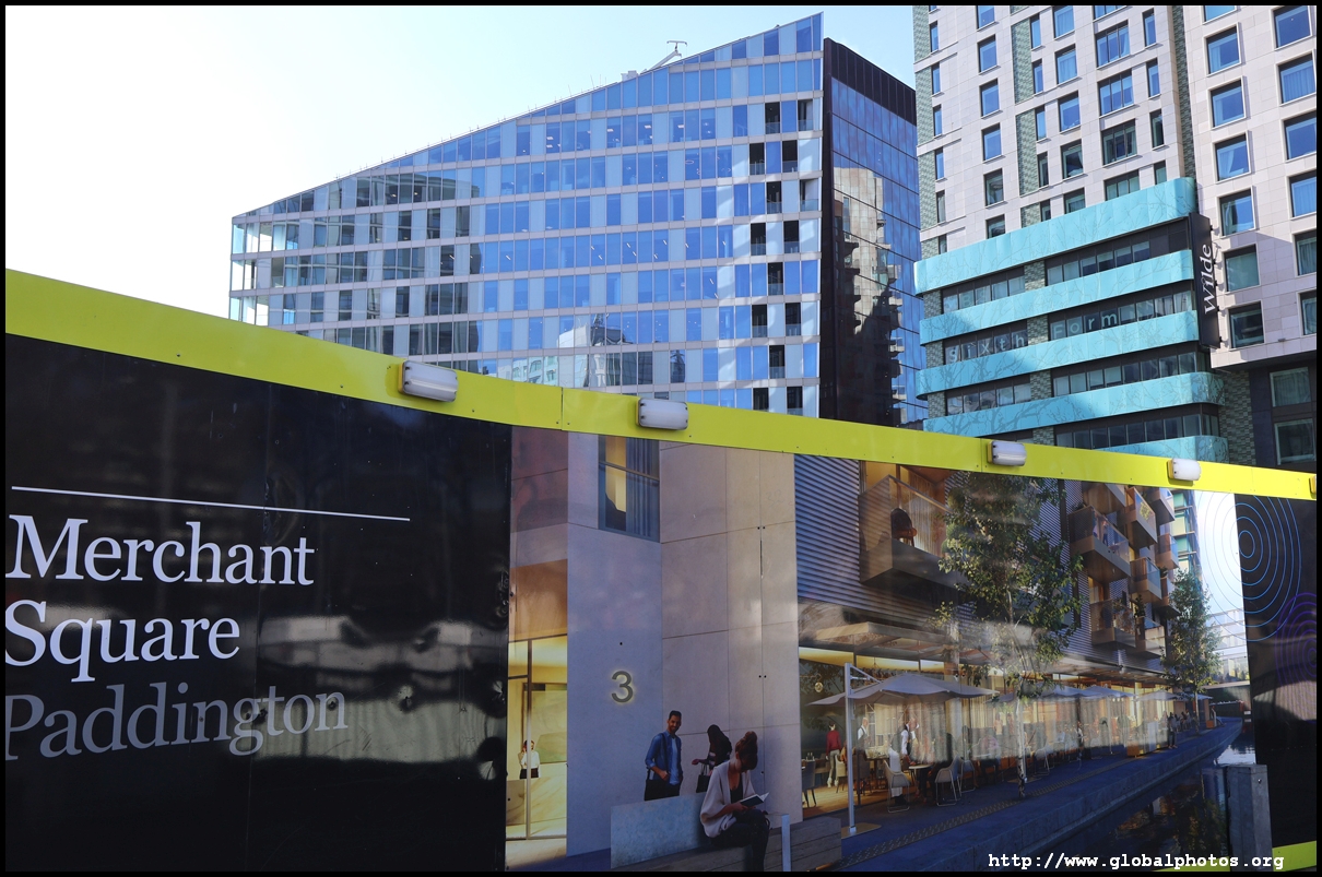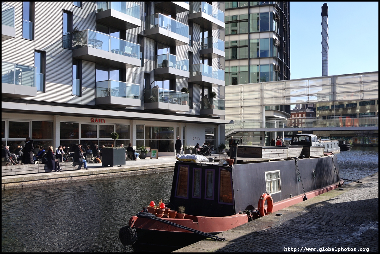 Paddington Basin is section of the Grand Union Canal that opened in 1801, facilitating trade between London and the Midlands. The railroad arrived in 1838 with Paddington being the Great Western Railway (GWR)'s terminus. However, as road traffic became more popular to move goods in recent decades, the canals and warehouses emptied out and the area became a wasteland.Change arrived in 1998 to redevelop the area. Merchant Square is the new neighbourhood of residences and offices to take advantage of the water views and easy access to Paddington station. These are located on the north side of the basin stretching west to east. My tour begins at the eastern end of Paddington Basin with modern tall towers and ends at Rembrandt Gardens, where grand mansions front a basin with many boats parked along the shore.
