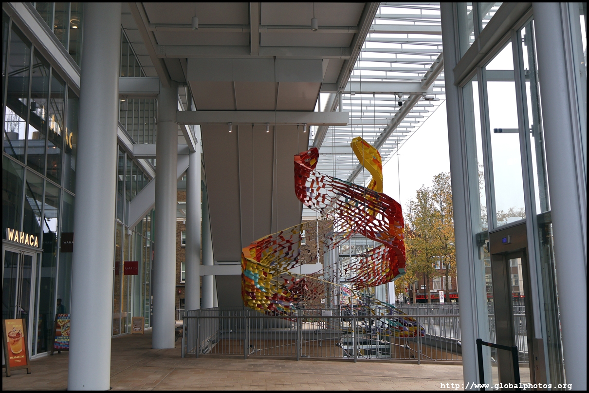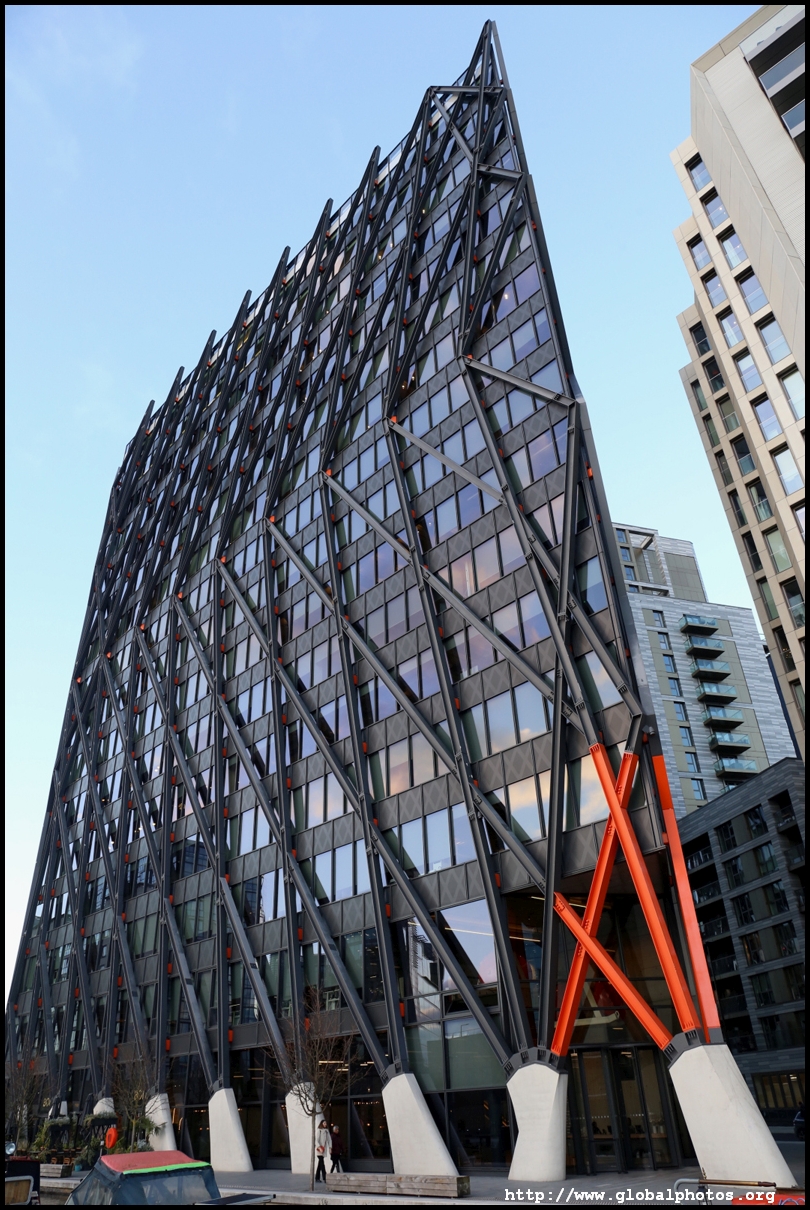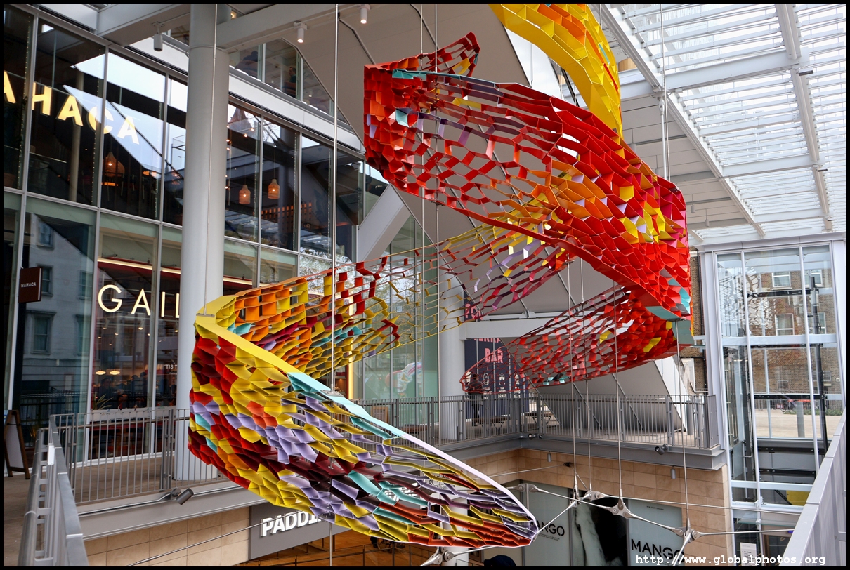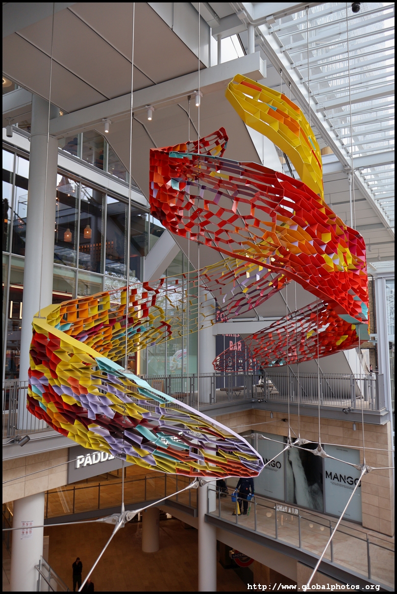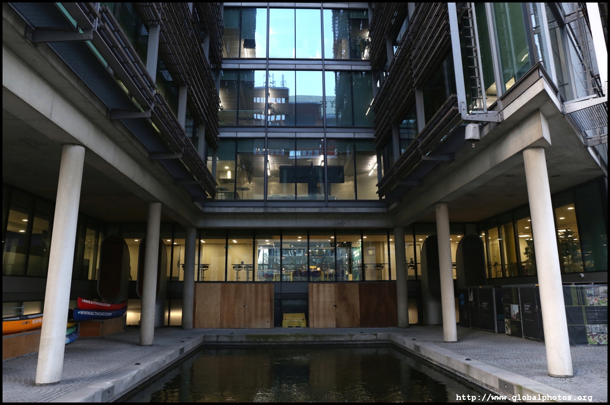 Paddington Basin is section of the Grand Union Canal that opened in 1801, facilitating trade between London and the Midlands. The railroad arrived in 1838 with Paddington being the Great Western Railway (GWR)'s terminus. However, as road traffic became more popular to move goods in recent decades, the canals and warehouses emptied out and the area became a wasteland.Change arrived in 1998 to redevelop the area. Merchant Square is the new neighbourhood of residences and offices to take advantage of the water views and easy access to Paddington station. These are located on the north side of the basin stretching west to east. My tour begins at the eastern end of Paddington Basin with modern tall towers and ends at Rembrandt Gardens, where grand mansions front a basin with many boats parked along the shore.