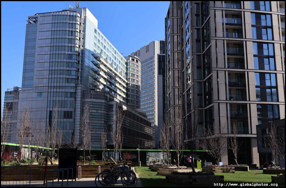 North Wharf Road runs along the redeveloped quarter parallel to the basin just to the north of the waterfront, giving vehicular access to the homes and offices in the area.