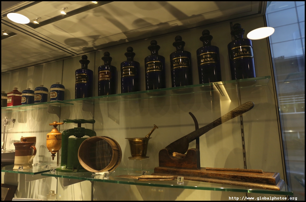 I arrived at the Royal Pharmaceutical Society's office building just east of the Tower of London to find this small museum to occupy a part of their ground floor. The professional association was founded in 1841. Back in those times, anyone can sell medicines and there was no regulation. Chemists wanted to change that and make their profession more respectable, which led to the association's creation.