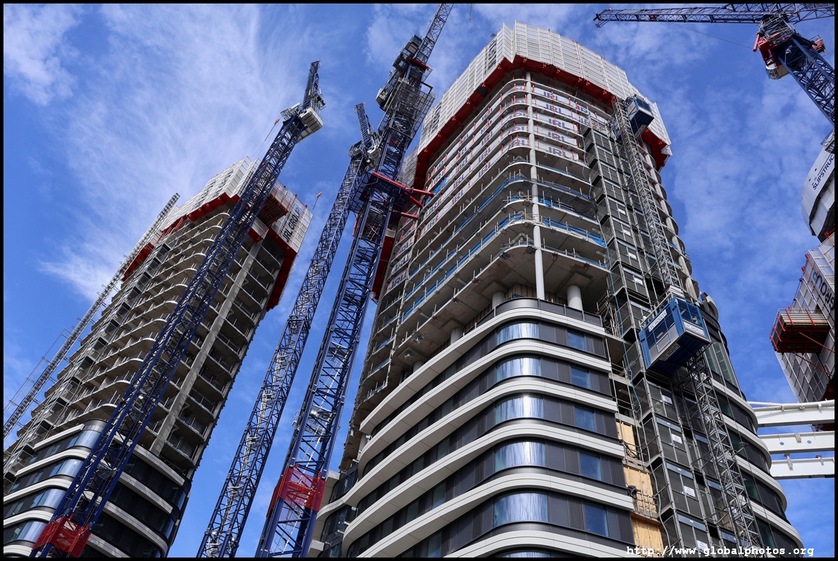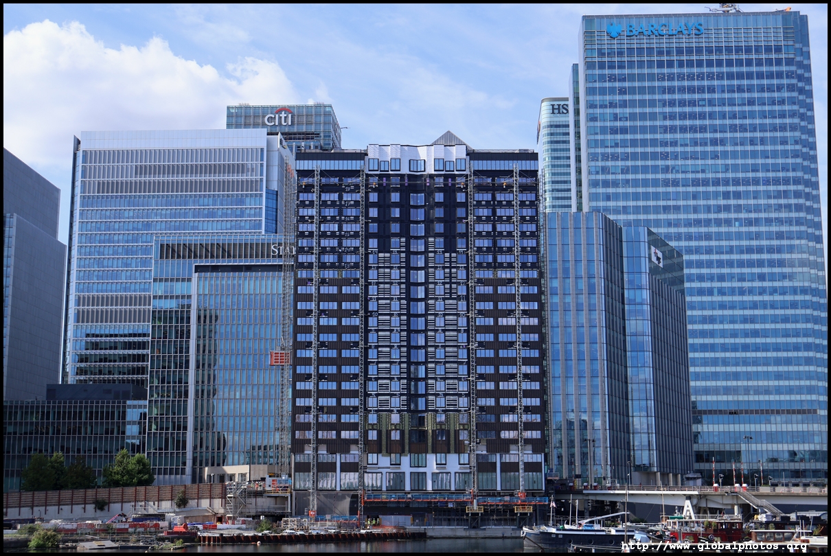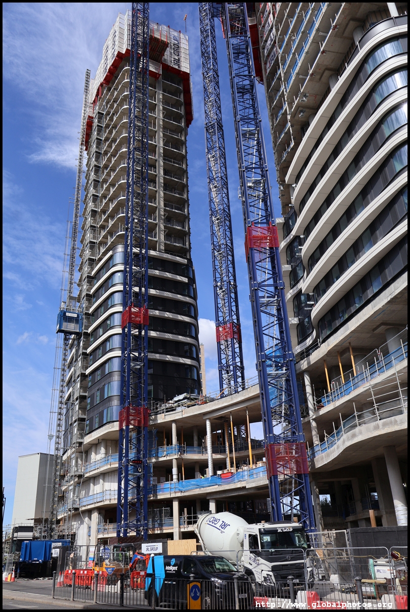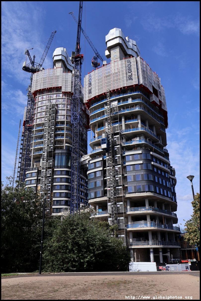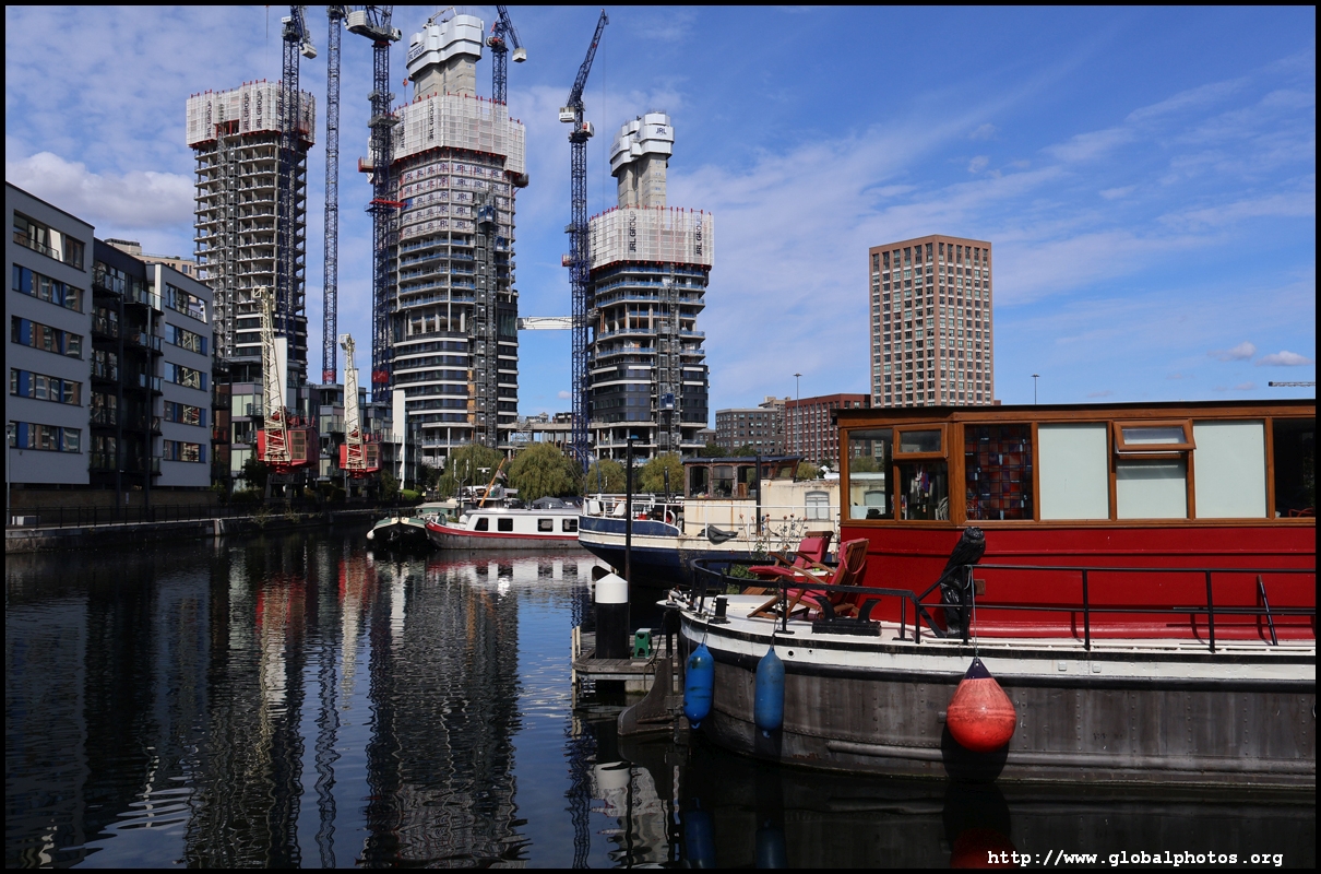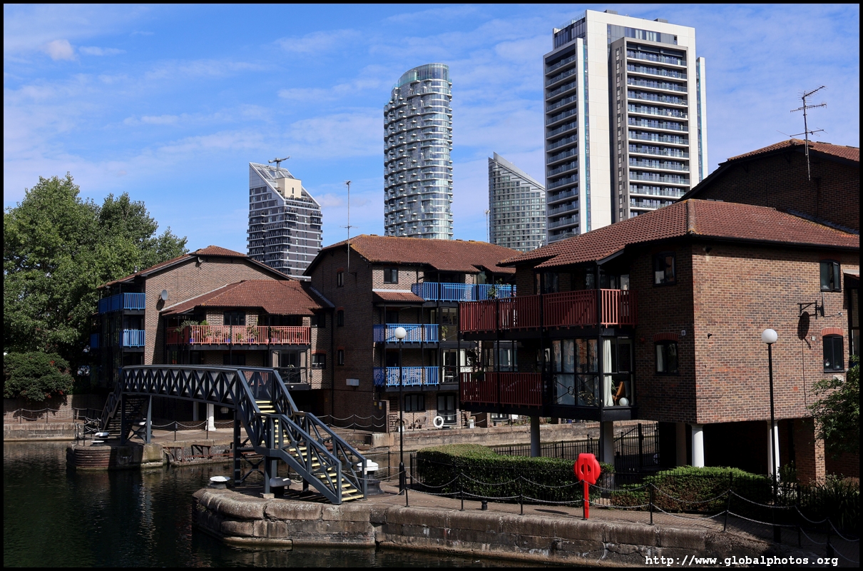 Within walking distance from Canary Wharf's residential and commercial towers, Poplar Dock was originally a reservoir used to manage the West India Docks' water levels. Coal was unloaded here from northeast England and onto other vehicles for distribution. Timber was also floated here to prevent them from drying up and cracking.In 1999, the dock was repurposed into a marina, and the surrounding areas have been regenerated into a quiet residential community. From Blackwall DLR station, cross the roundabout underground and you will arrive at a small park on Trafalgar Way. The rising towers are part of a student accommodation project at #2, which will consist of 3 towers rising 28, 36, and 46 floors offering about 1700 student units.