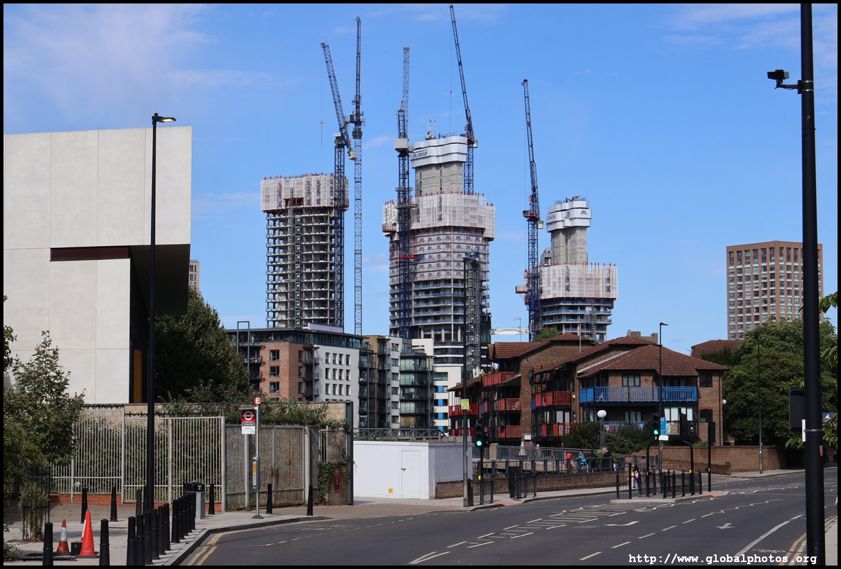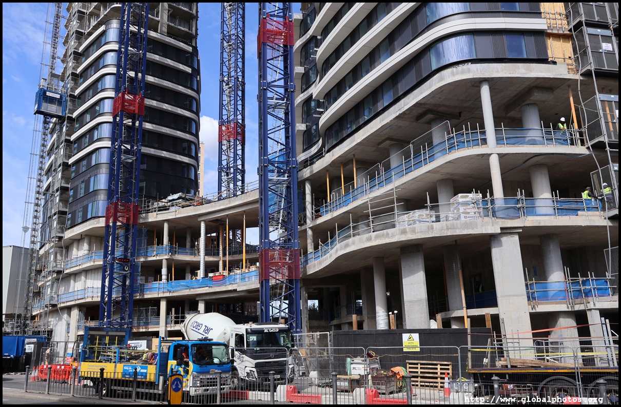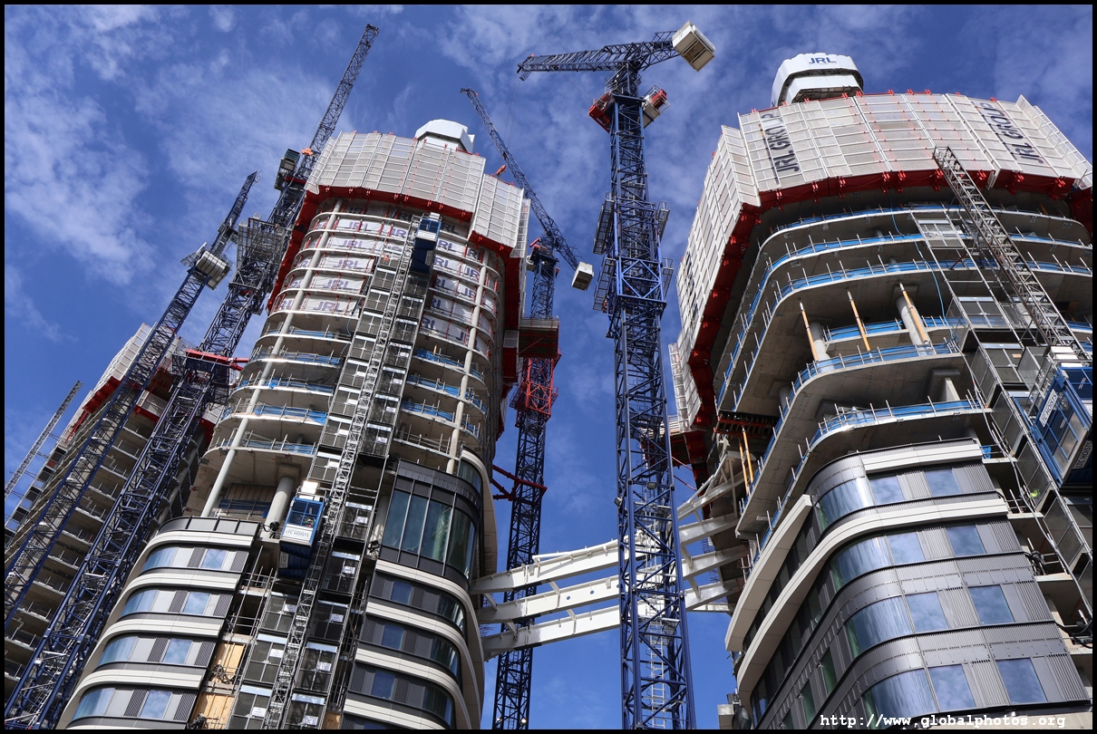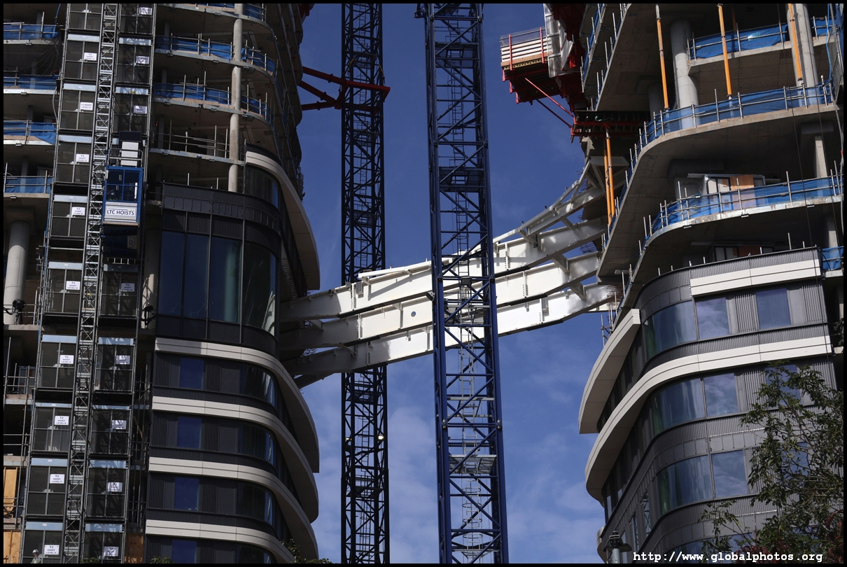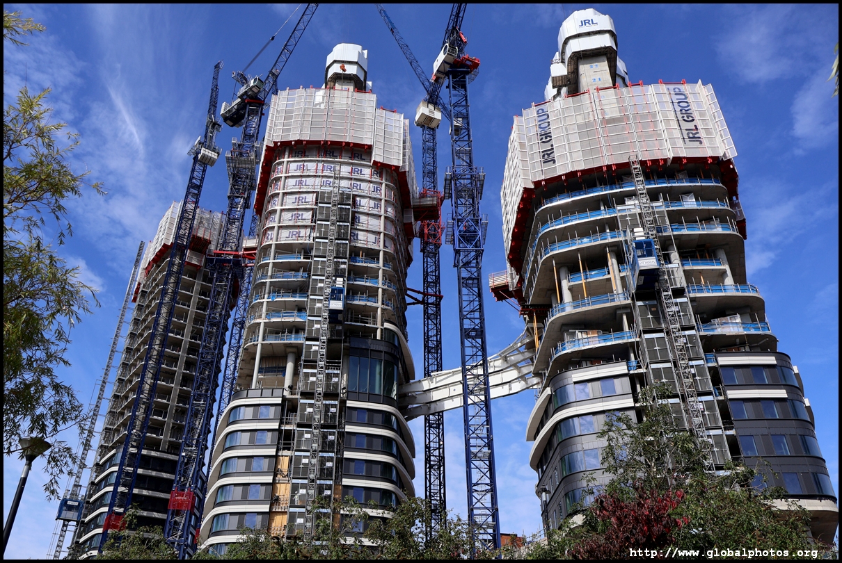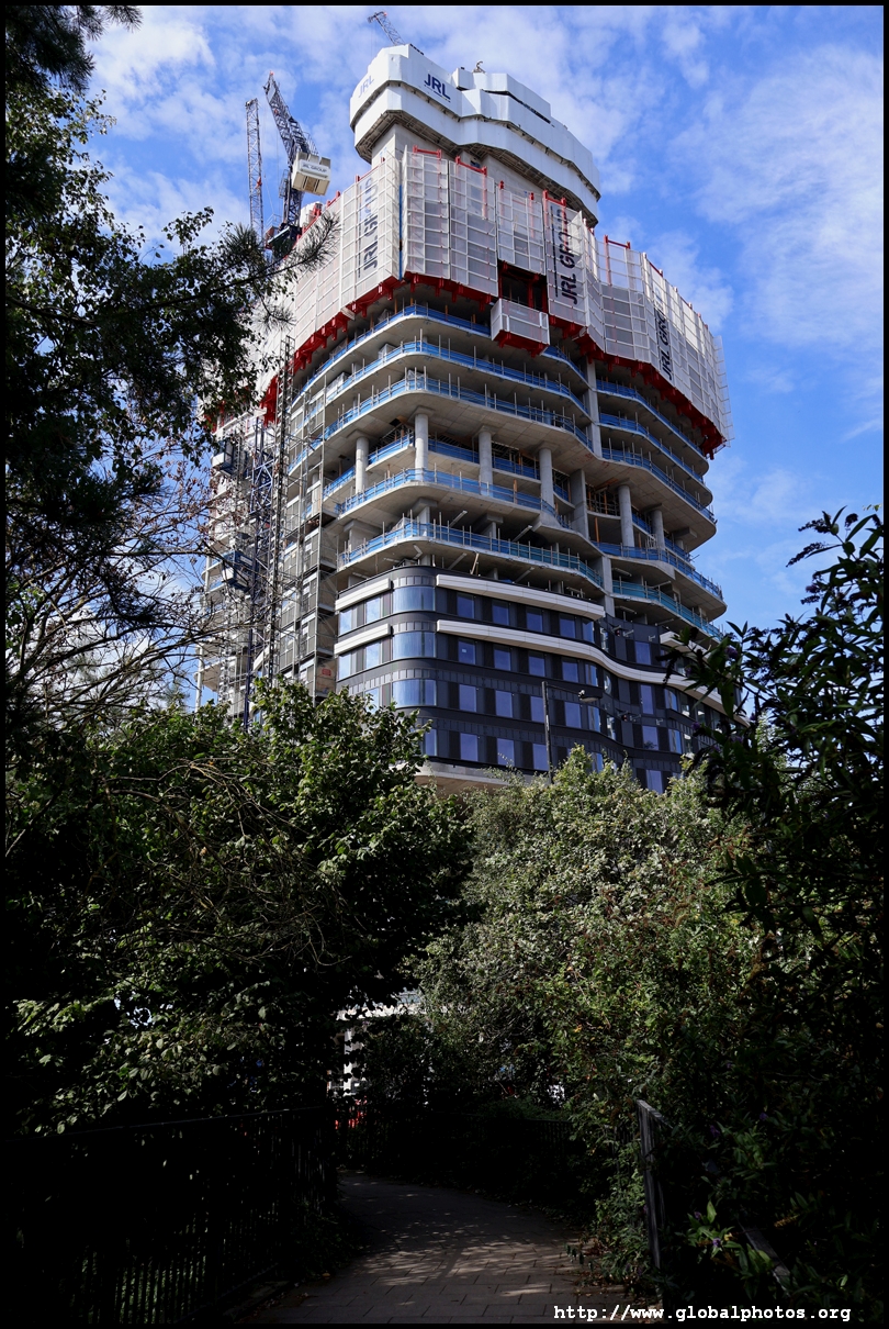 Within walking distance from Canary Wharf's residential and commercial towers, Poplar Dock was originally a reservoir used to manage the West India Docks' water levels. Coal was unloaded here from northeast England and onto other vehicles for distribution. Timber was also floated here to prevent them from drying up and cracking.In 1999, the dock was repurposed into a marina, and the surrounding areas have been regenerated into a quiet residential community. From Blackwall DLR station, cross the roundabout underground and you will arrive at a small park on Trafalgar Way. The rising towers are part of a student accommodation project at #2, which will consist of 3 towers rising 28, 36, and 46 floors offering about 1700 student units.