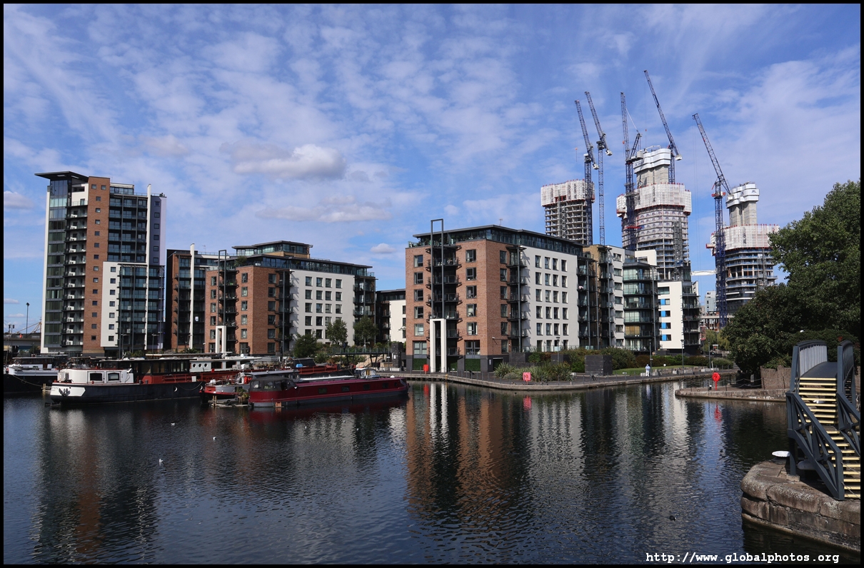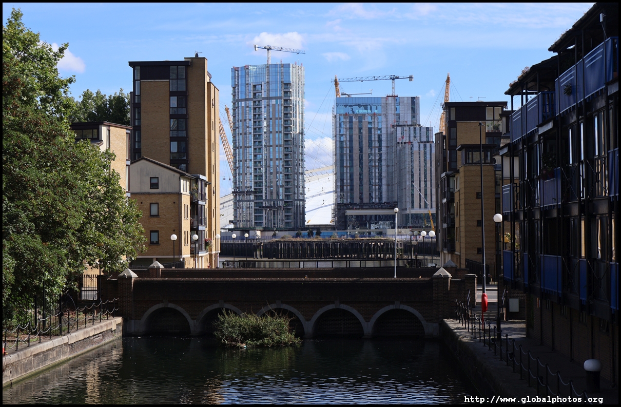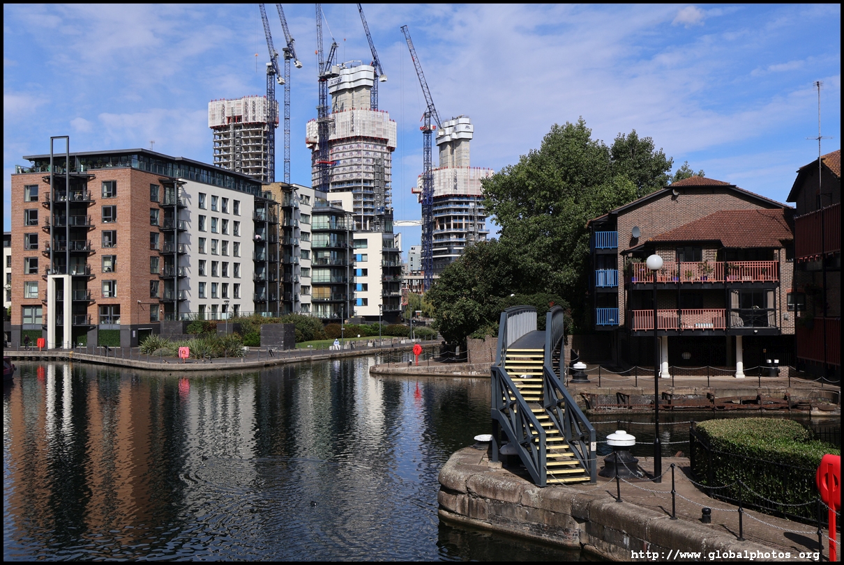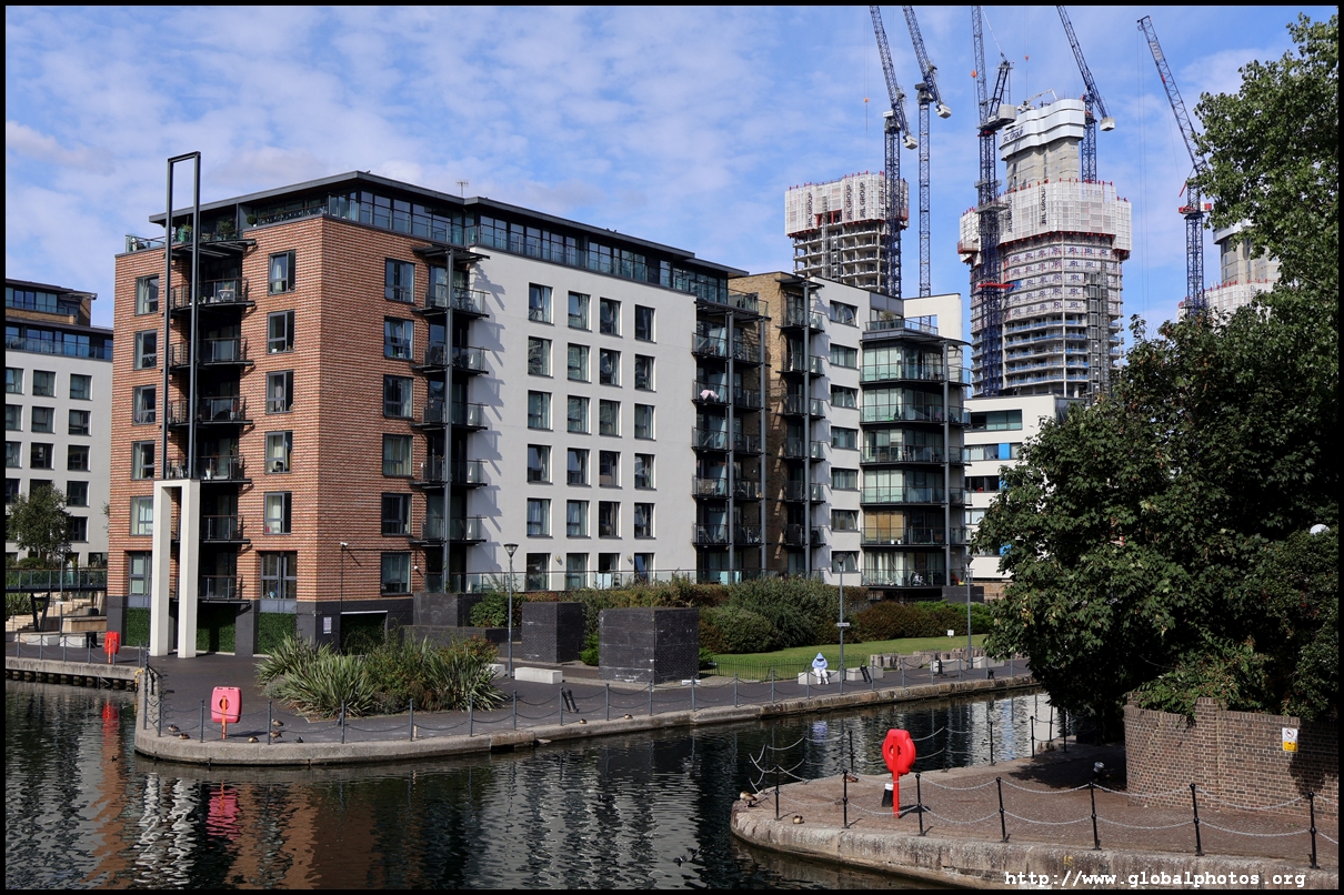 Across the street on the south side of the basin is Wood Wharf, another new residential community now under construction, albeit with much taller buildings.