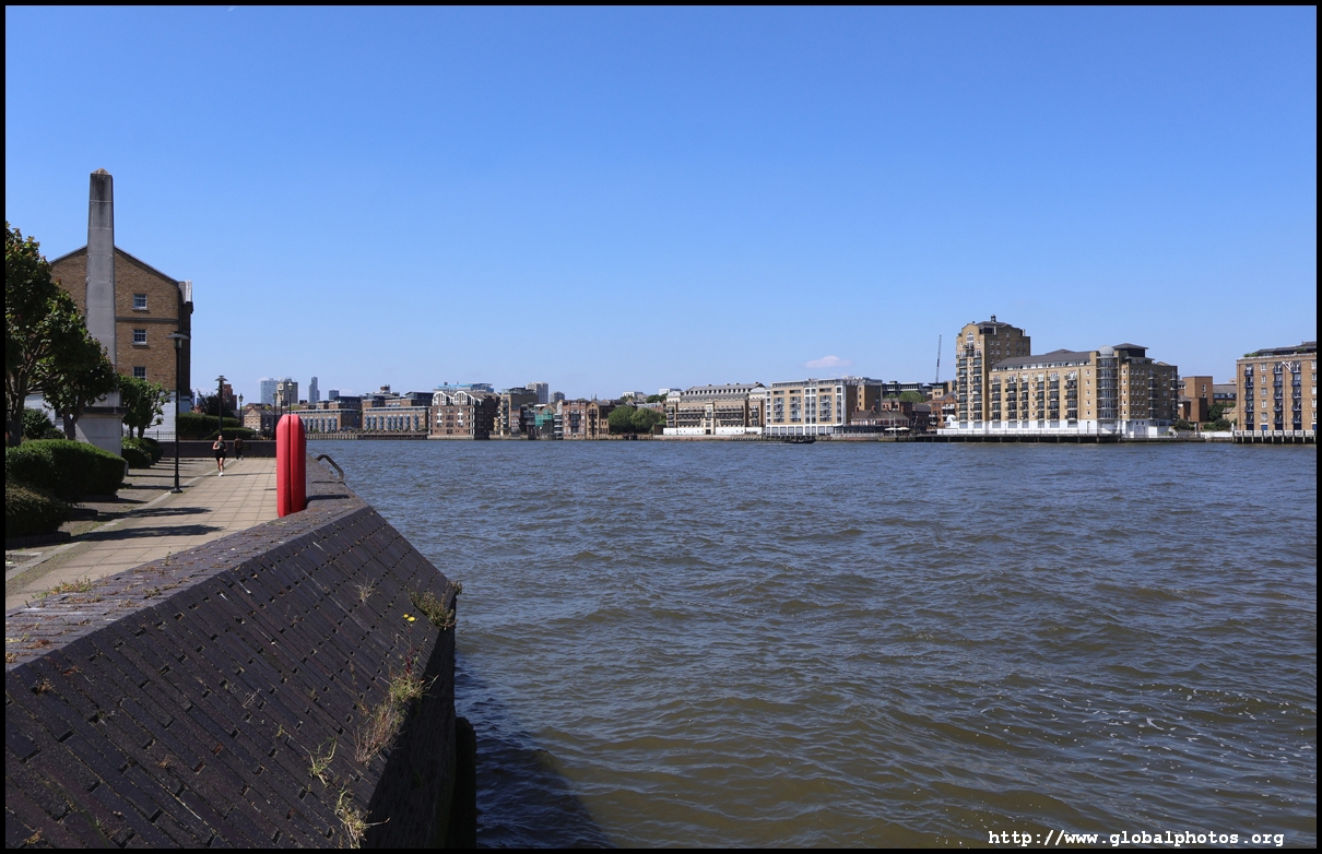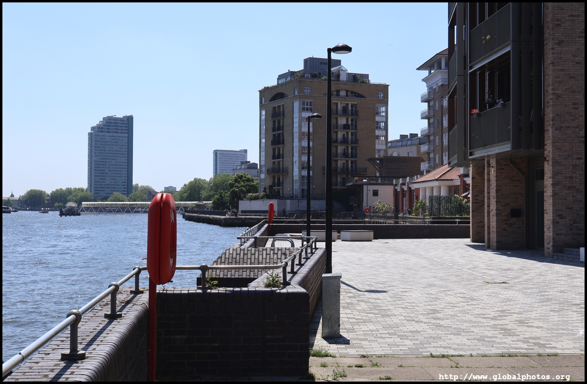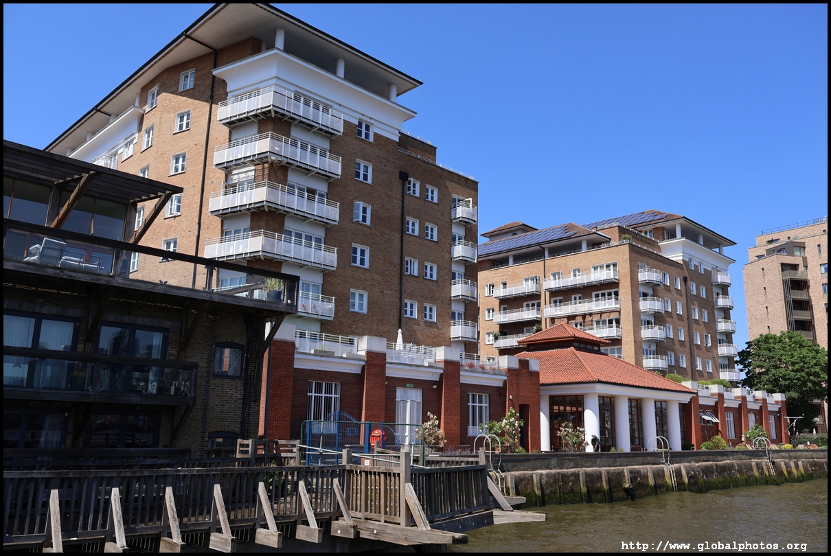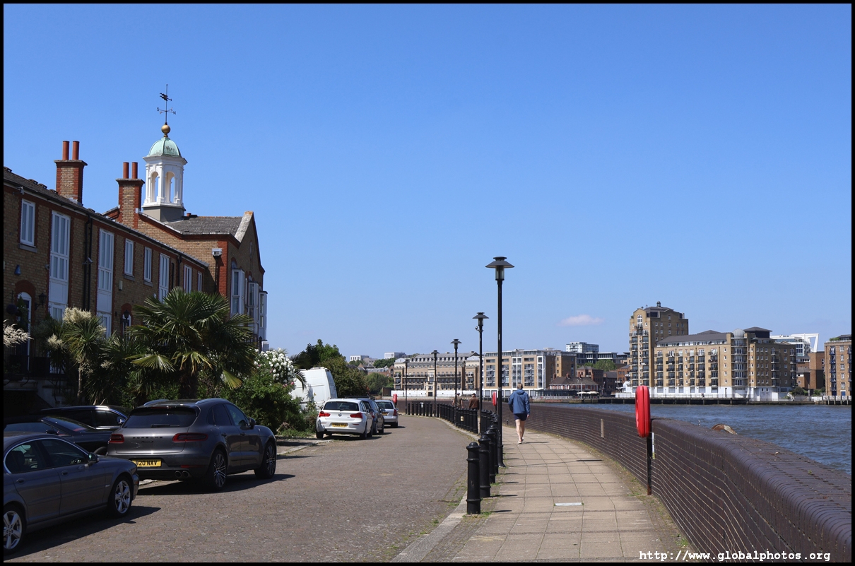Continuing north on Rotherhithe Street, I soon found another opening back to the Thames Path and riverfront in between newer residential buildings.