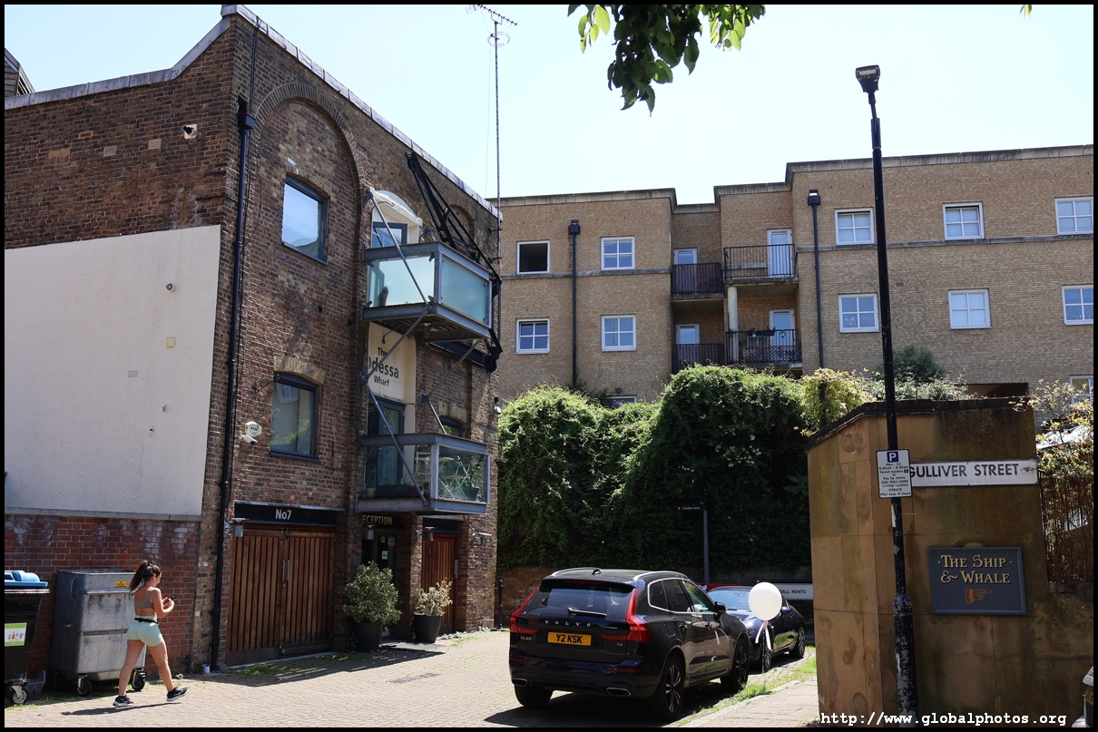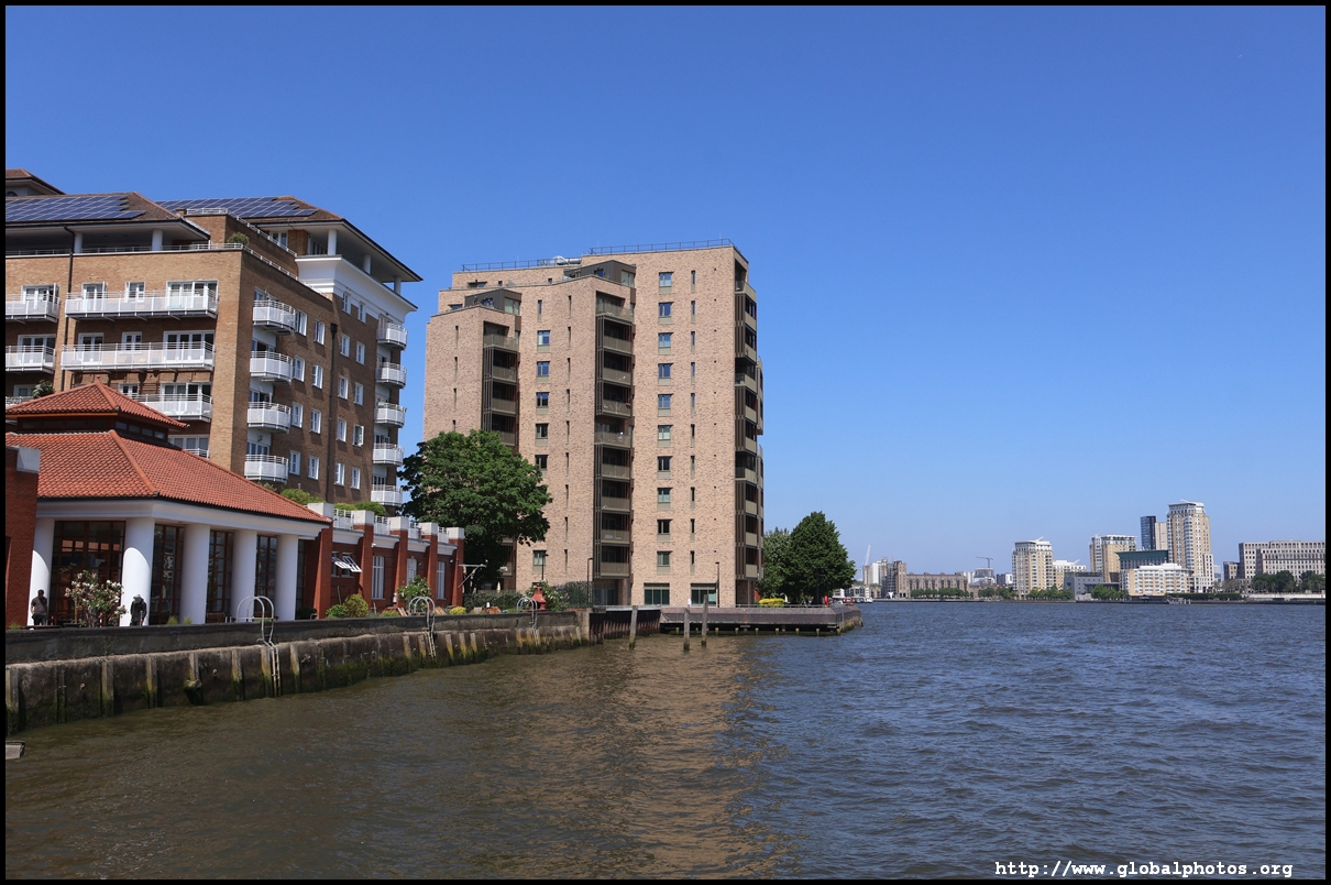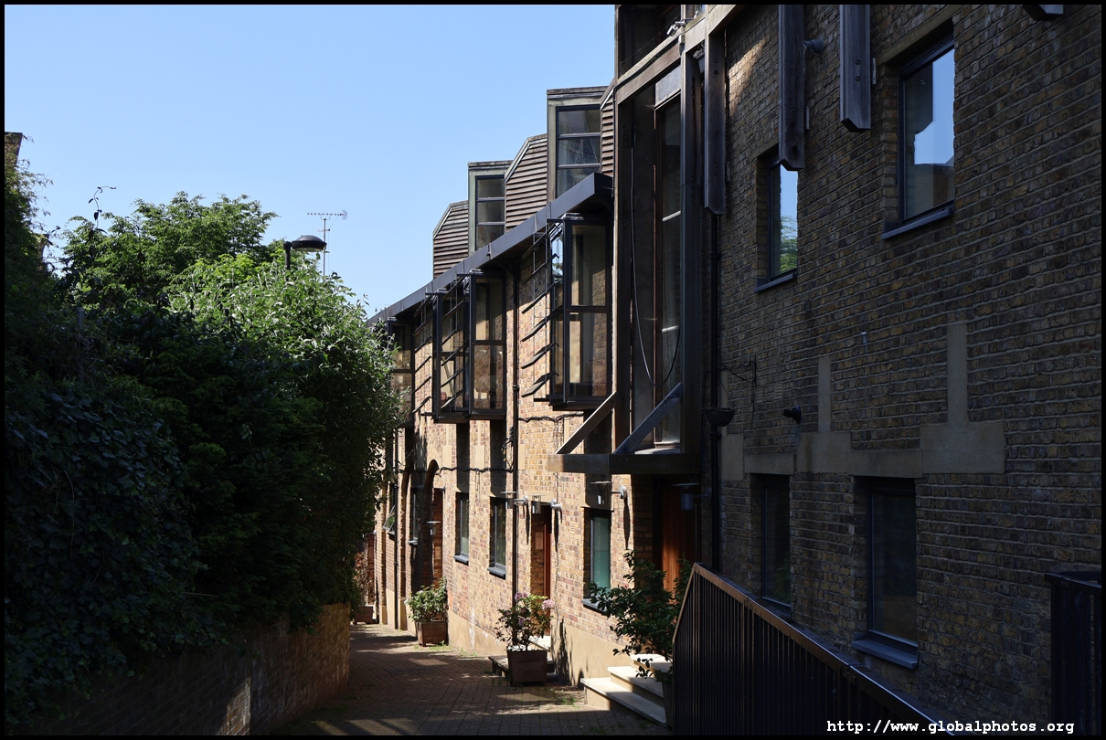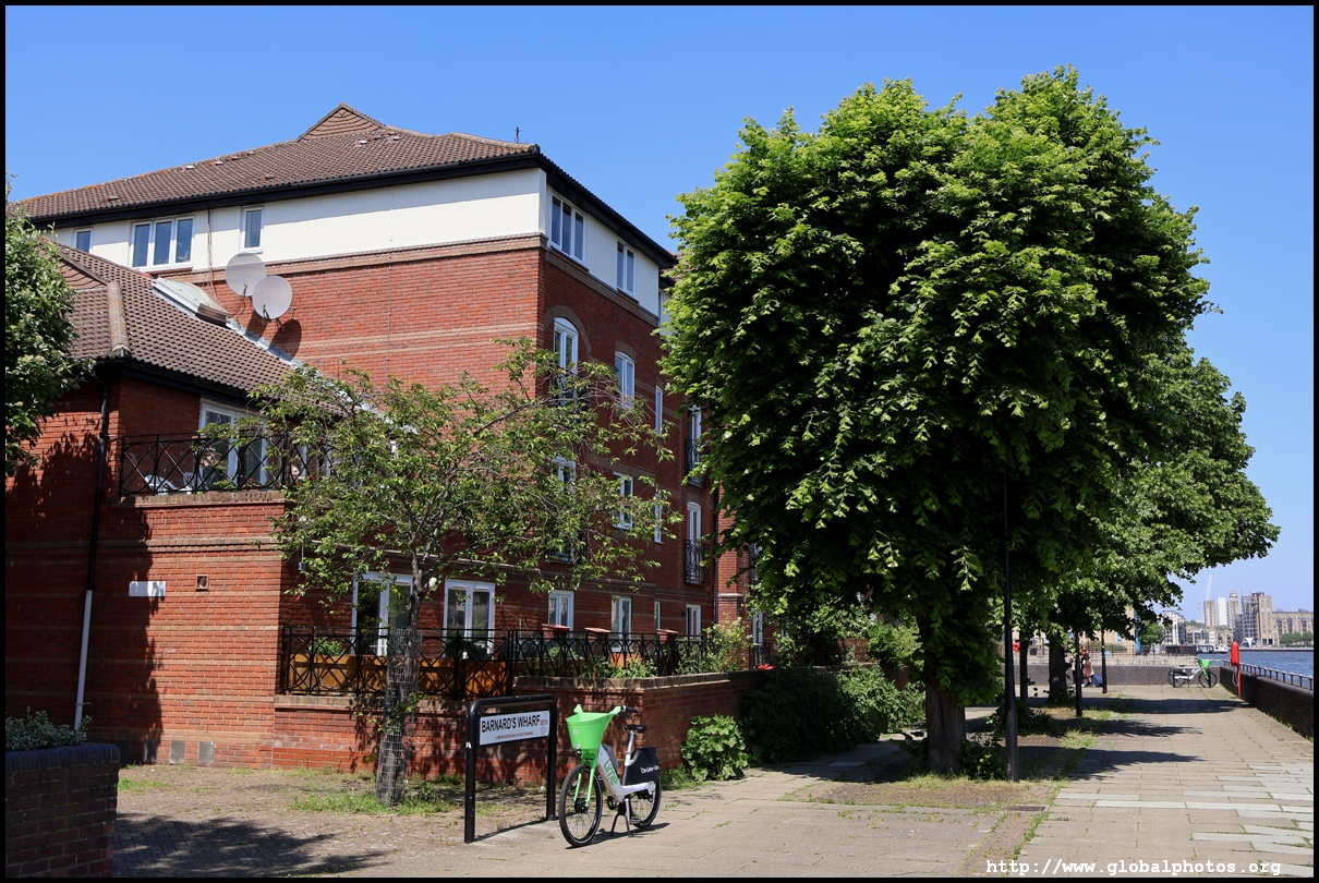 Continuing north on Rotherhithe Street, I soon found another opening back to the Thames Path and riverfront in between newer residential buildings.