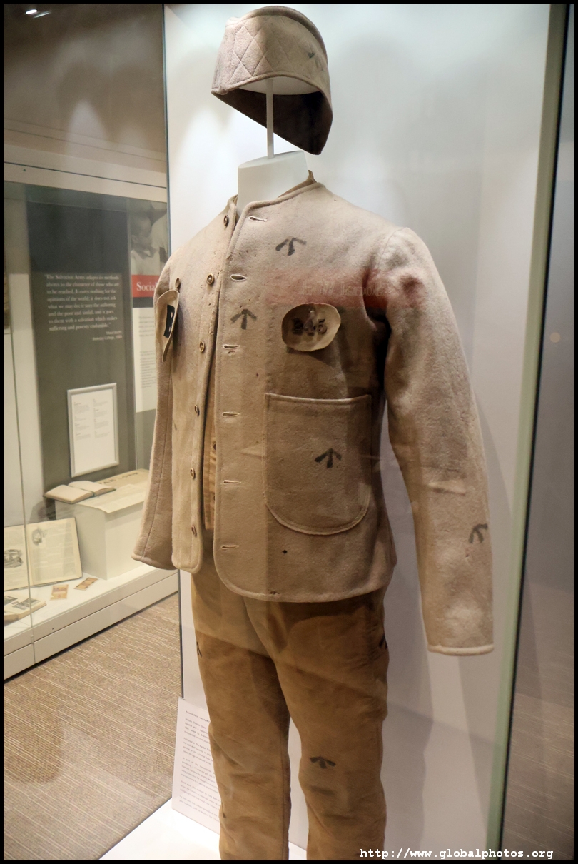 This prison uniform was worn by a supporter who was a newspaper editor and jailed during his investigation on juvenile prostitution in 1885.