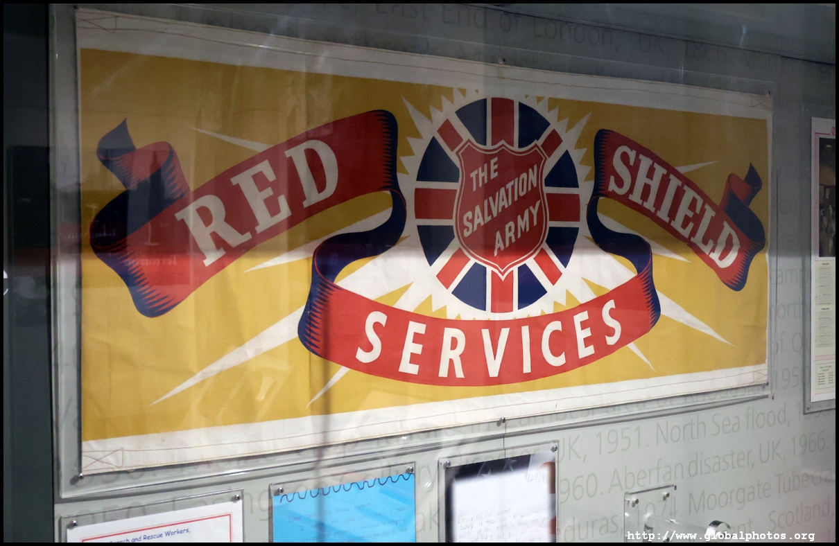 During World War II, the Red Shield offered hostel, canteen, and club services for the army, as well as first aid support and a cup of tea for Londoners sheltering underground.