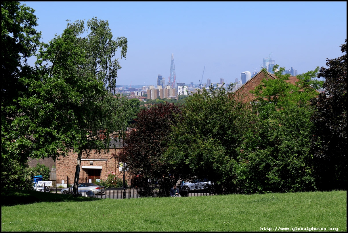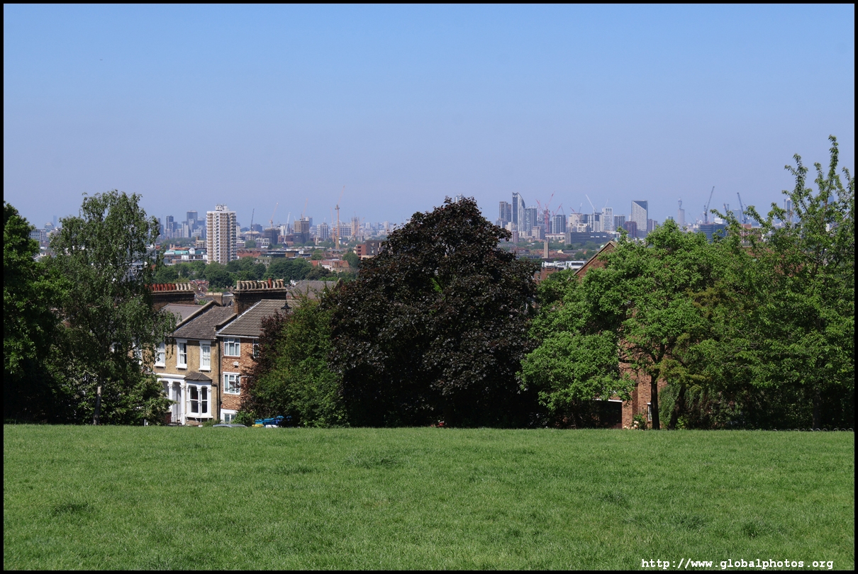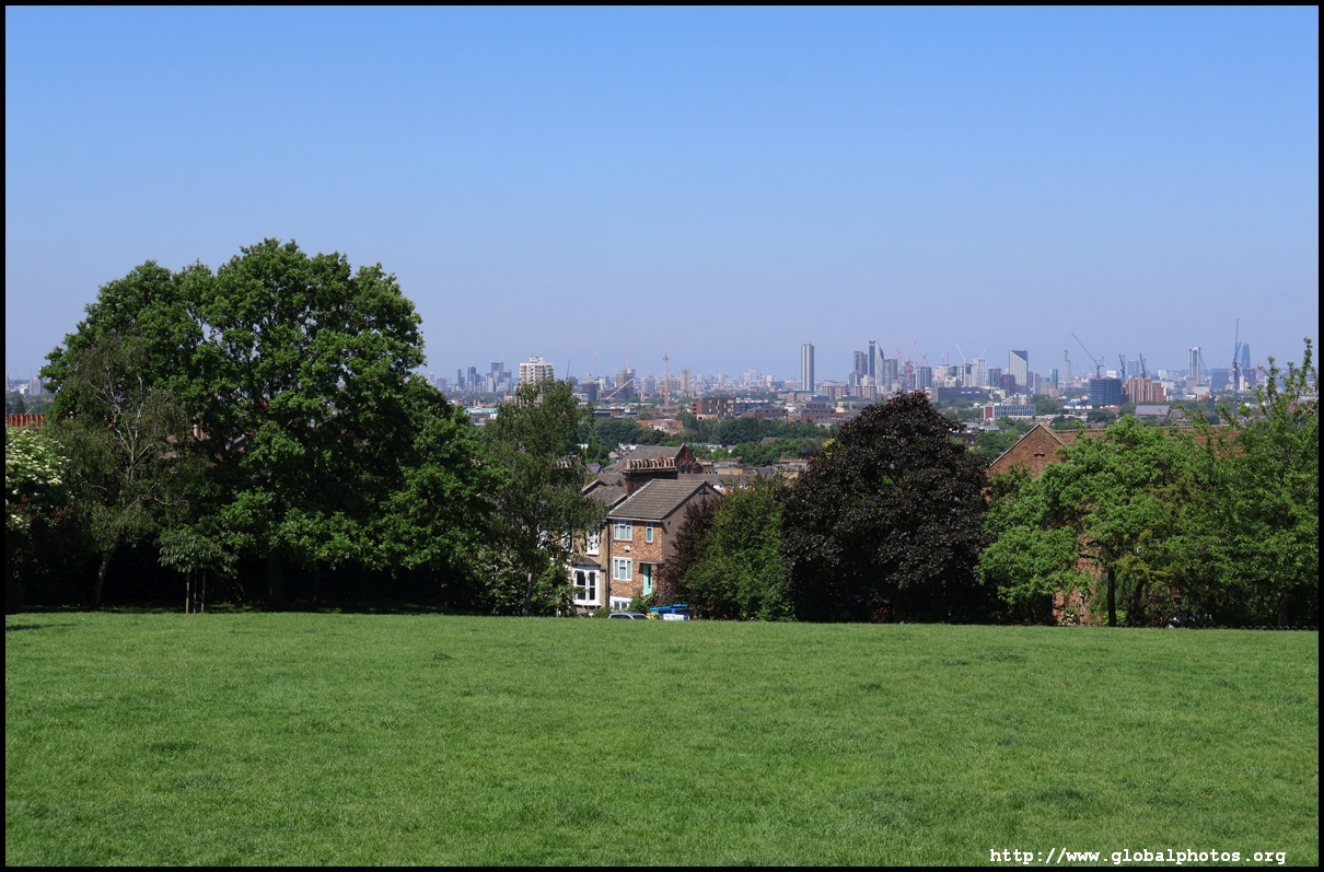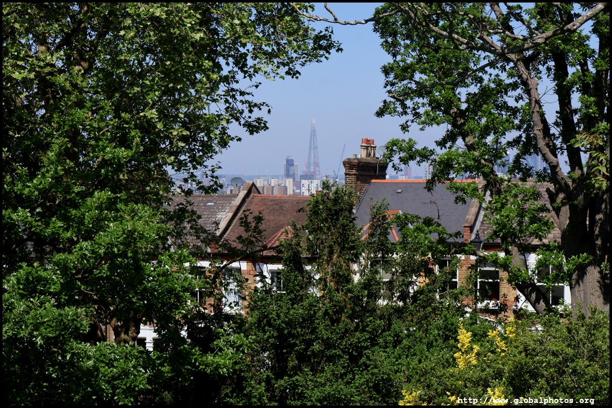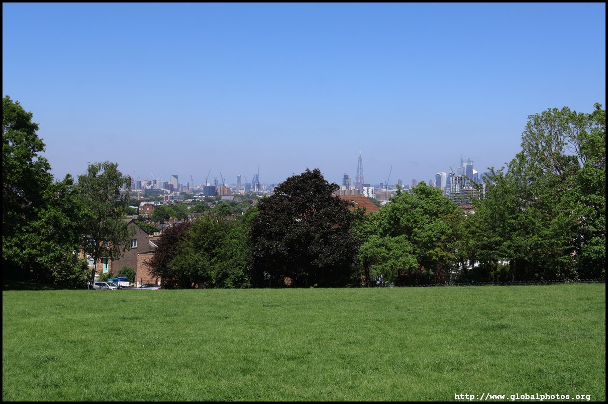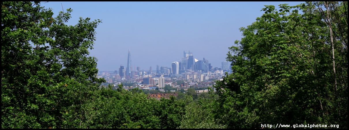 London's southeastern districts do not typically feature high on the tourist's radar. However, there are 2 parks which are slightly higher above street level which command a view of the skyline in the far distance. London is a fairly flat place, so it doesn't take a big hill to create a panoramic spot.One Tree Hill is just a short walk from Honor Oak Park Overground station. It was once a hill with a single tree where Queen Elizabeth was thought to have visited en route to Lewisham in 1602. Although the park is famous for its oak tree, the third planted here, I came for the view, which is next to a former military gun where the City's skyline emerges between the trees.