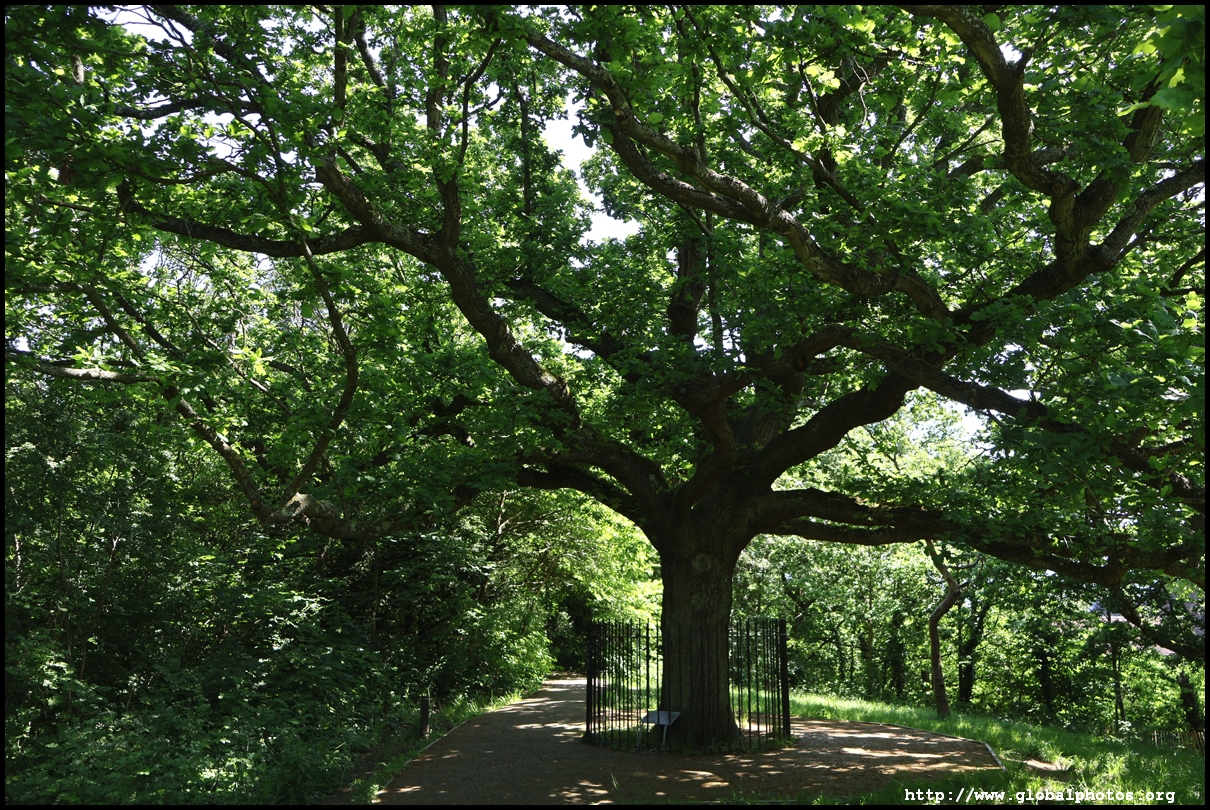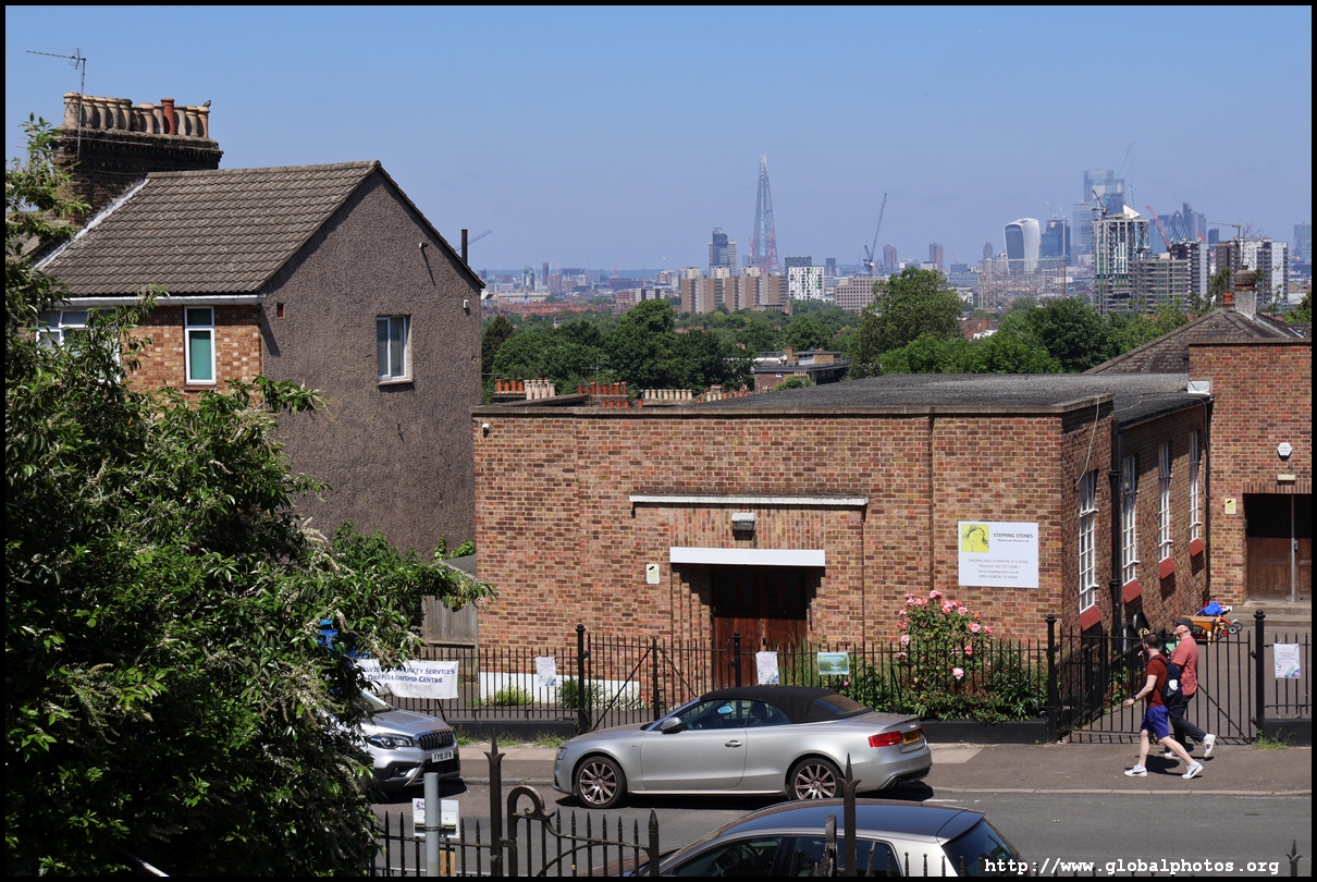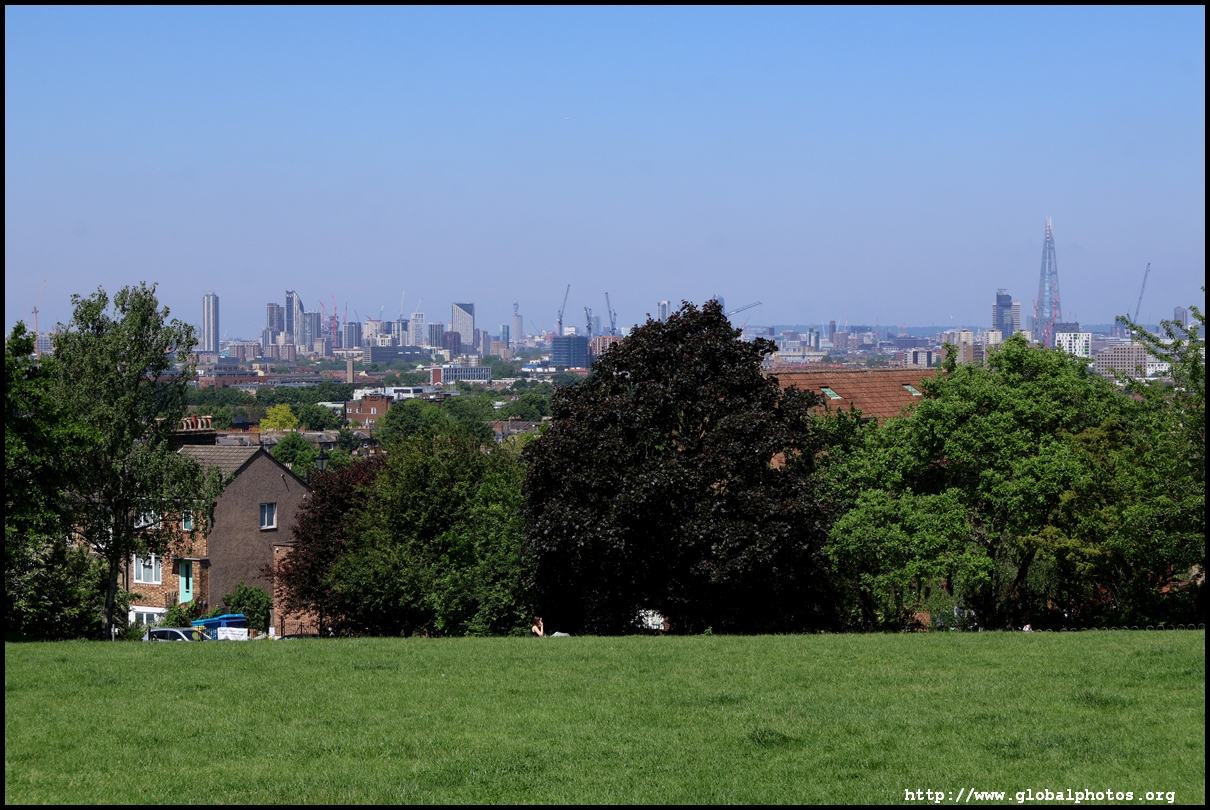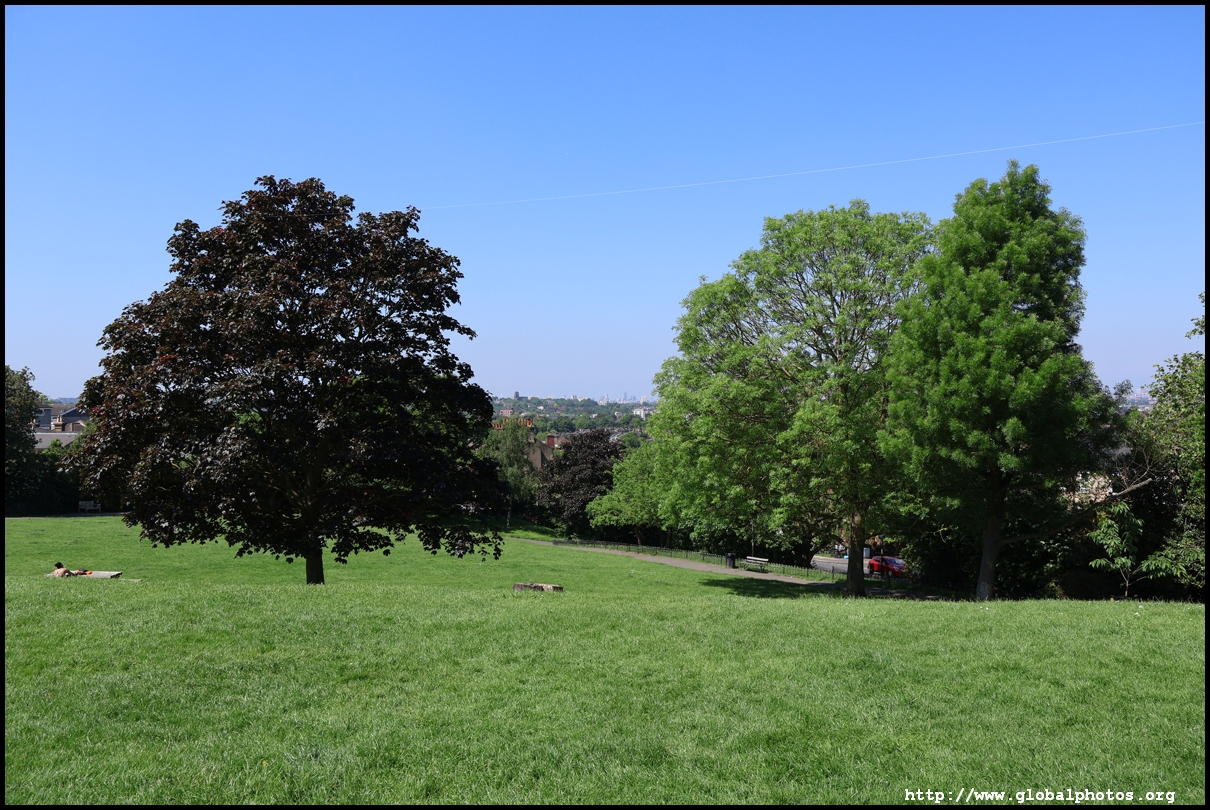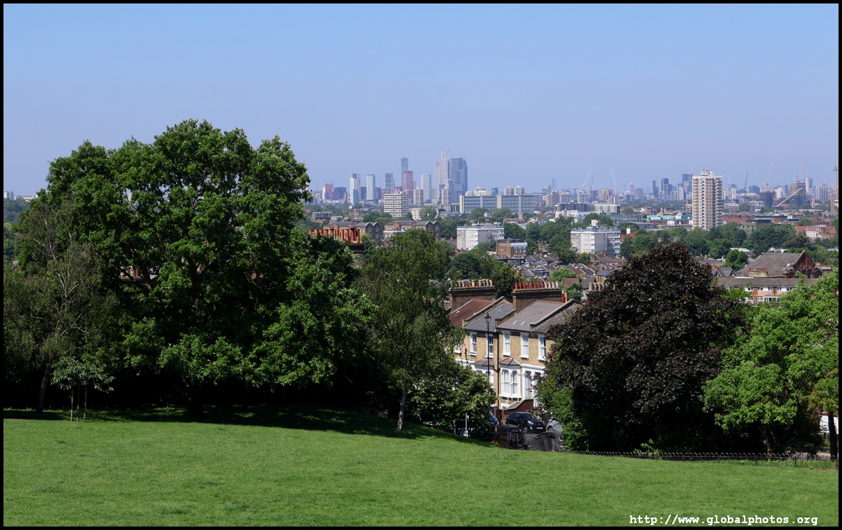 London's southeastern districts do not typically feature high on the tourist's radar. However, there are 2 parks which are slightly higher above street level which command a view of the skyline in the far distance. London is a fairly flat place, so it doesn't take a big hill to create a panoramic spot.One Tree Hill is just a short walk from Honor Oak Park Overground station. It was once a hill with a single tree where Queen Elizabeth was thought to have visited en route to Lewisham in 1602. Although the park is famous for its oak tree, the third planted here, I came for the view, which is next to a former military gun where the City's skyline emerges between the trees.