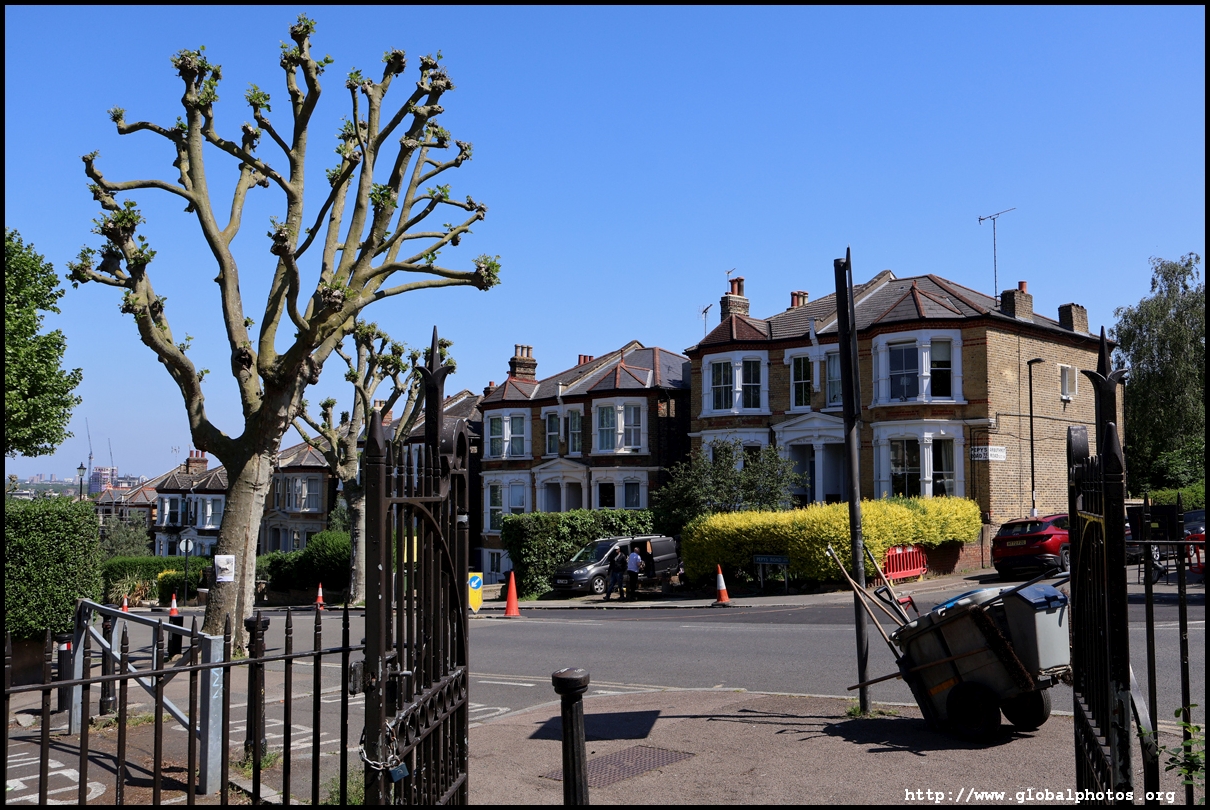 Not too impressed the hill only had a small spot to peer through, I headed back onto the Overground to New Cross Gate, 2 stops away, to find another viewpoint up a hill. This is a residential area with a grid pattern of streets and terrace homes leading up to Telegraph Hill.
